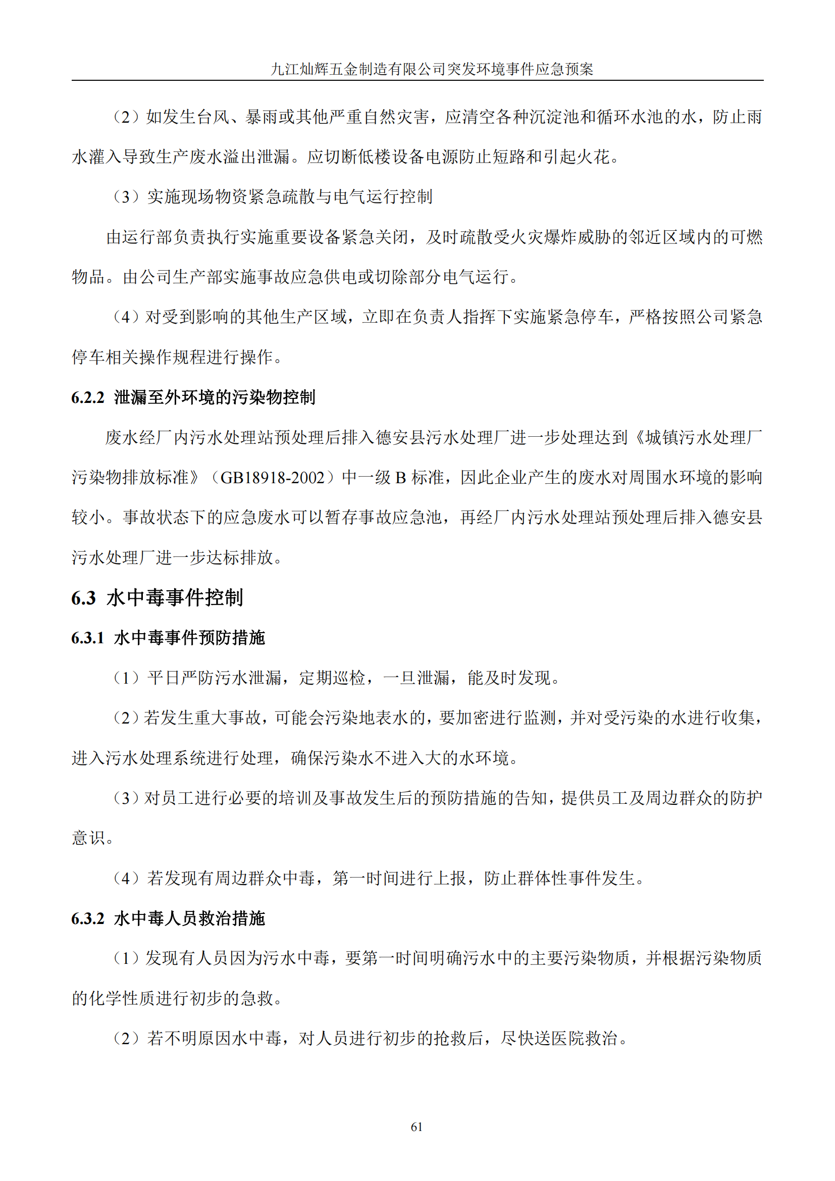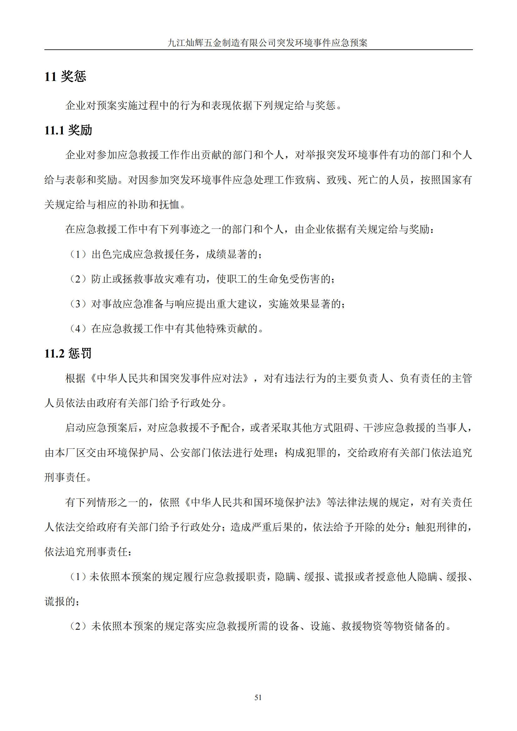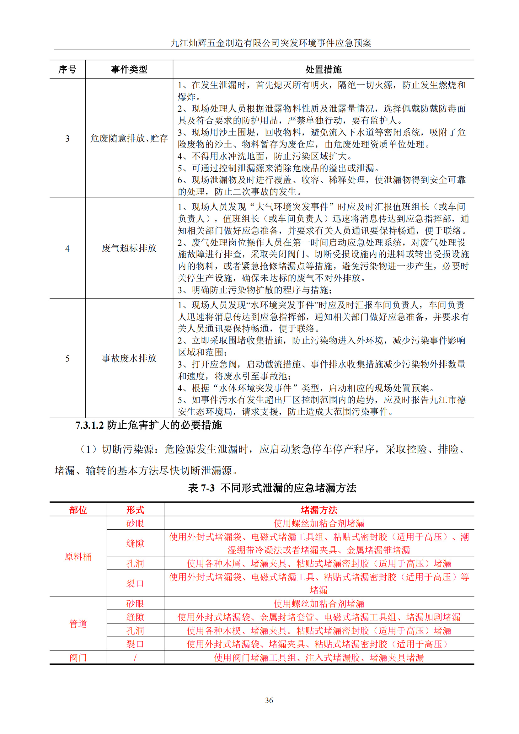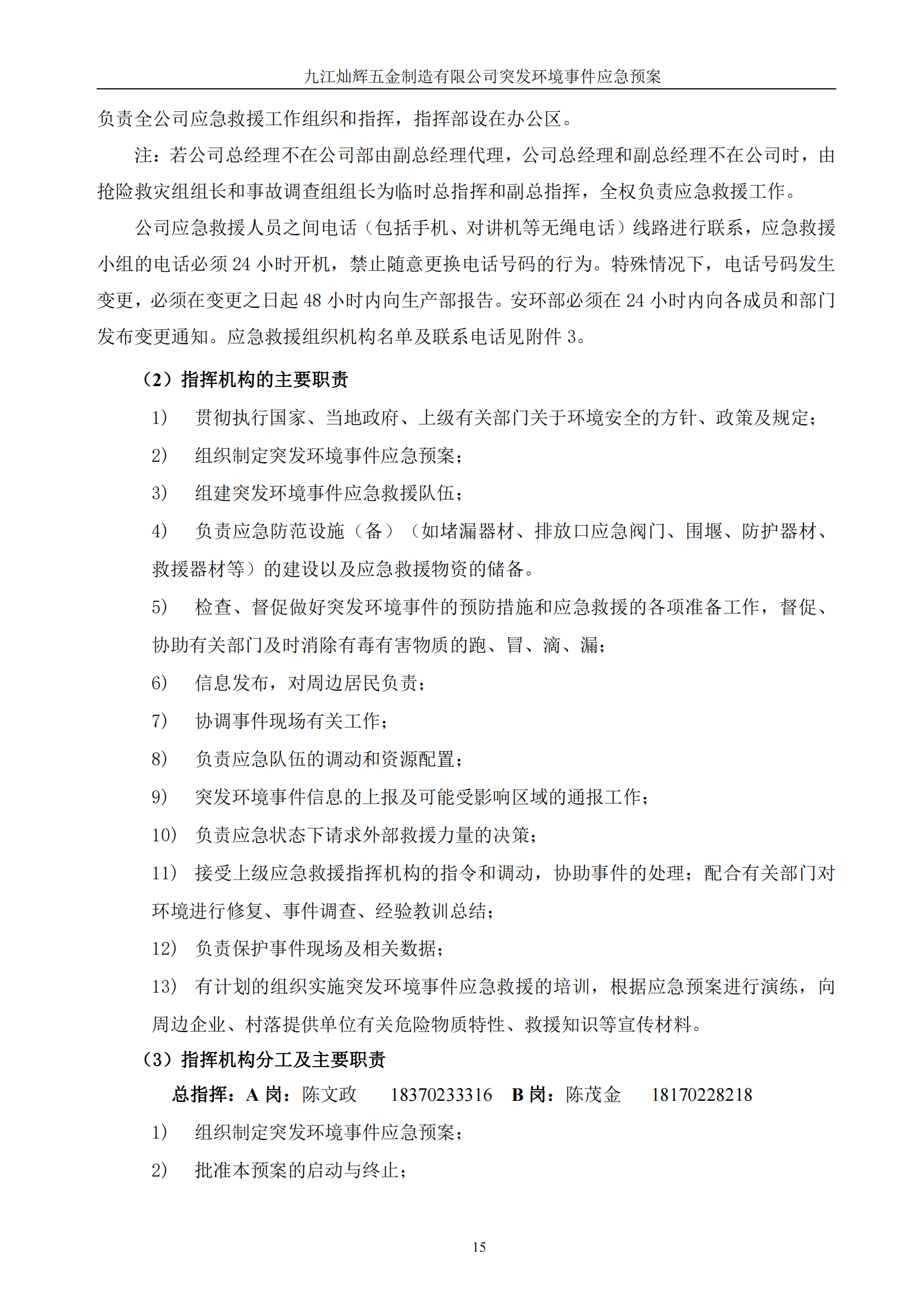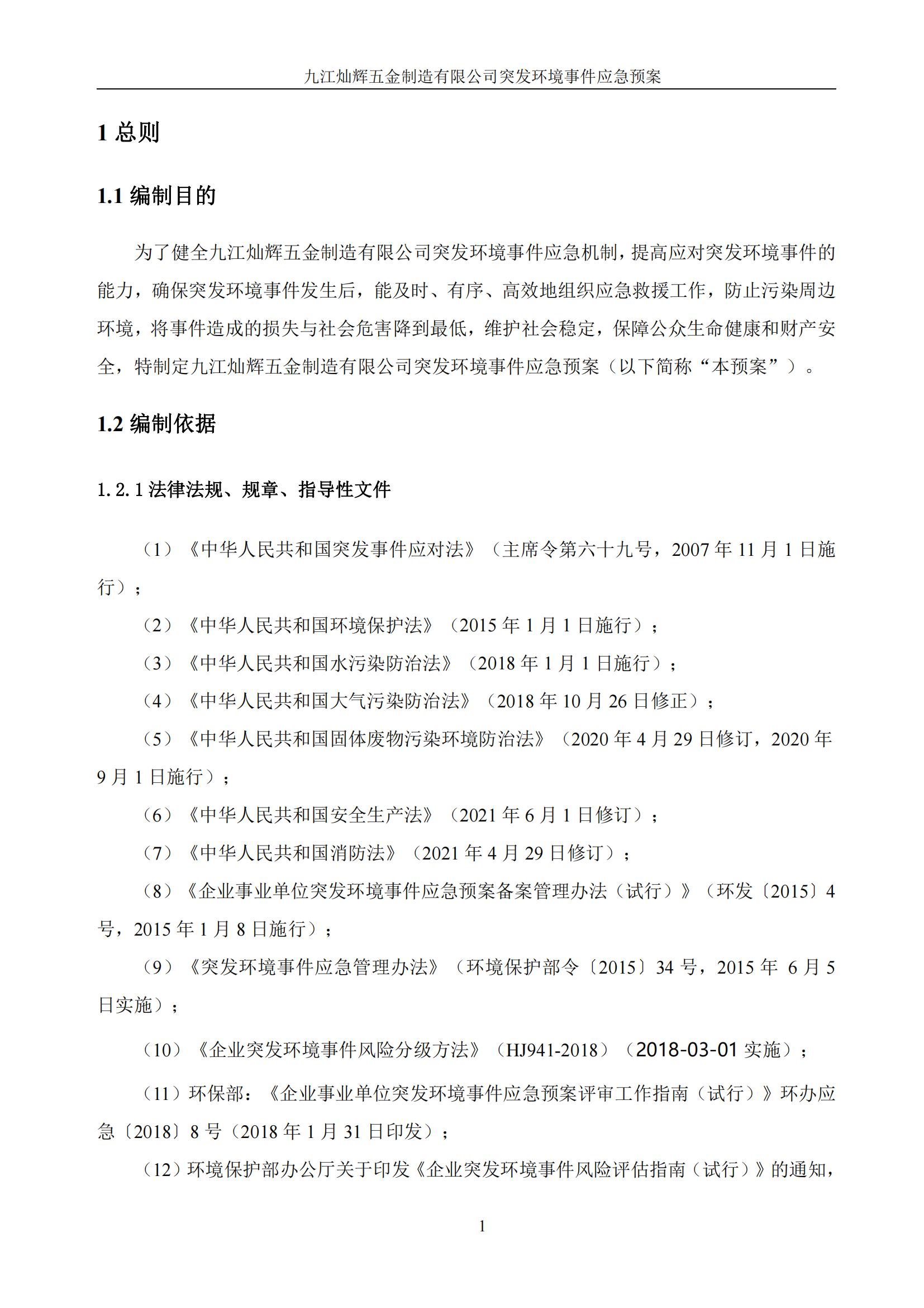 九江灿辉五金制造有限公司应急预案