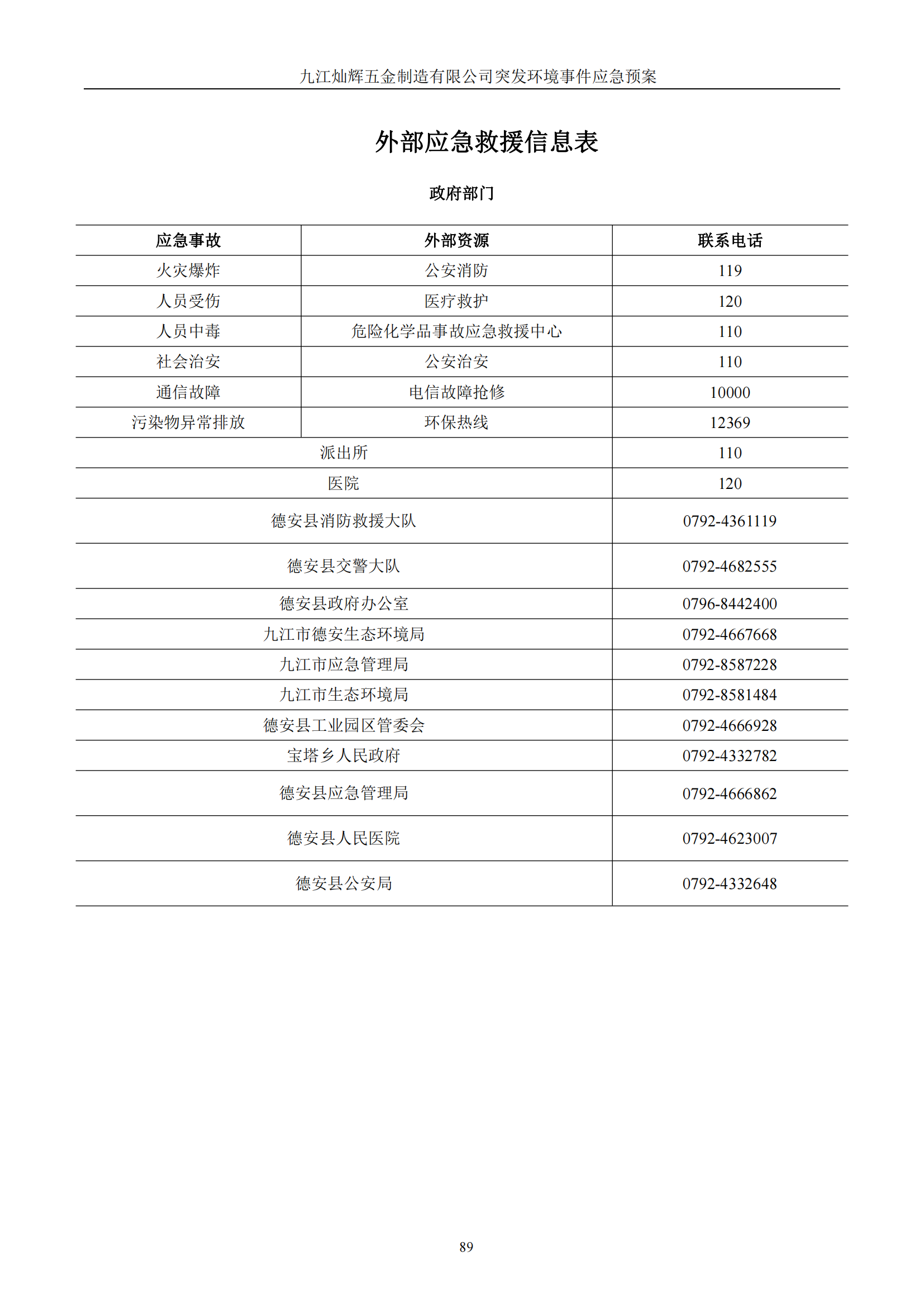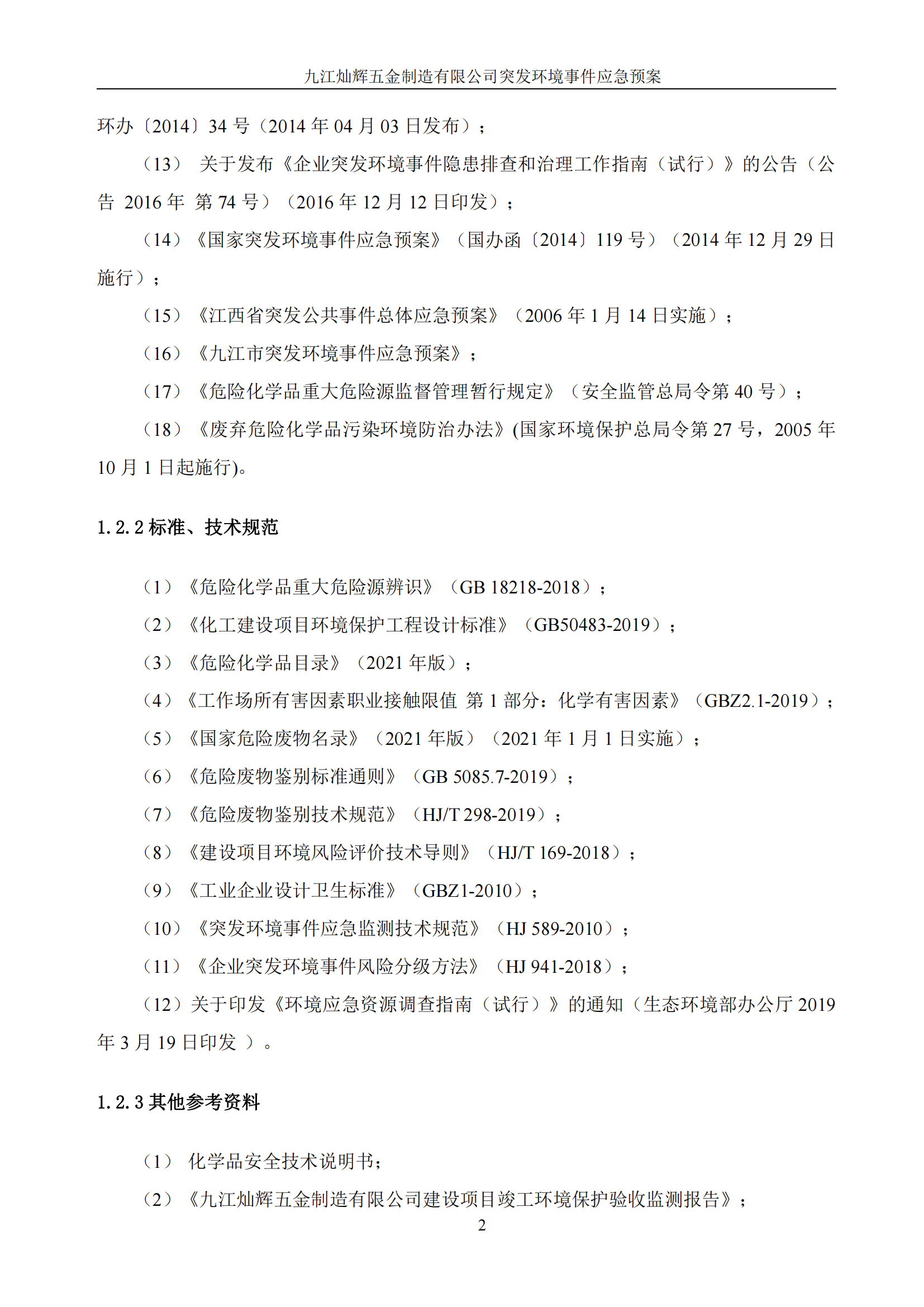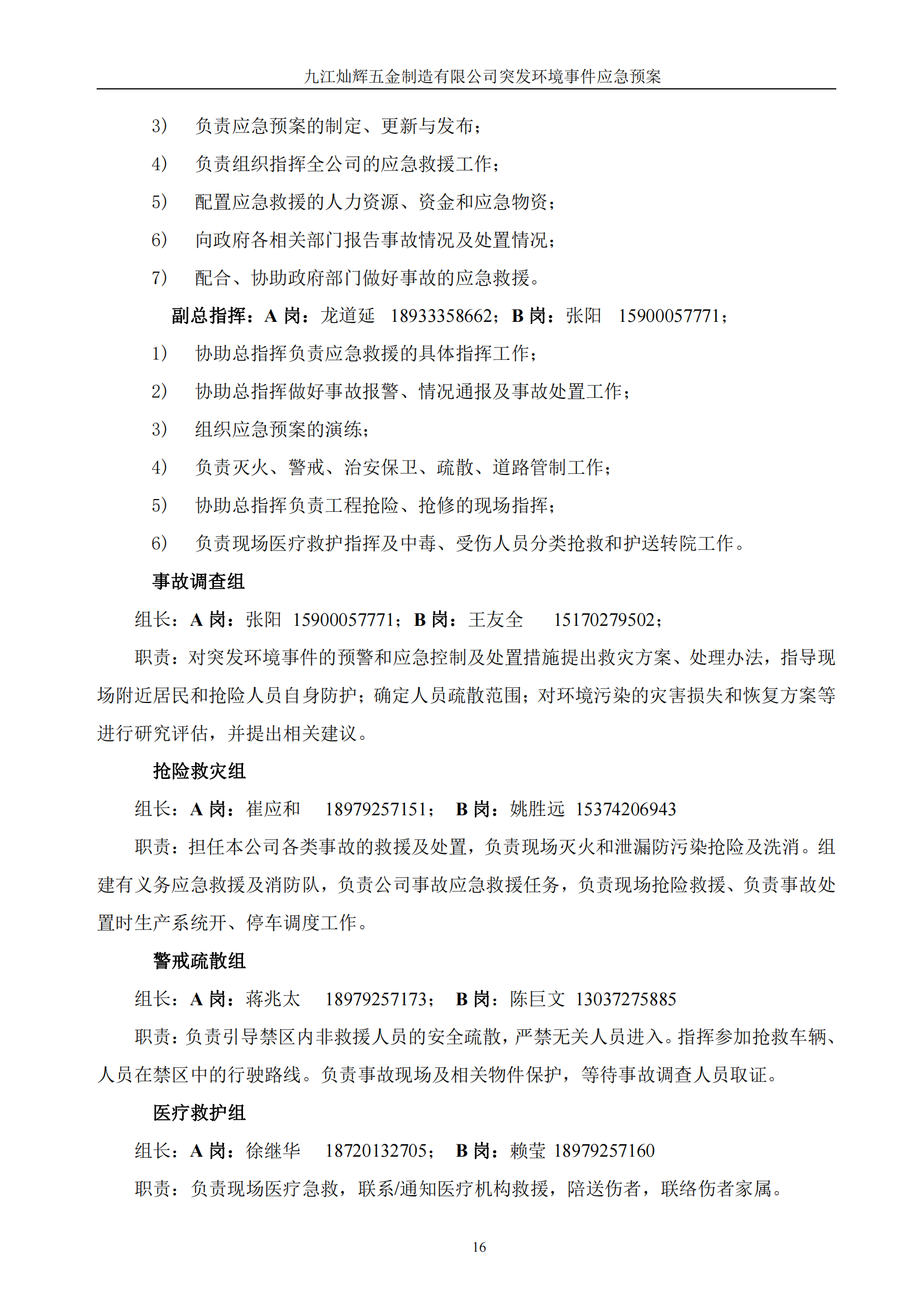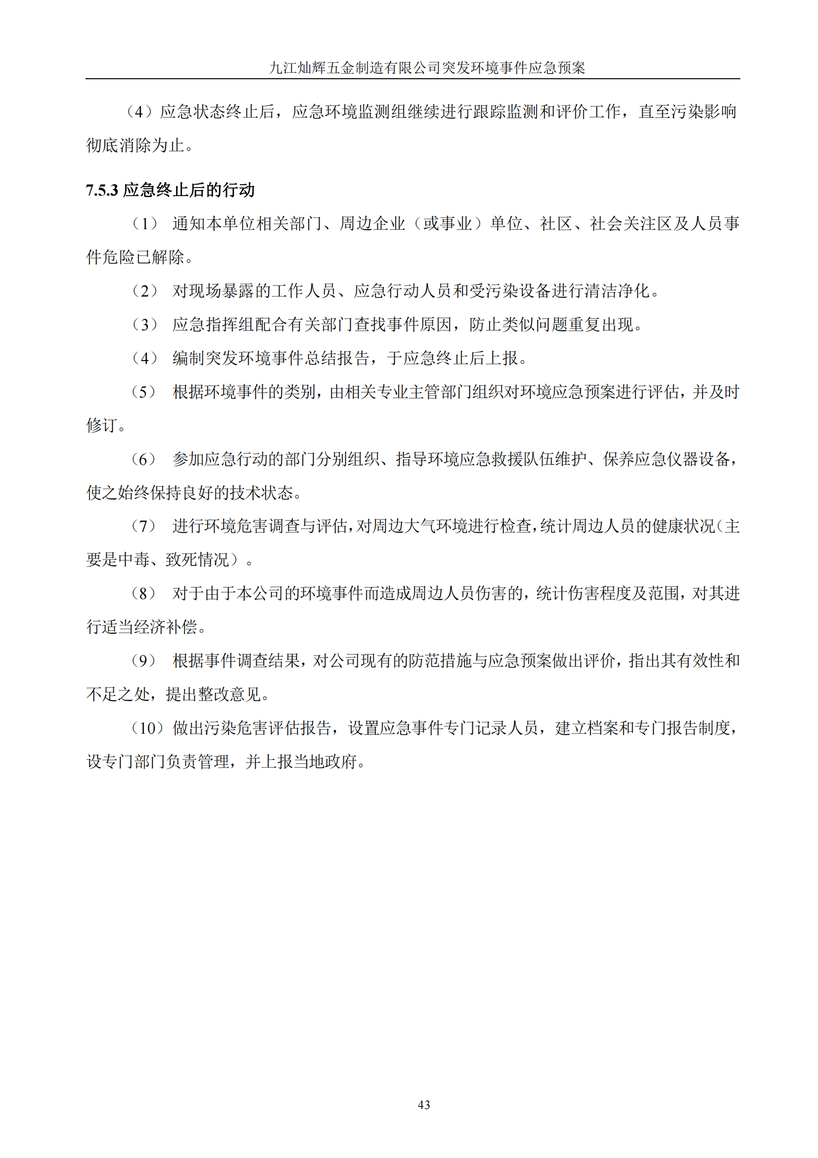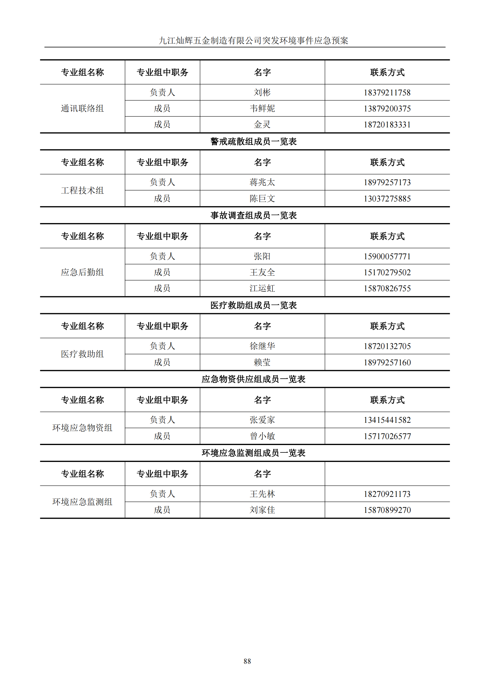 九江灿辉五金制造有限公司应急预案