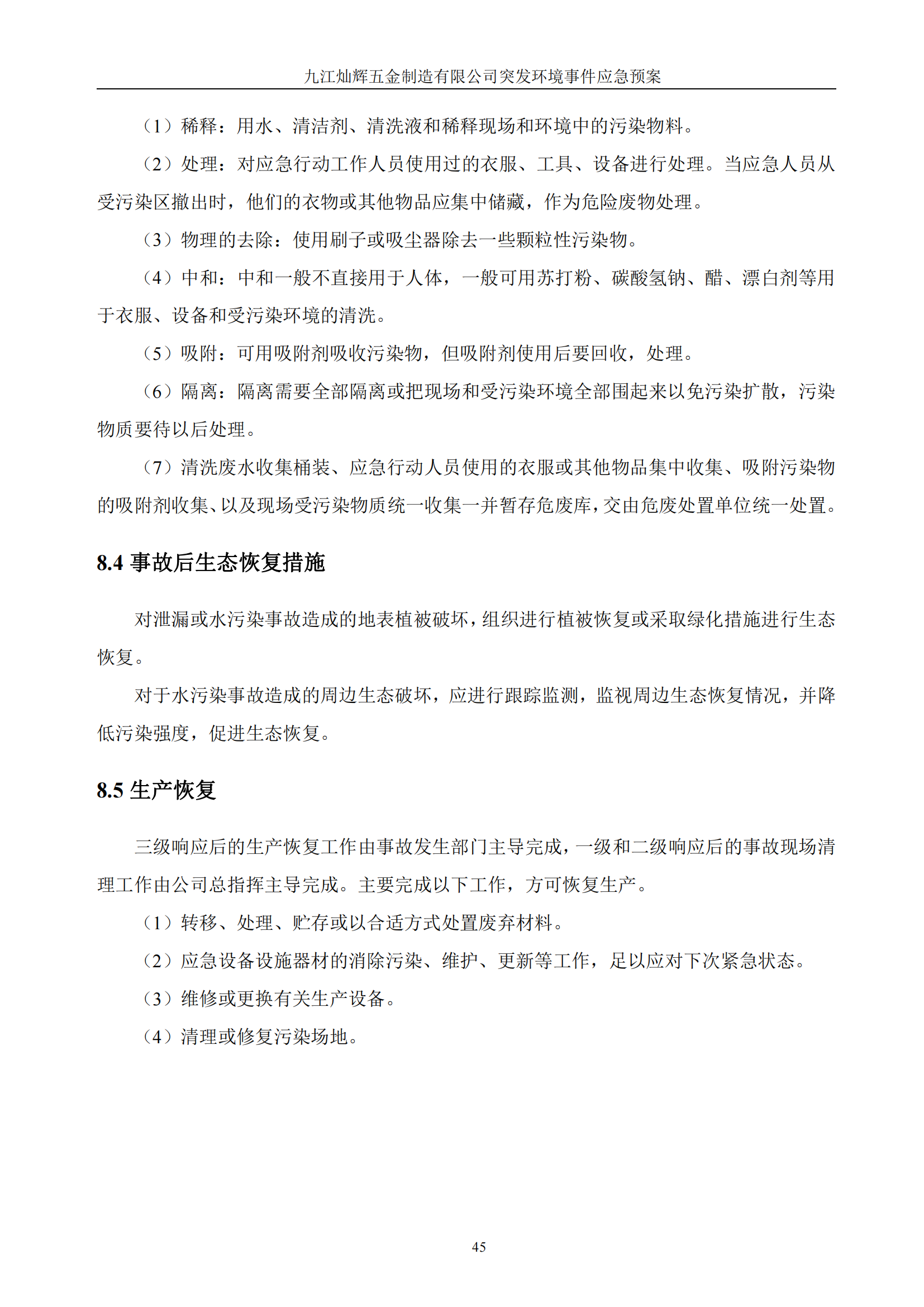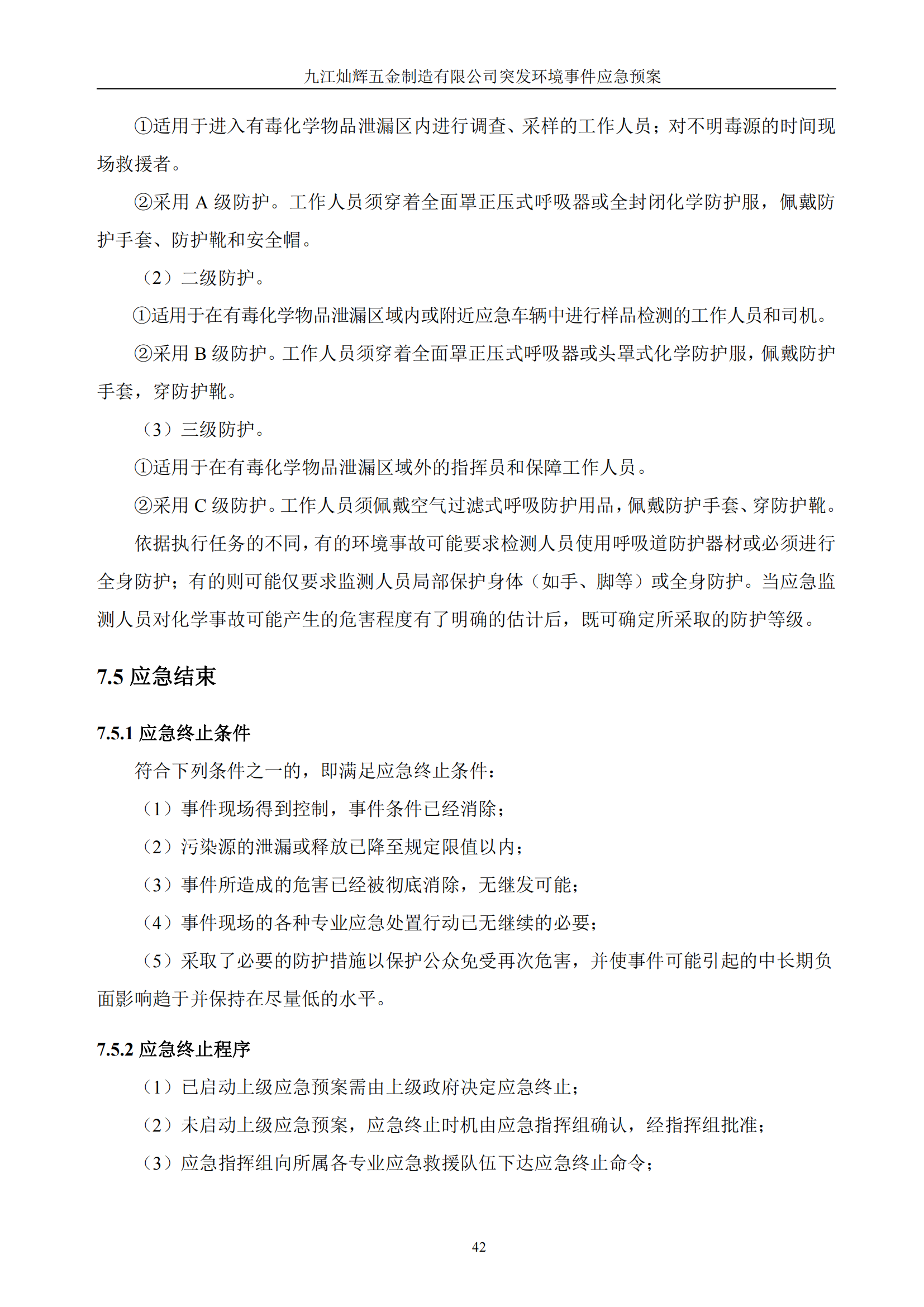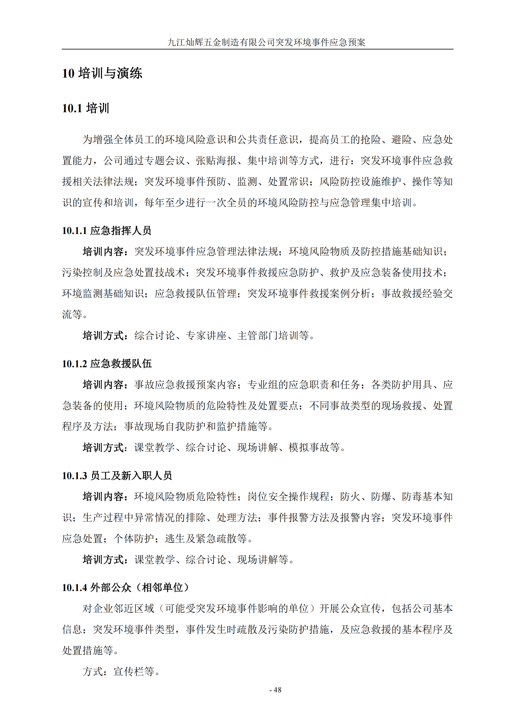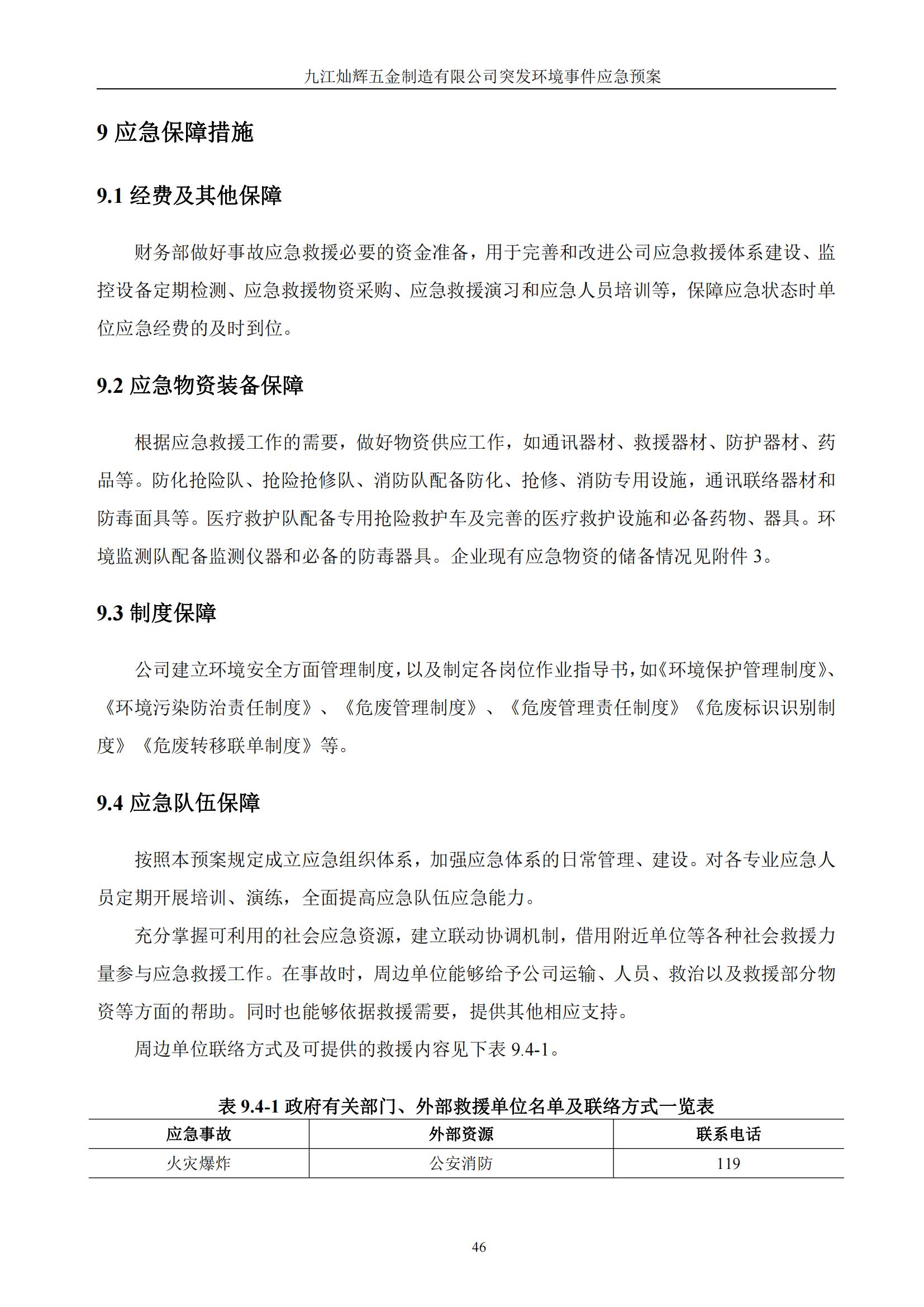 九江灿辉五金制造有限公司应急预案