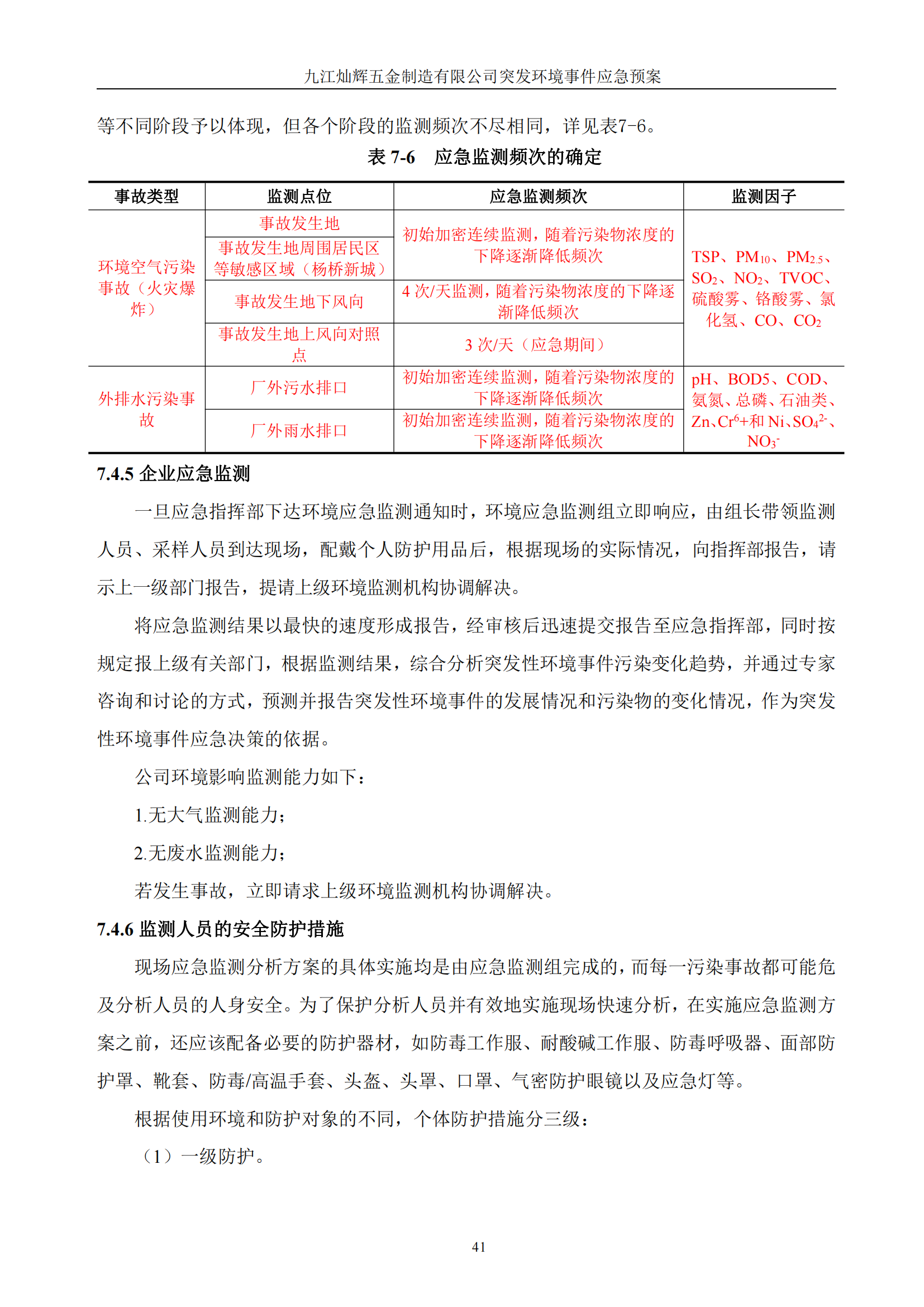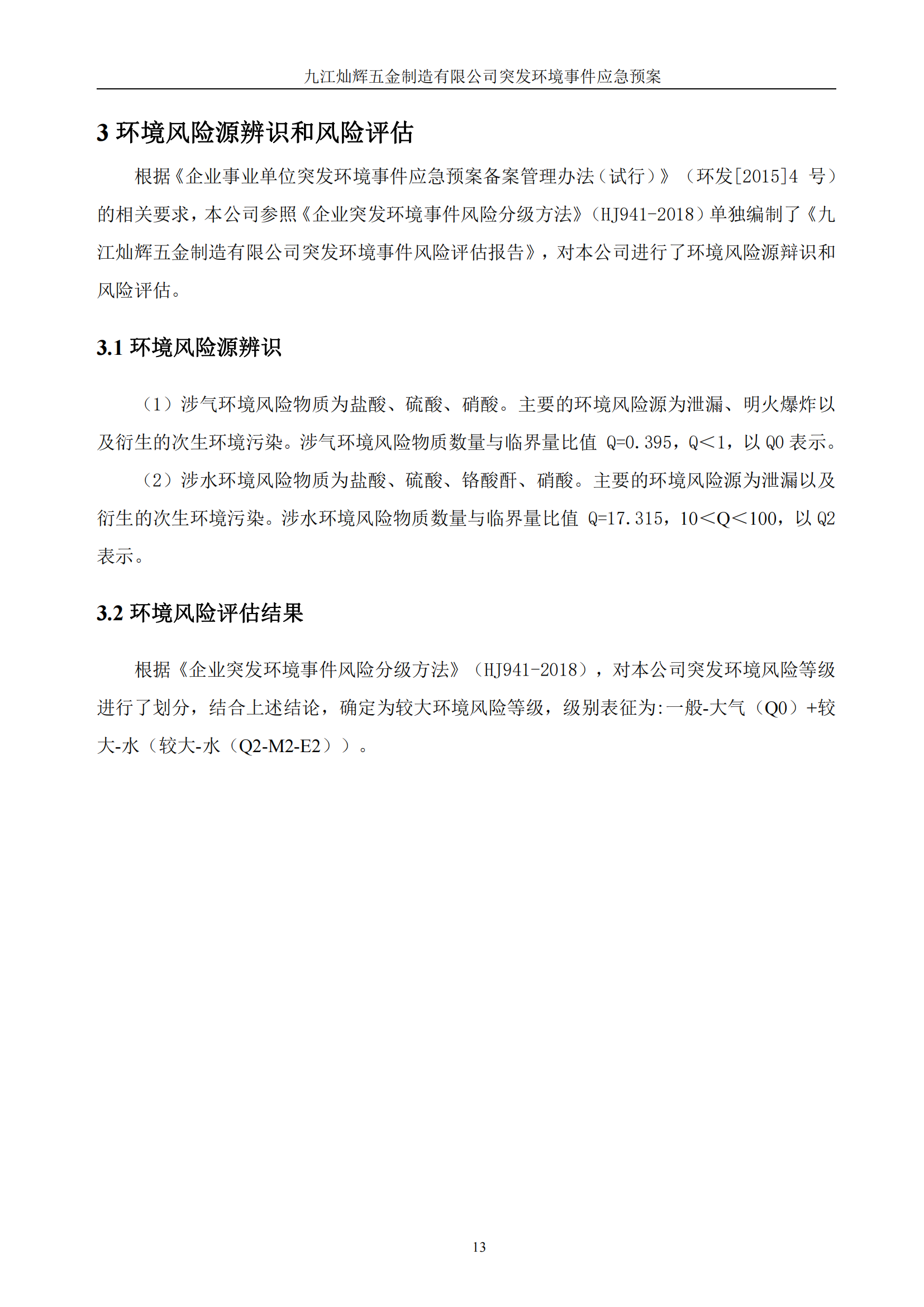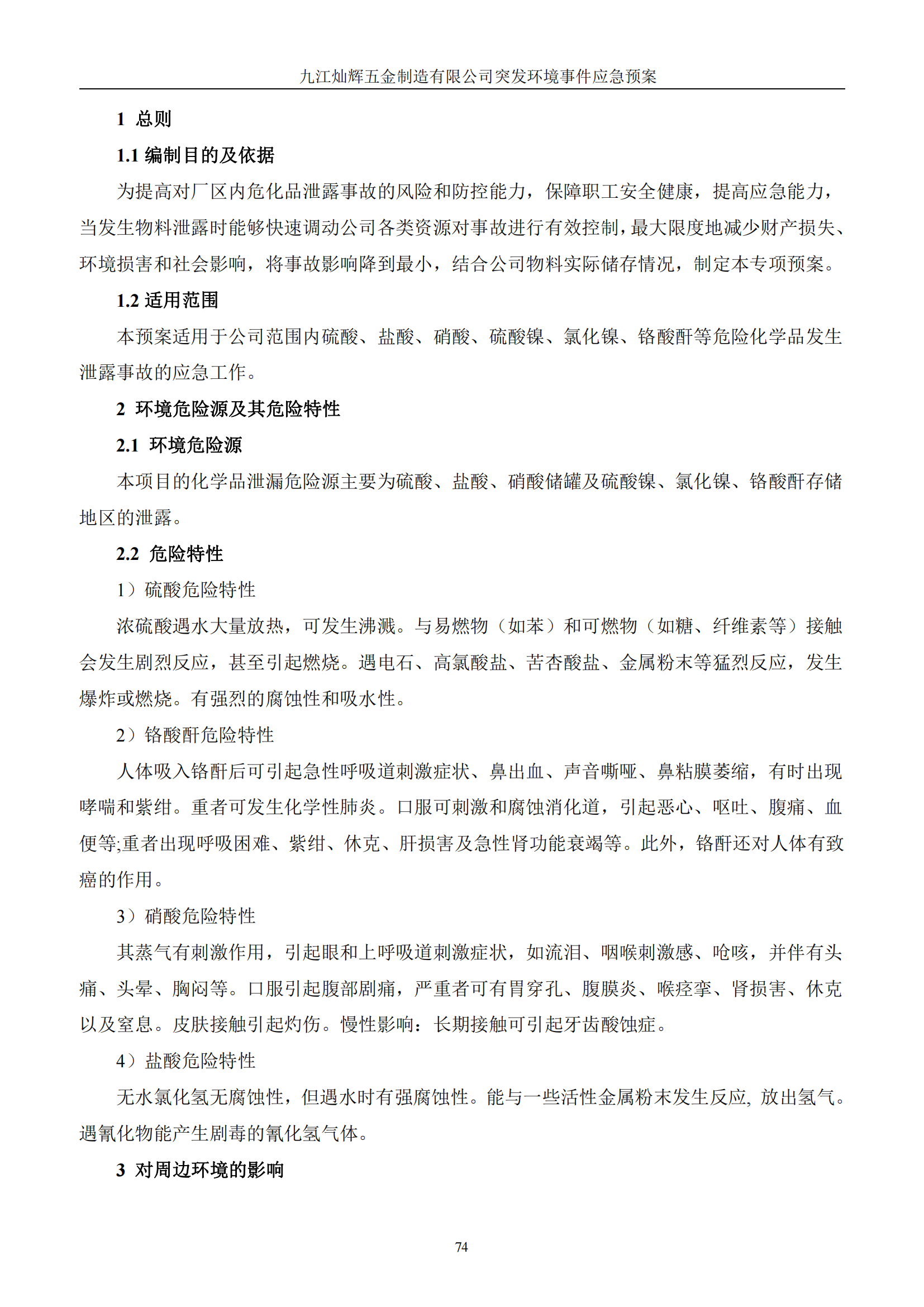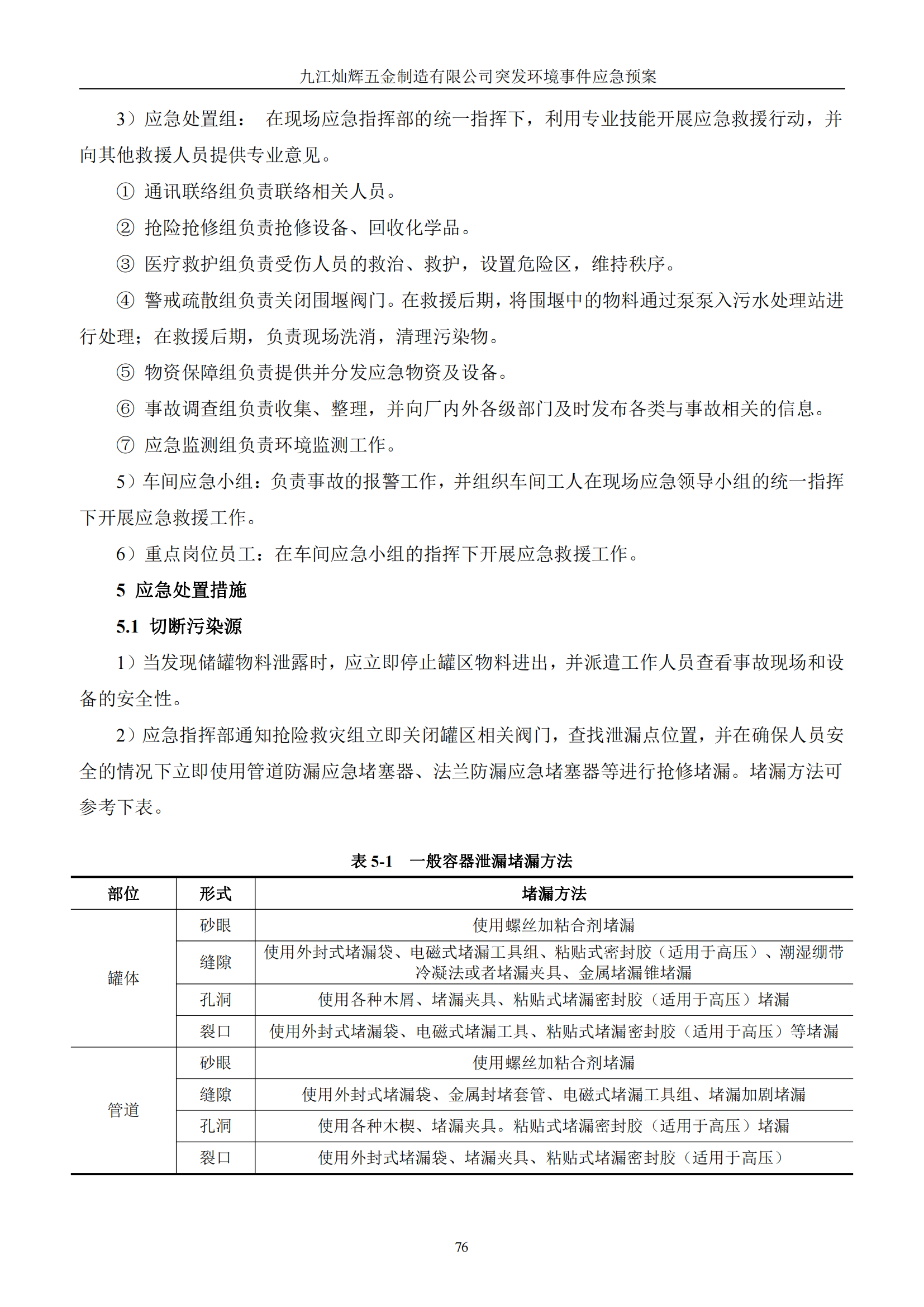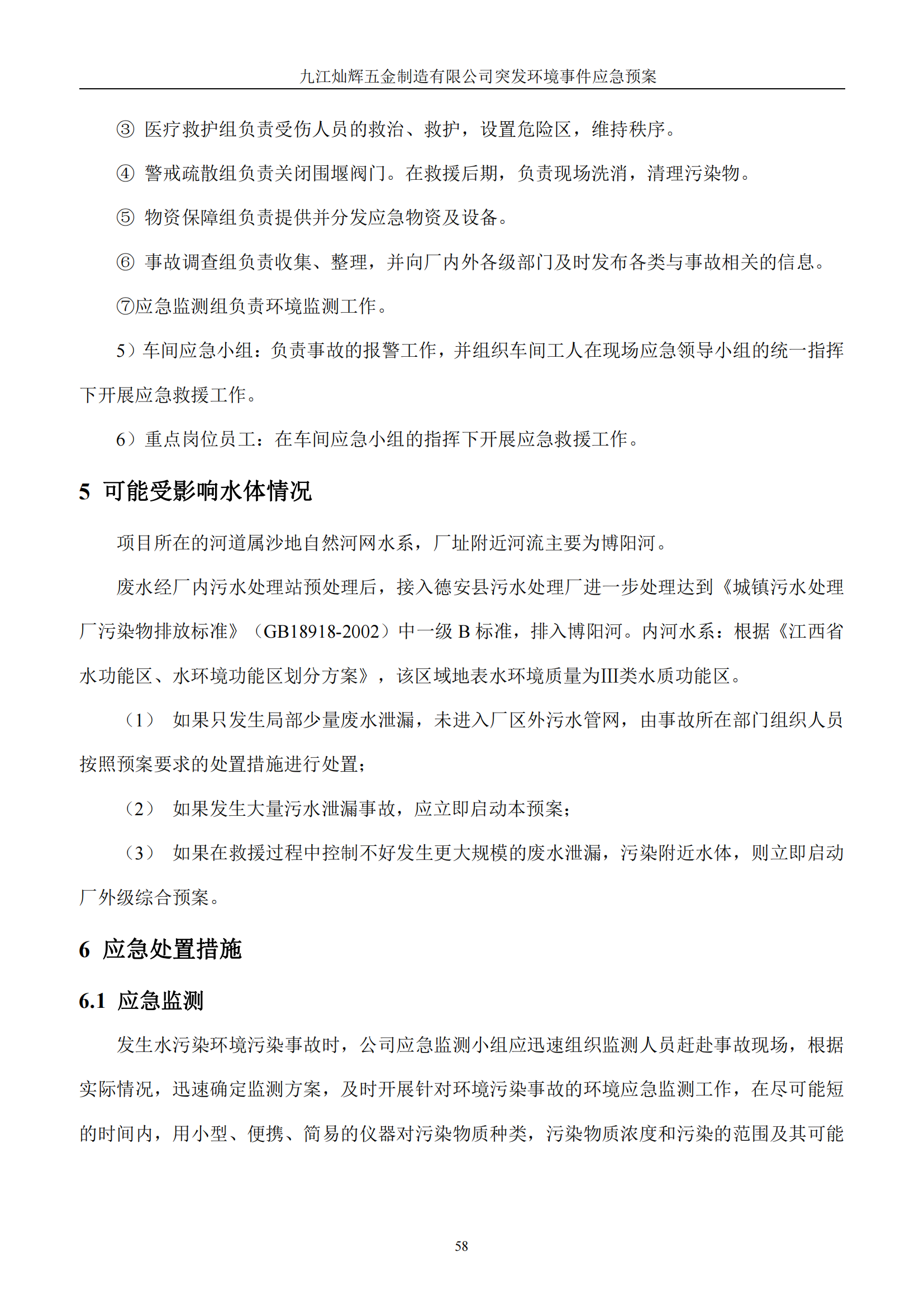 九江灿辉五金制造有限公司应急预案