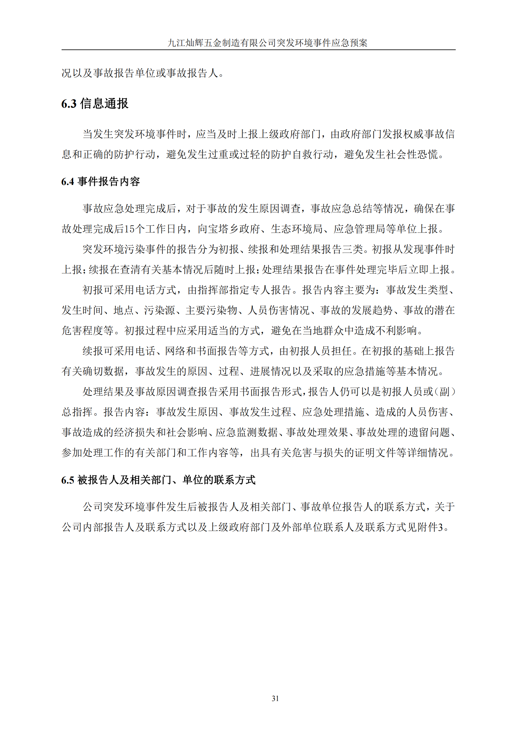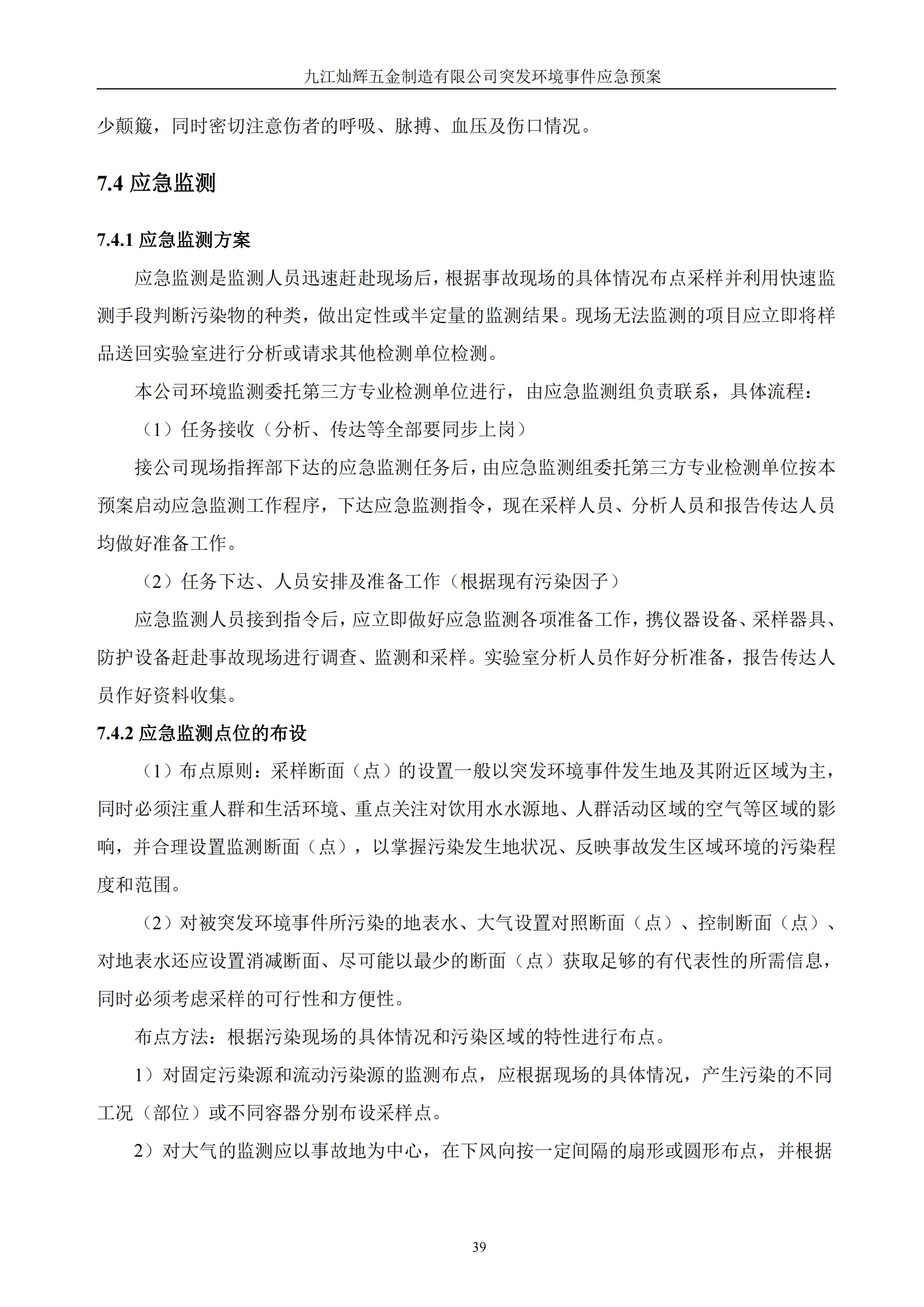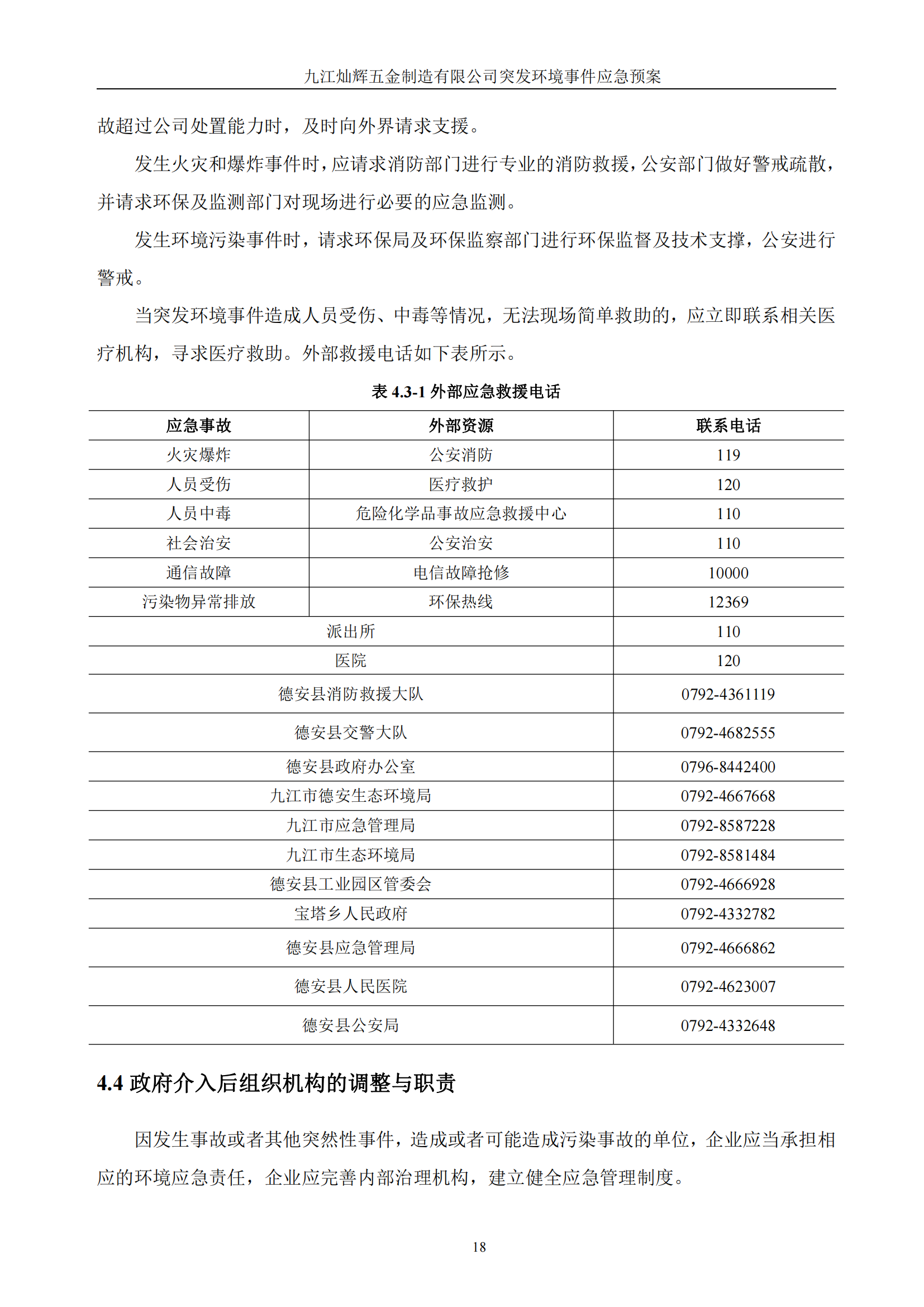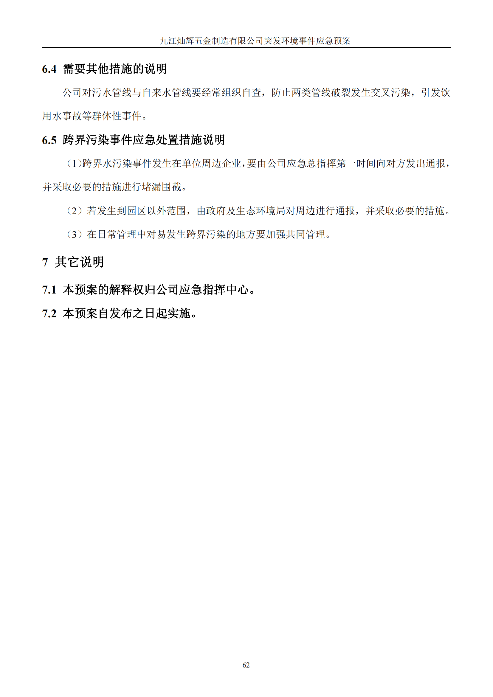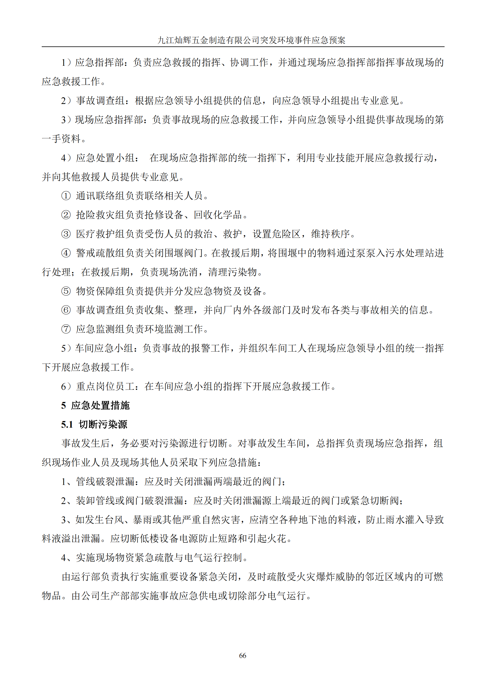 九江灿辉五金制造有限公司应急预案