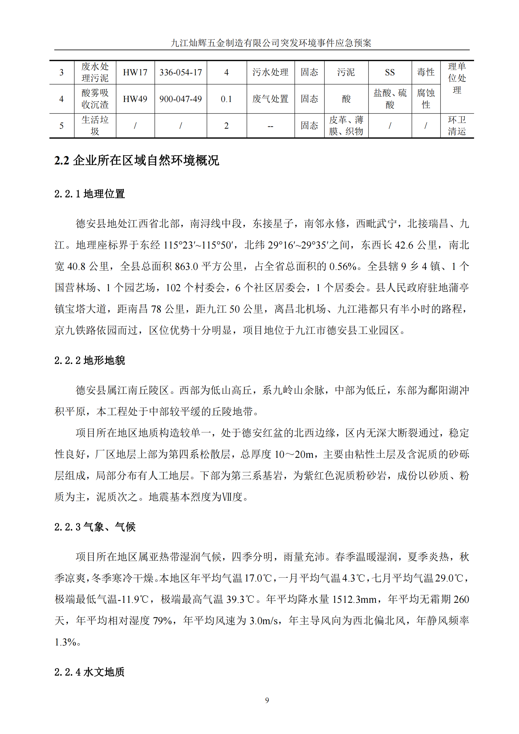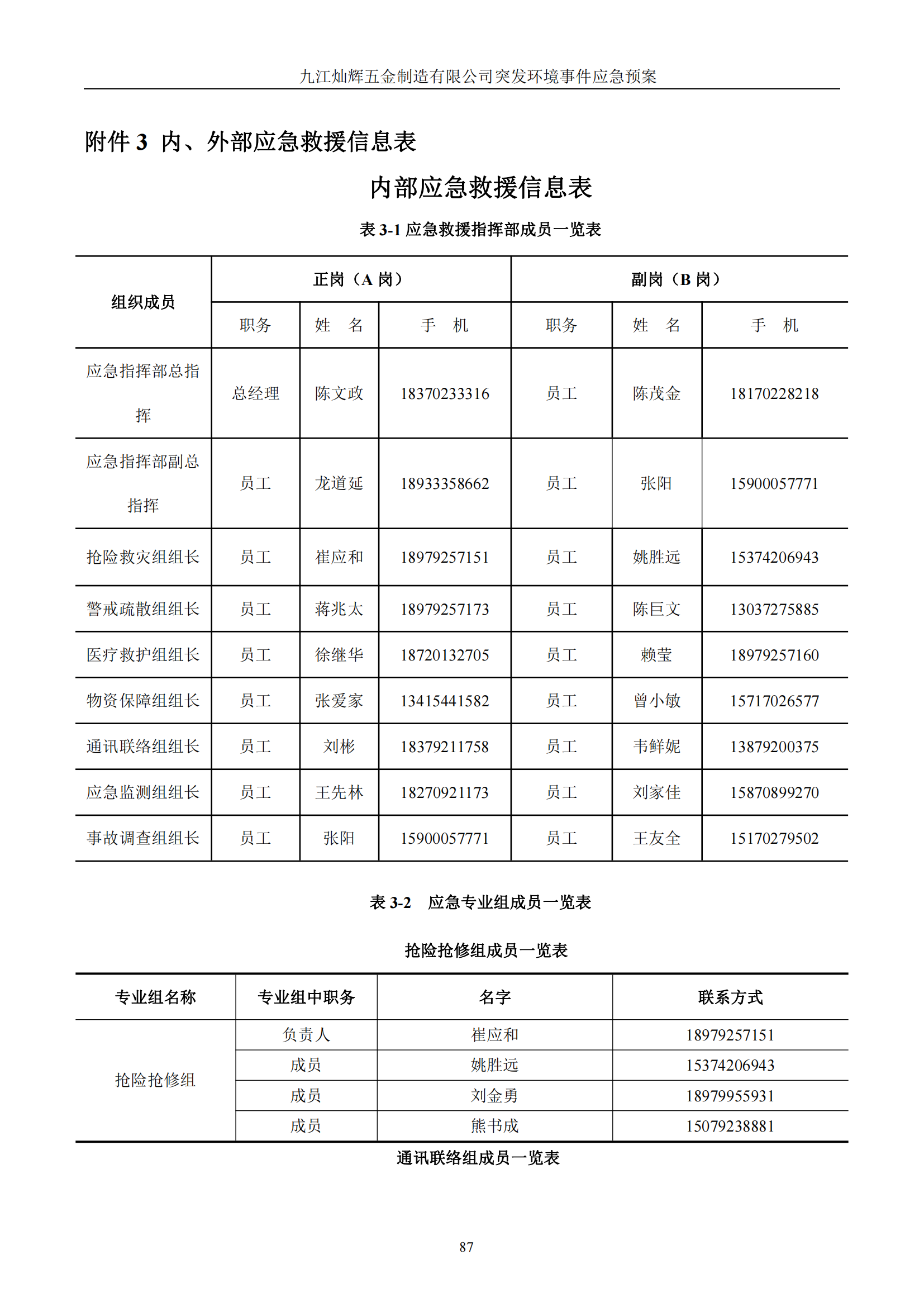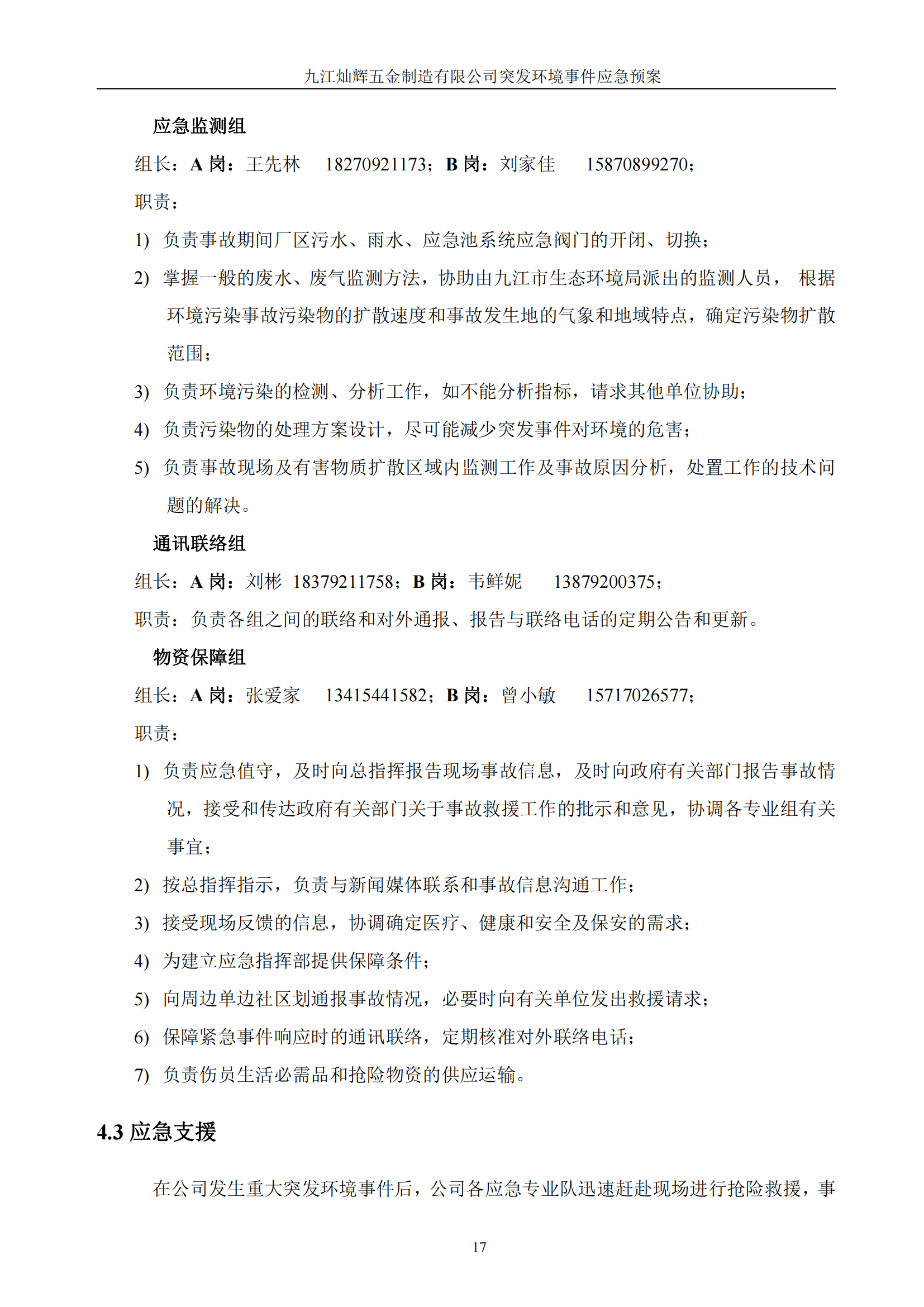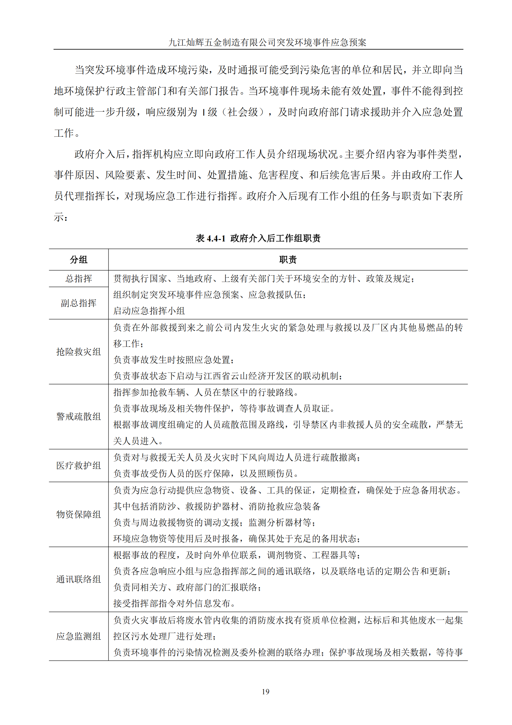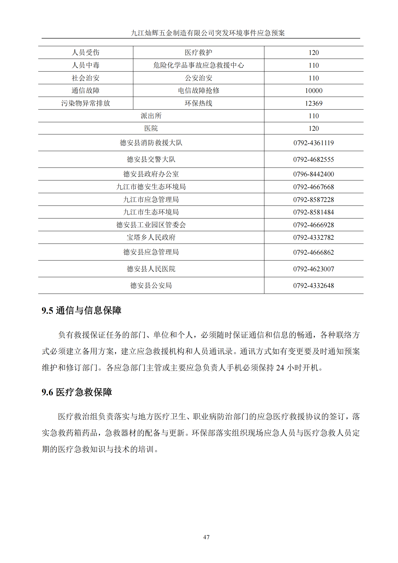 九江灿辉五金制造有限公司应急预案