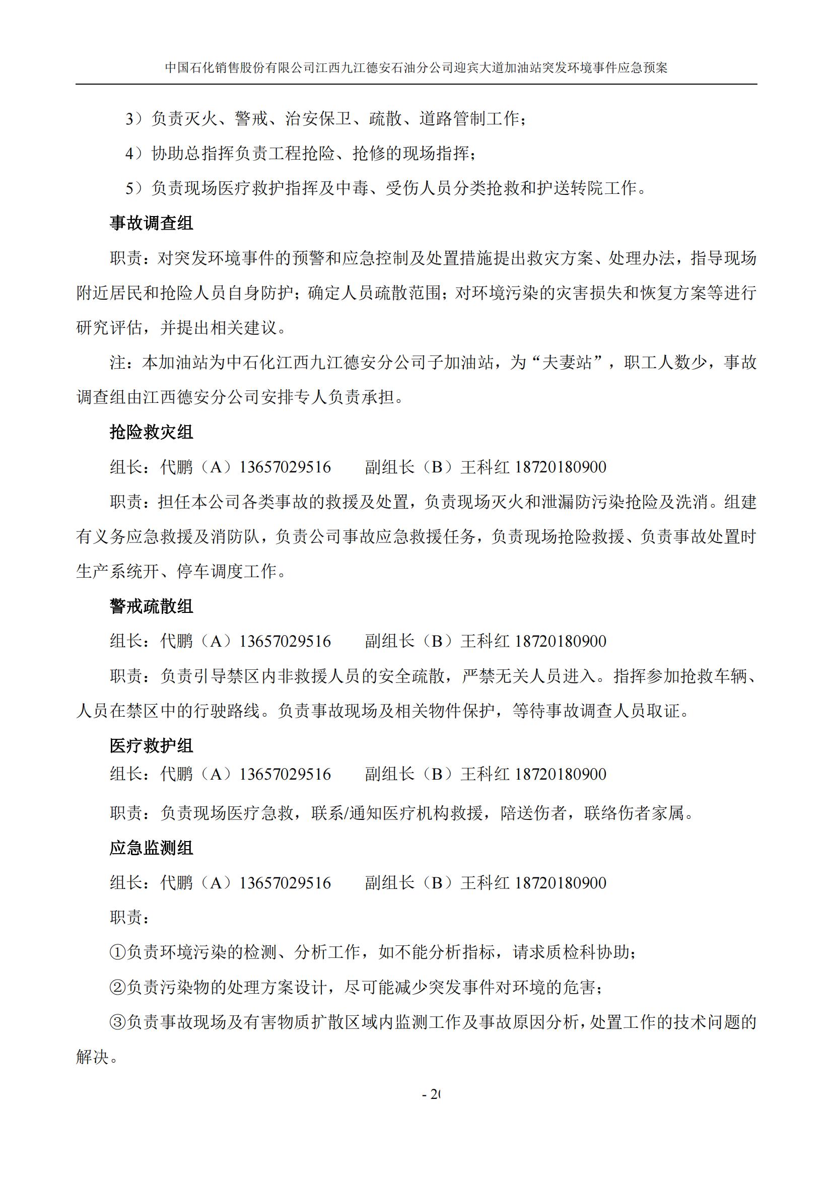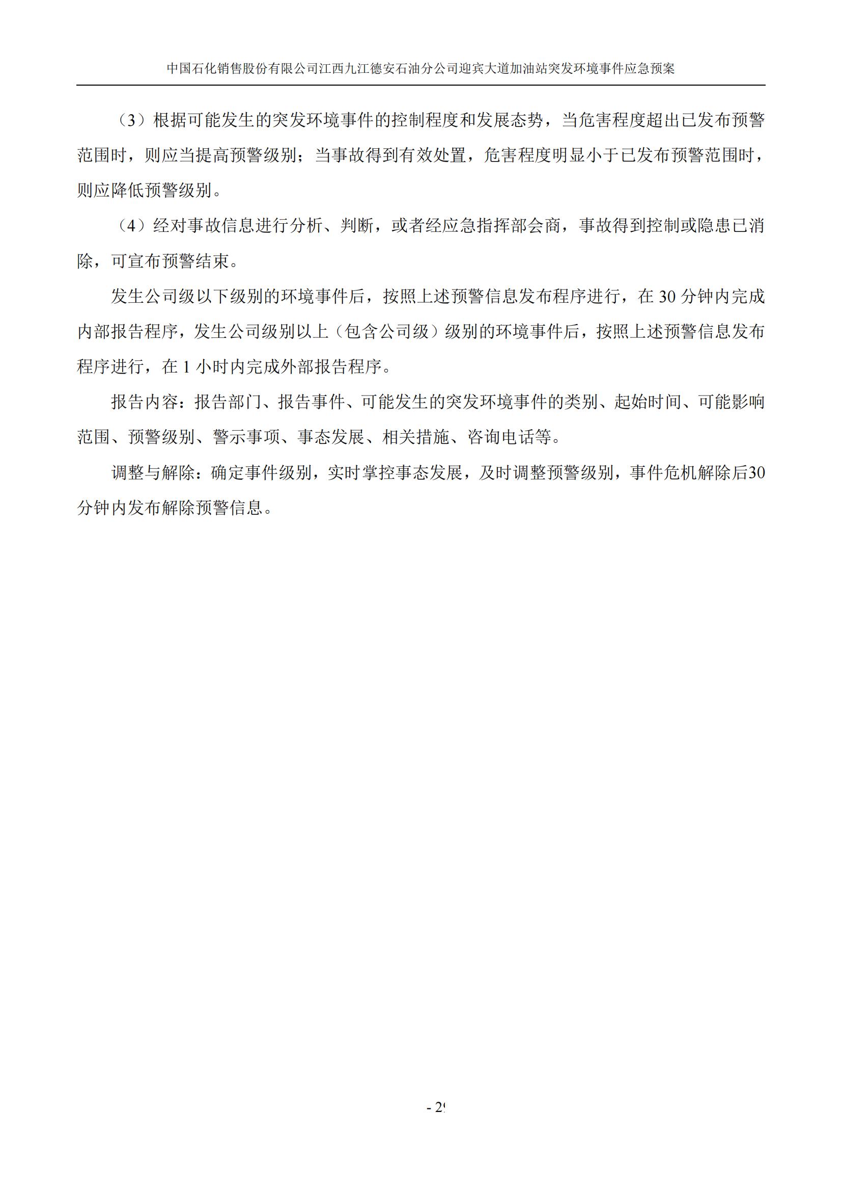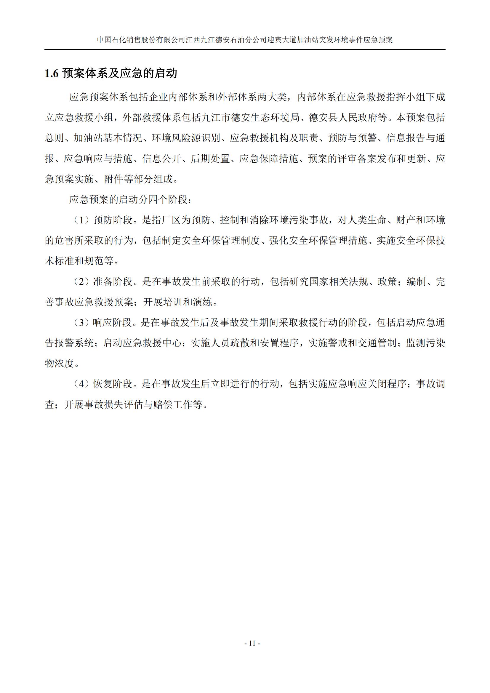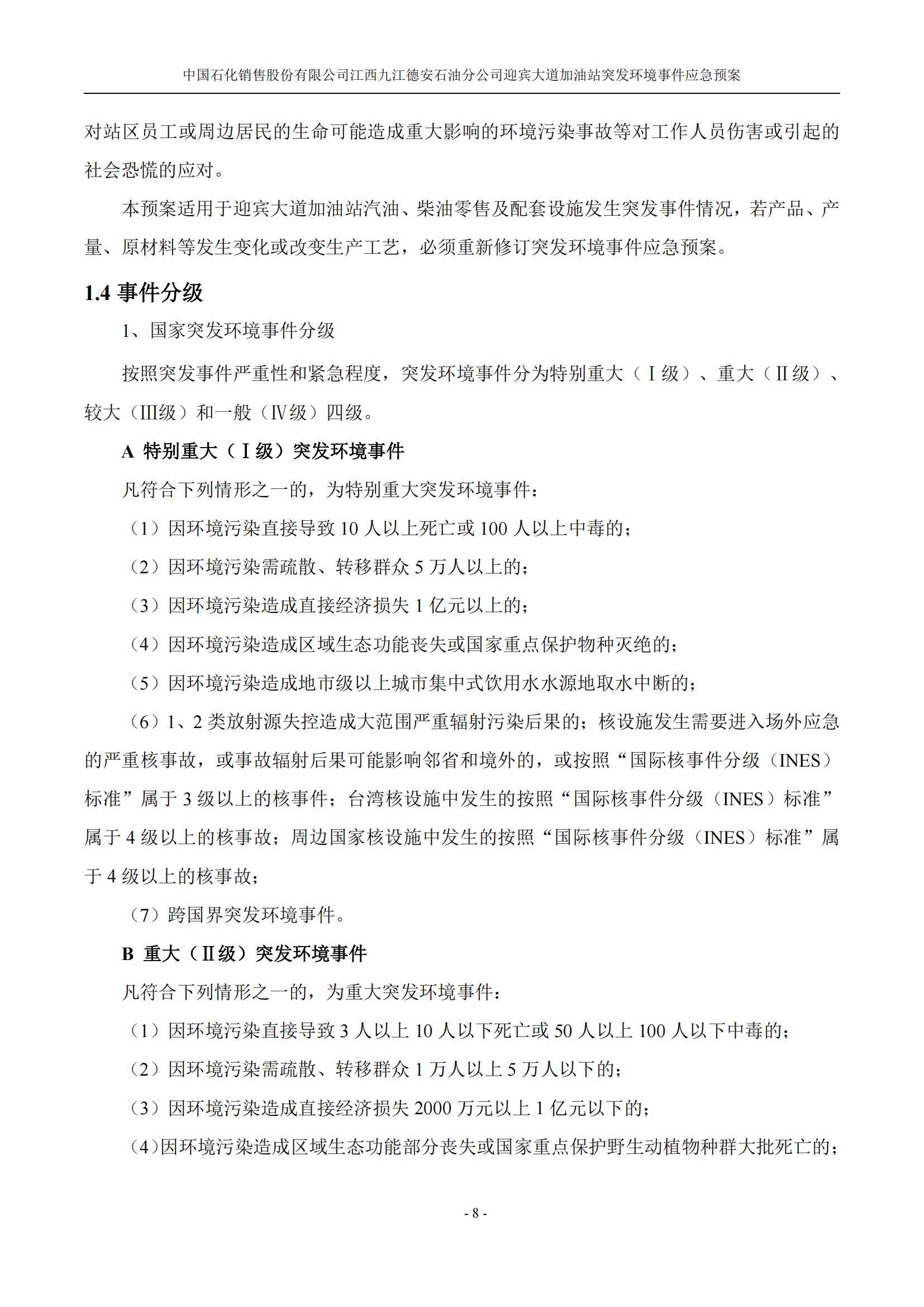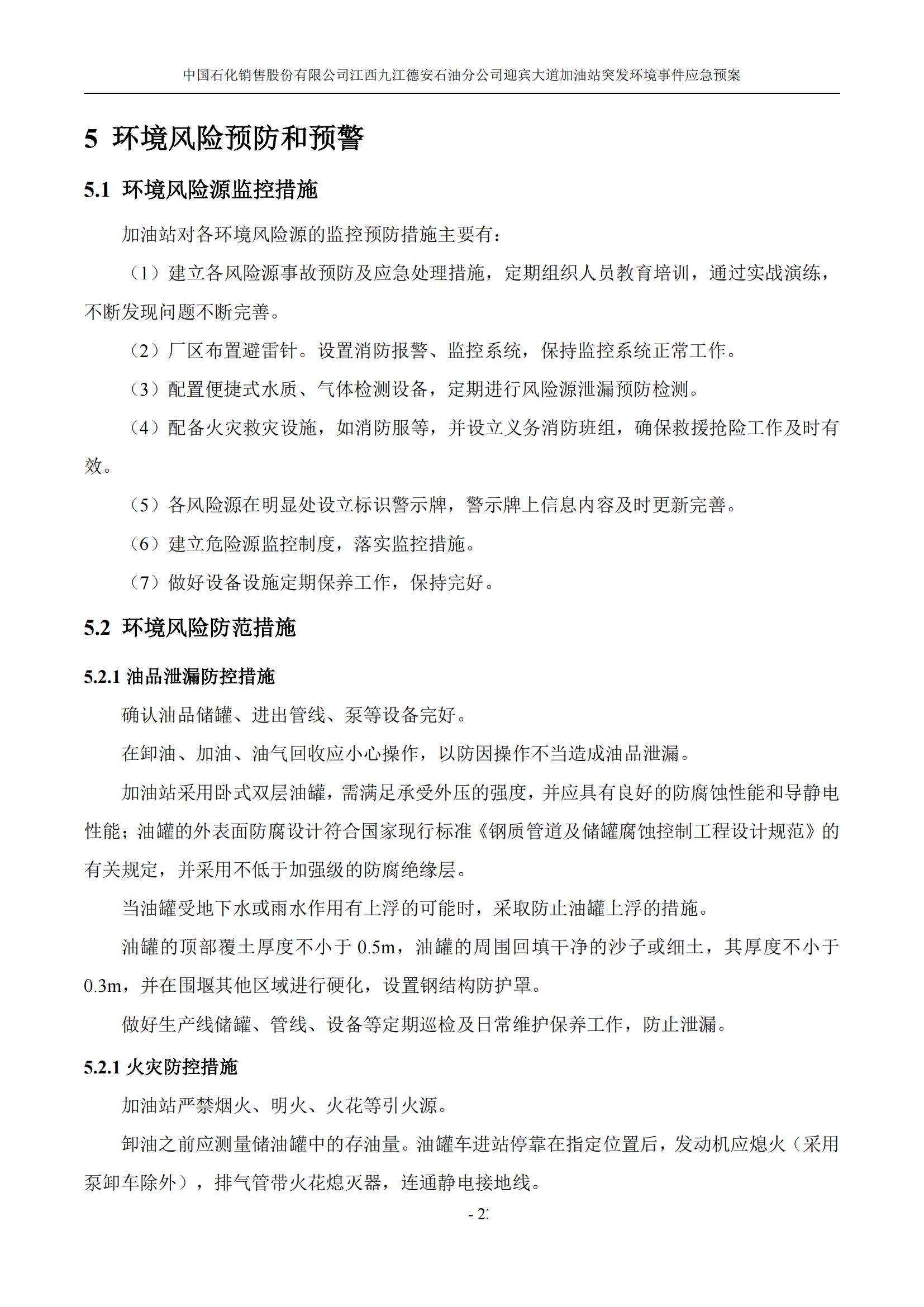 中国石化销售股份有限公司江西九江德安石油分公司迎宾大道加油站突发环境事件应急预案