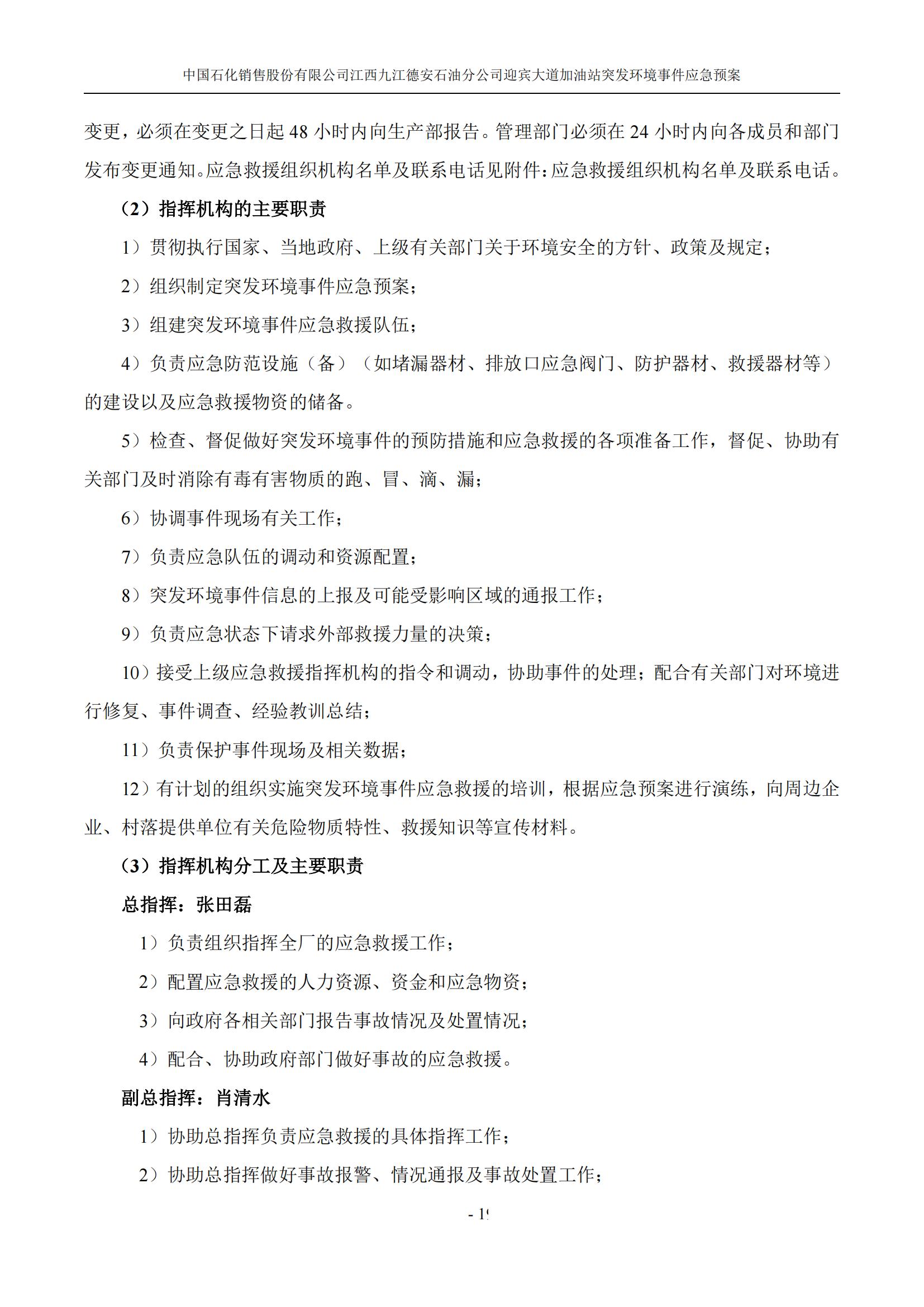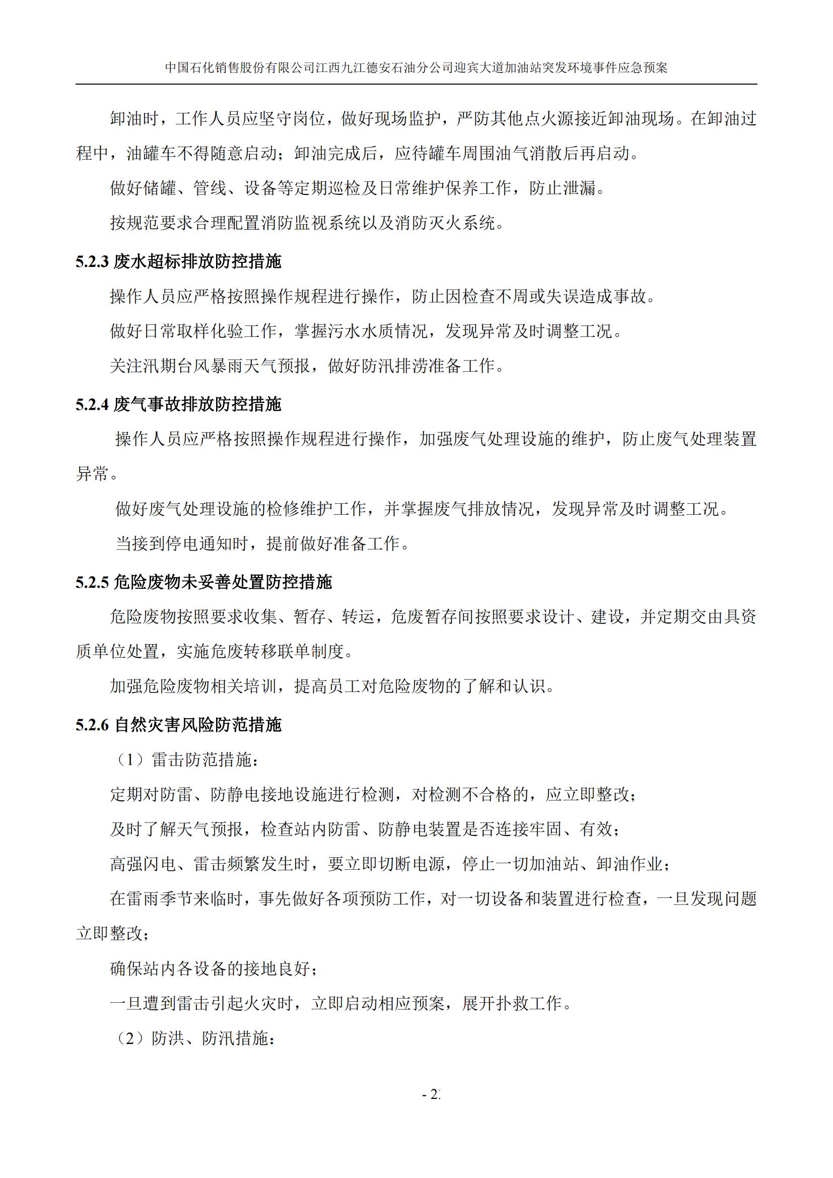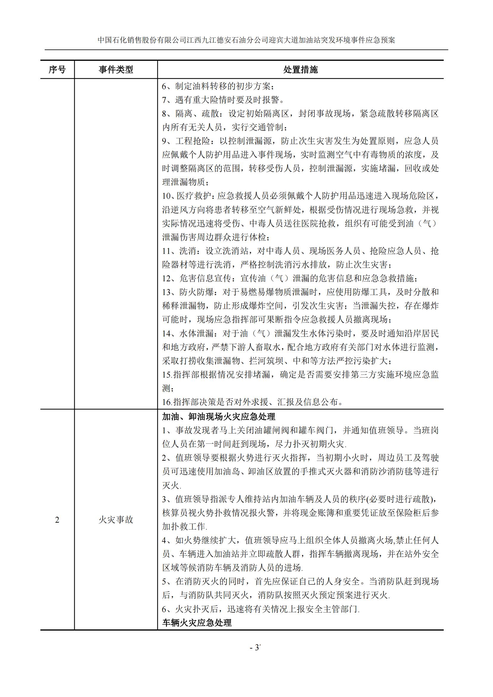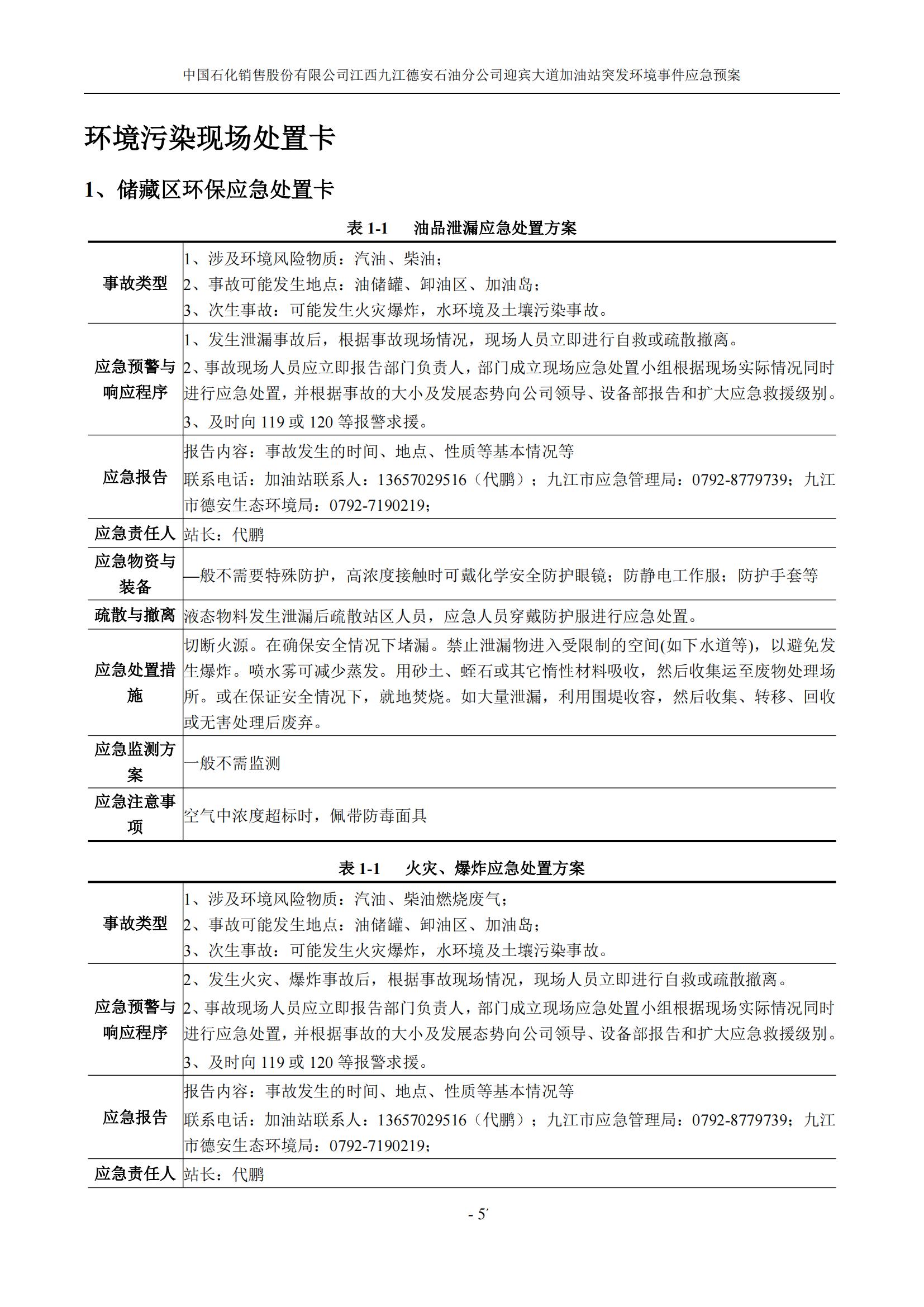 中国石化销售股份有限公司江西九江德安石油分公司迎宾大道加油站突发环境事件应急预案