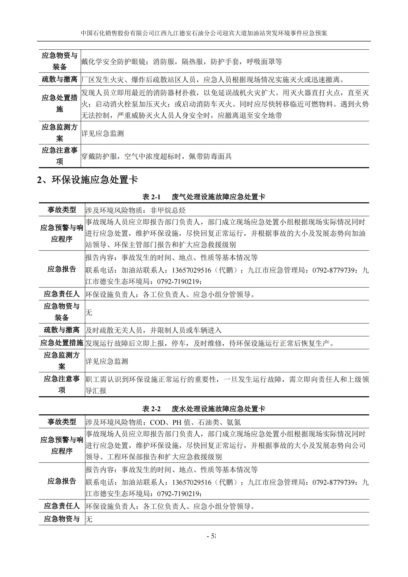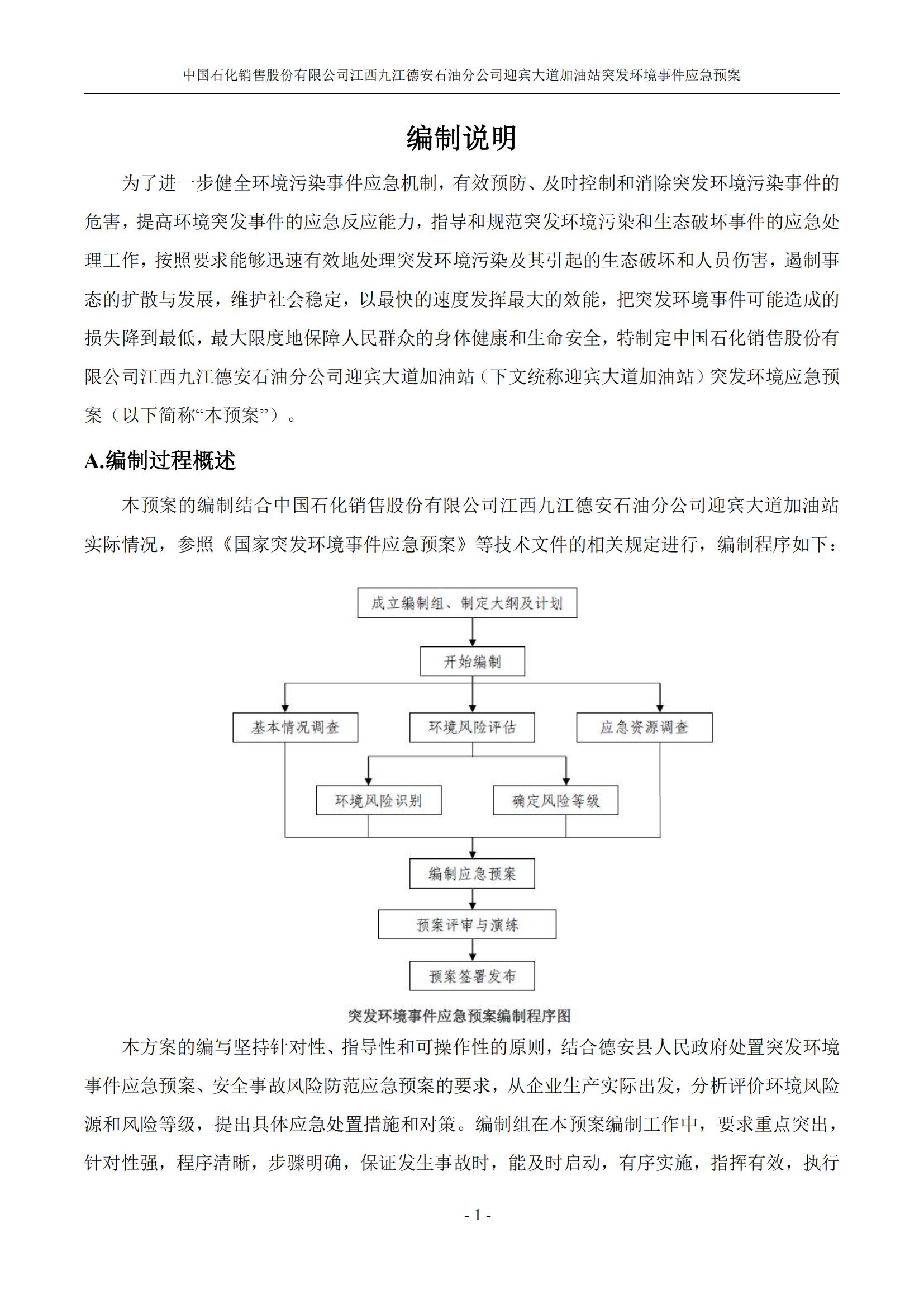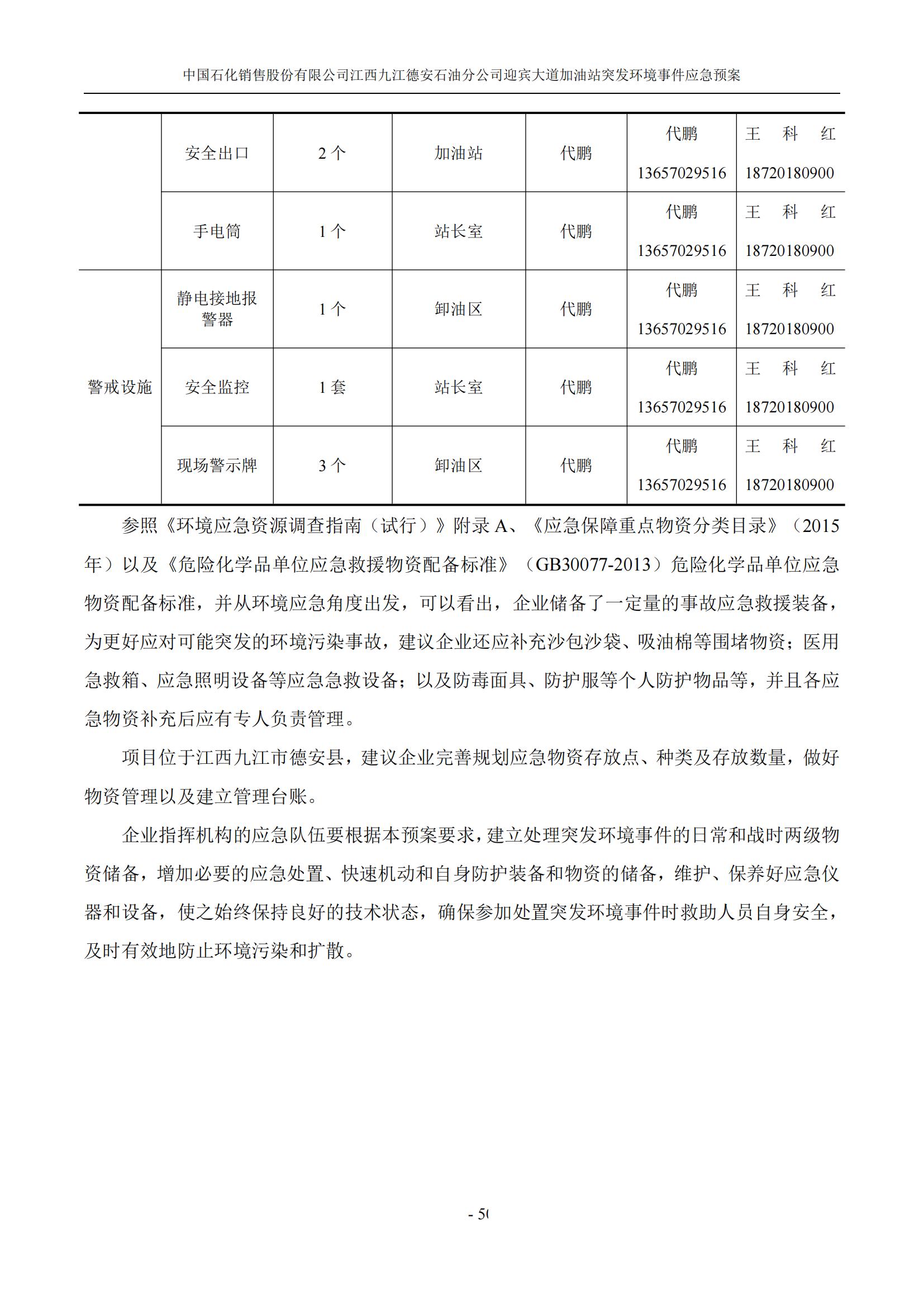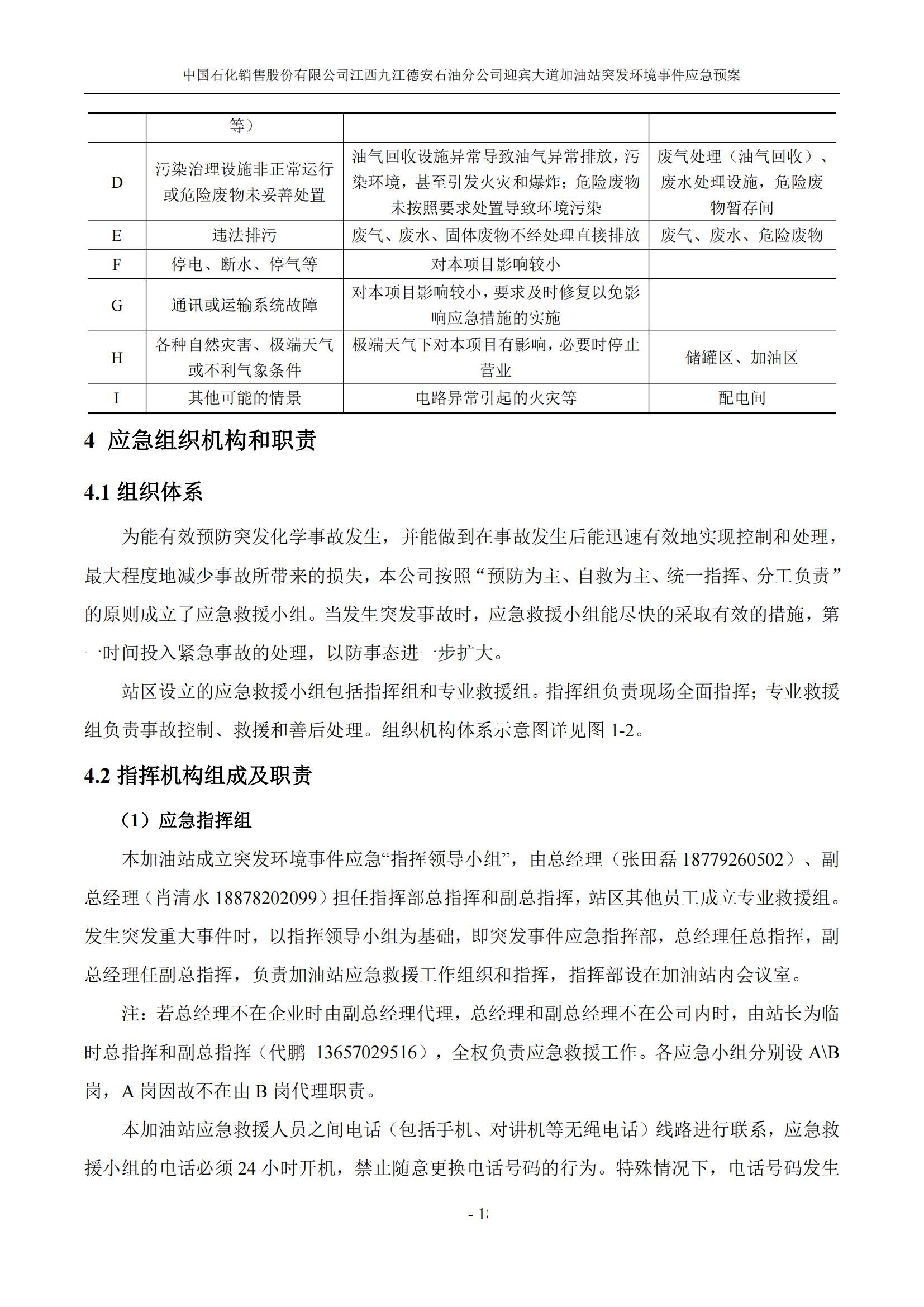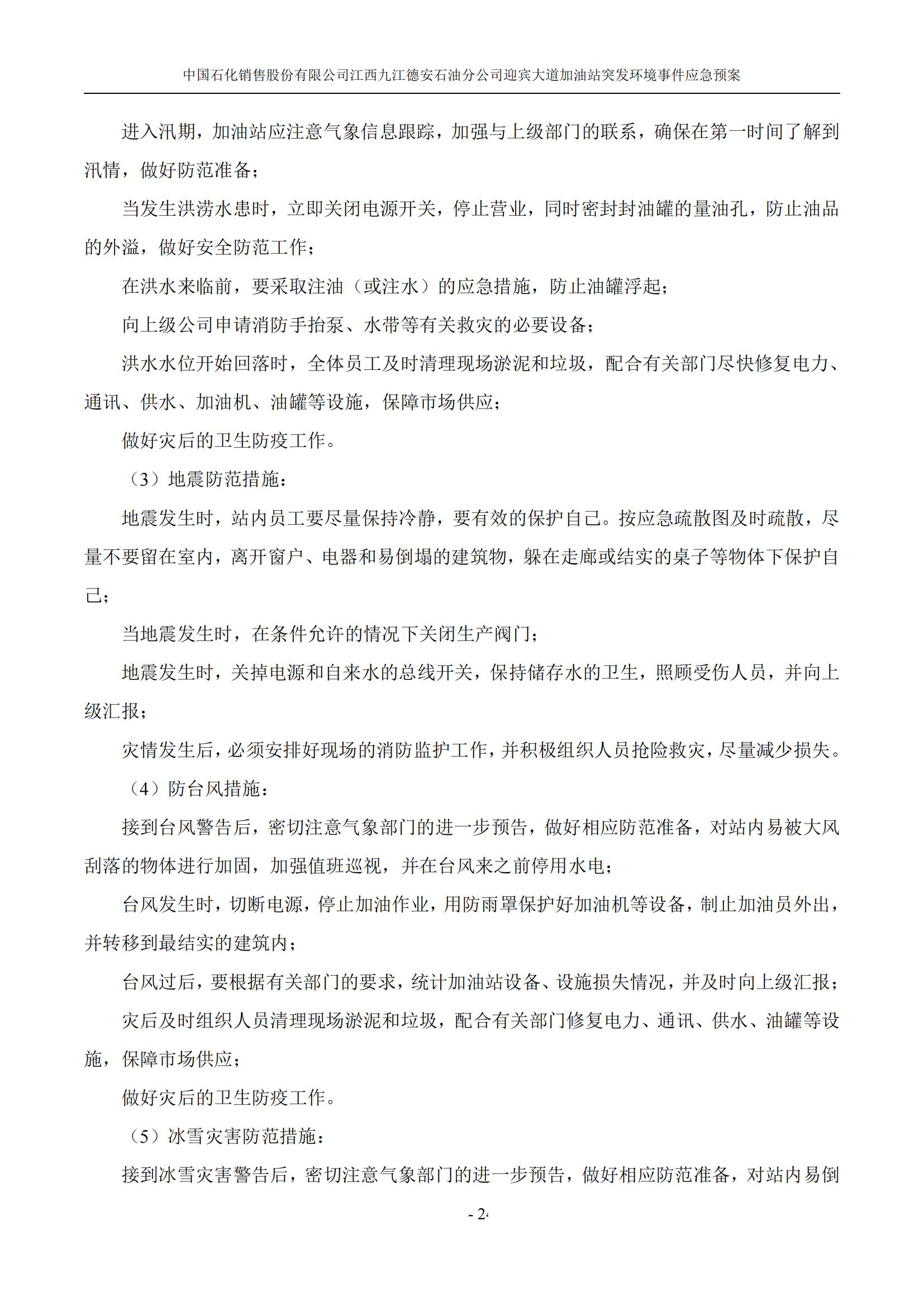 中国石化销售股份有限公司江西九江德安石油分公司迎宾大道加油站突发环境事件应急预案