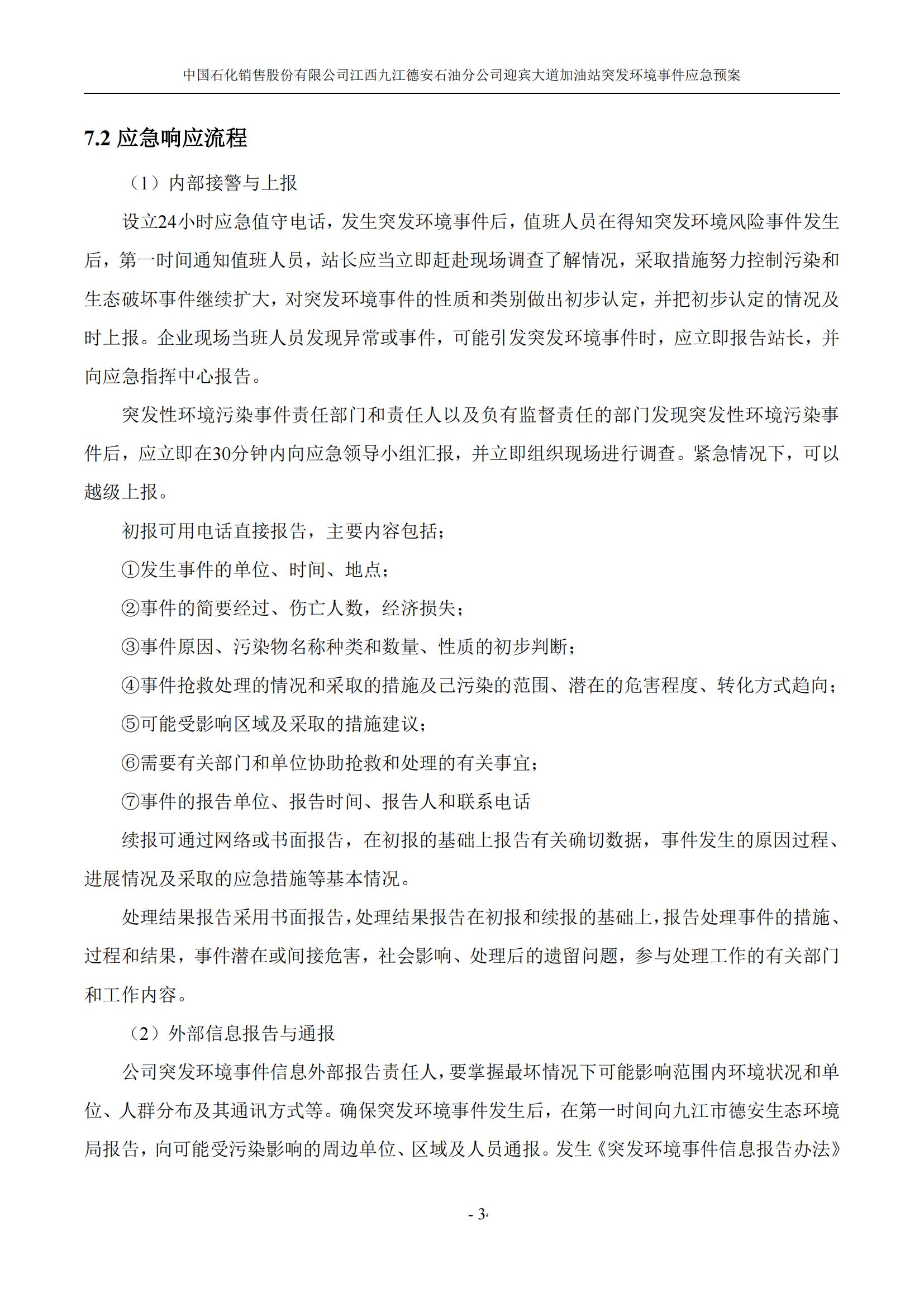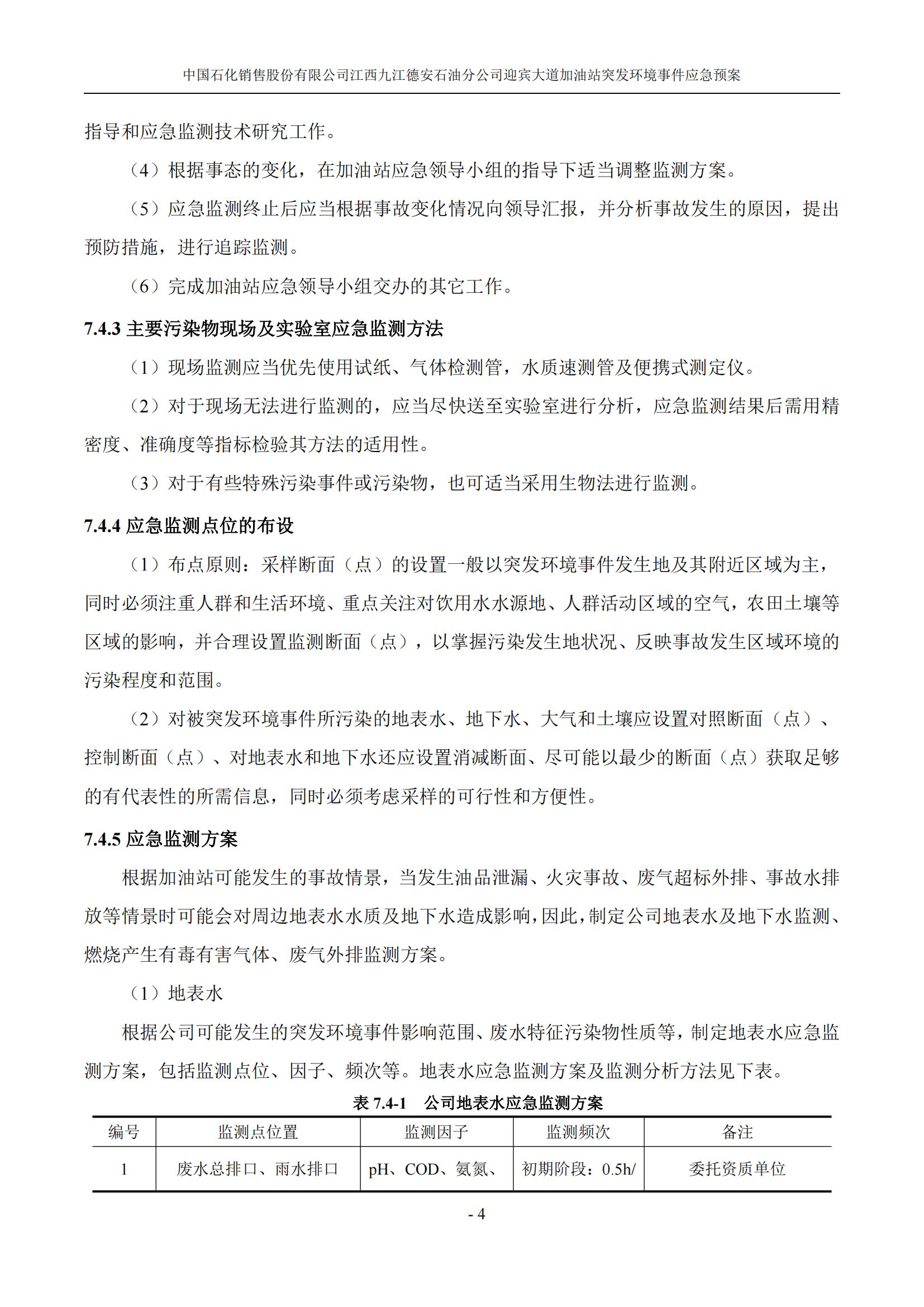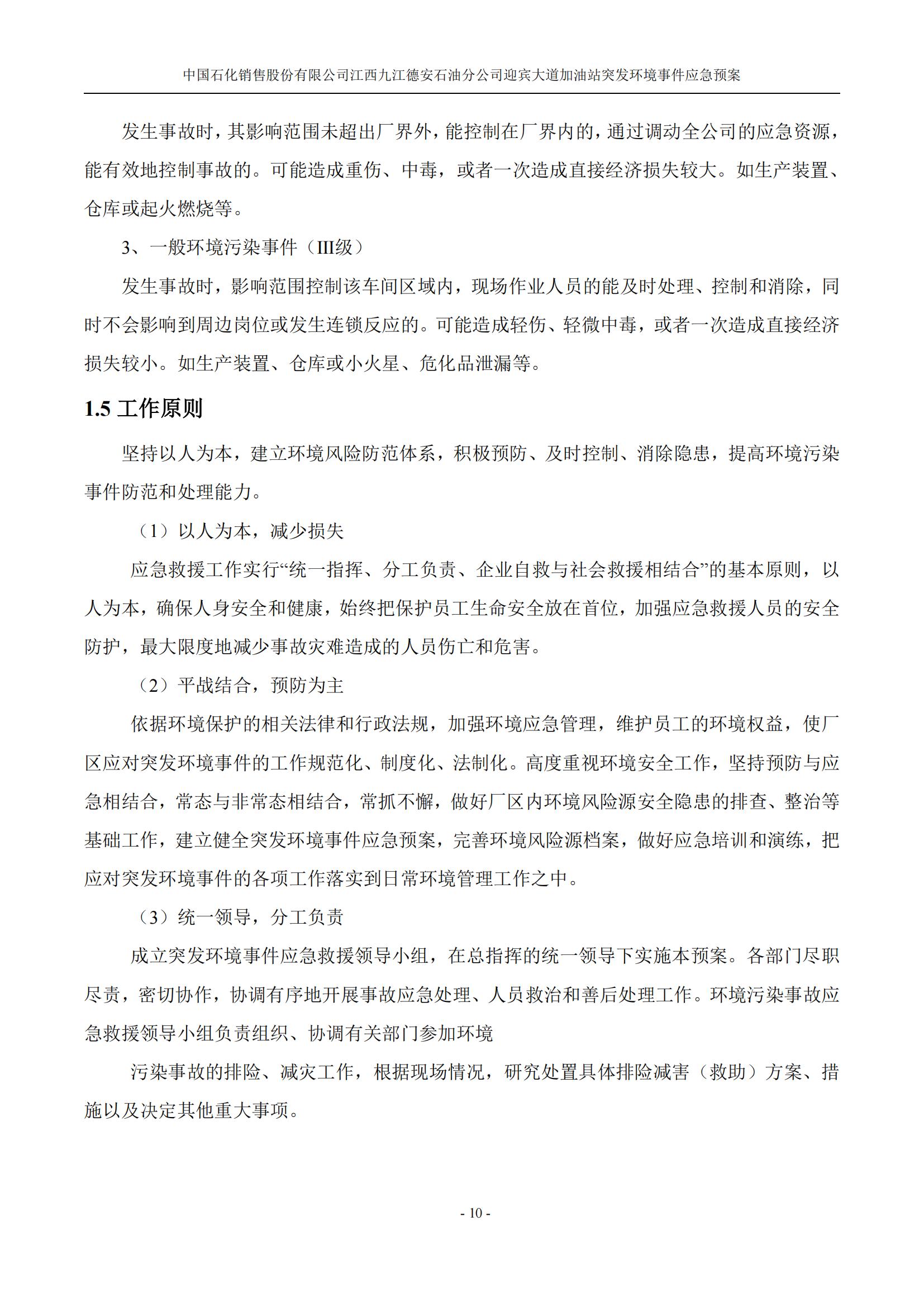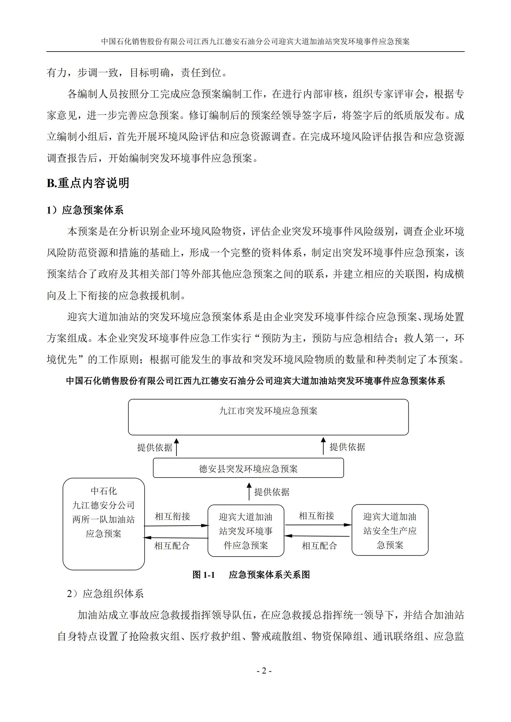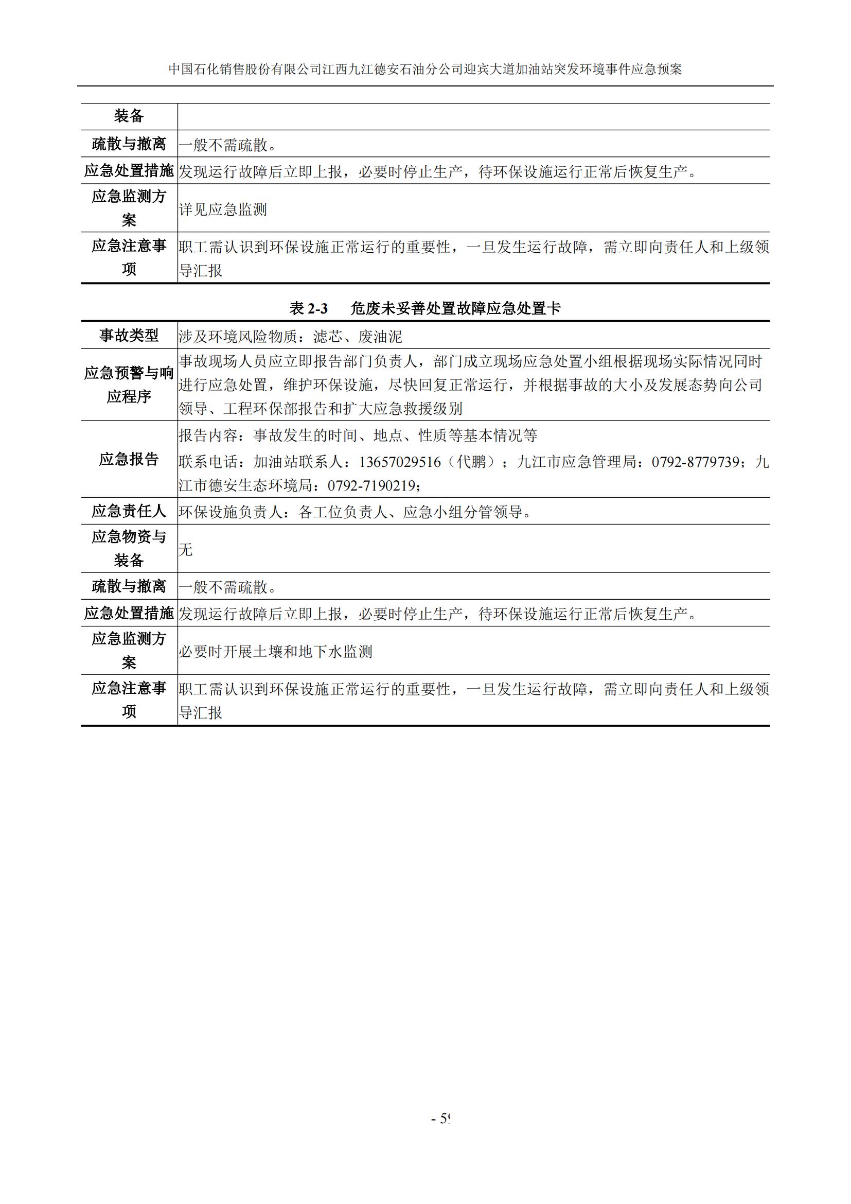 中国石化销售股份有限公司江西九江德安石油分公司迎宾大道加油站突发环境事件应急预案