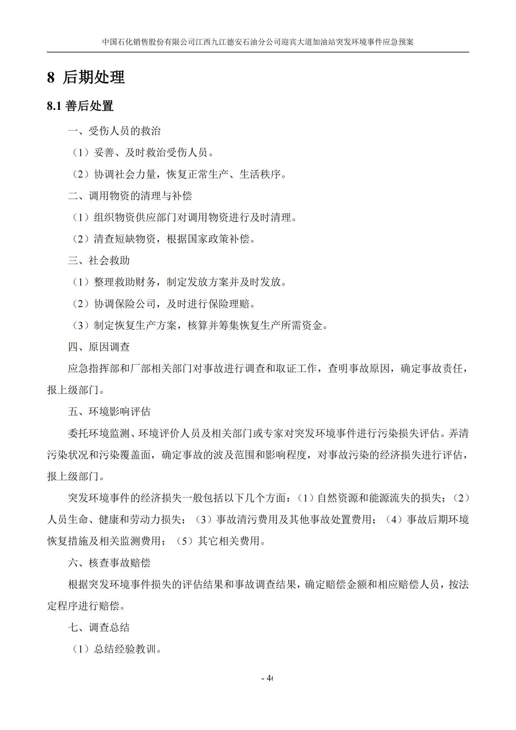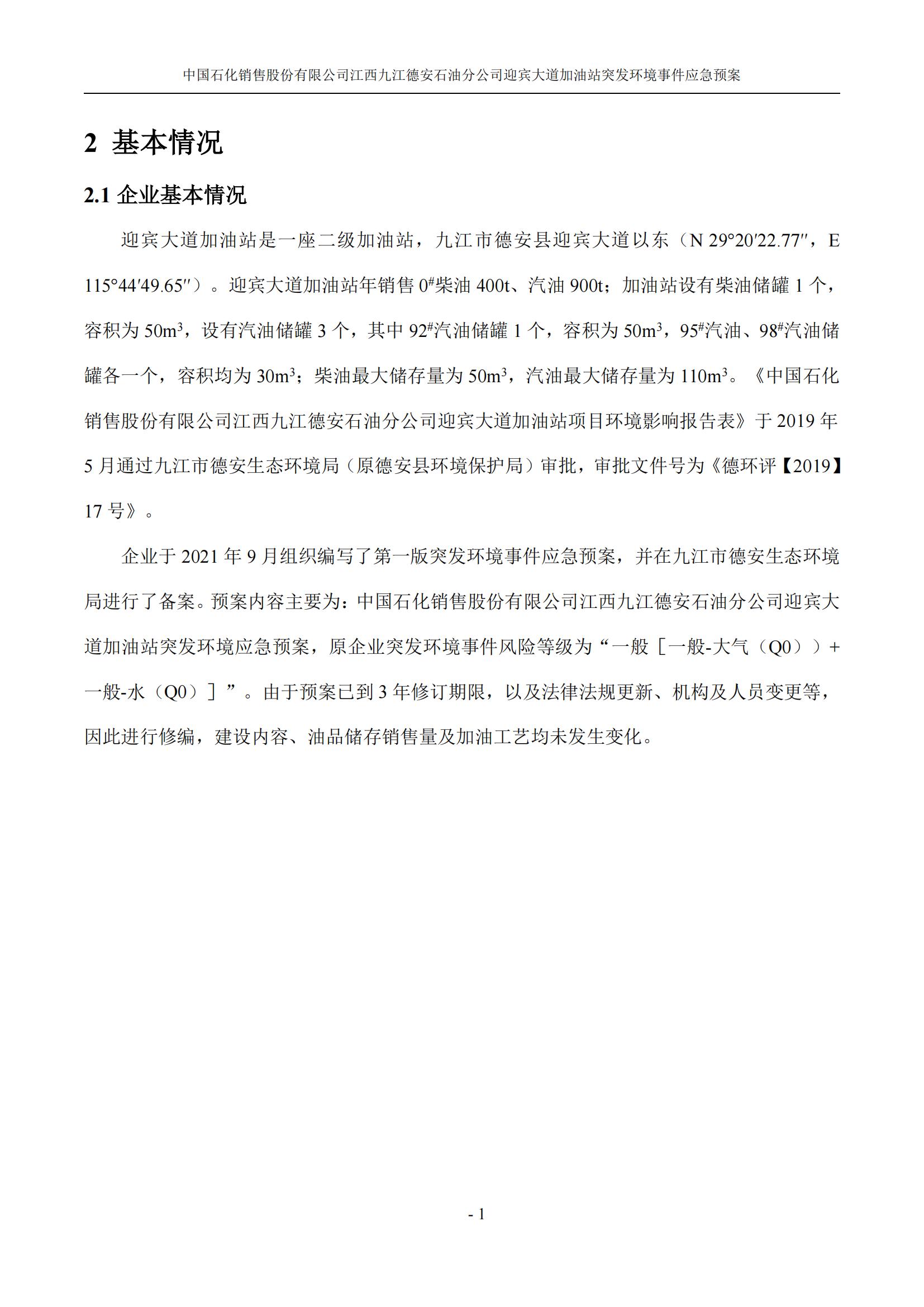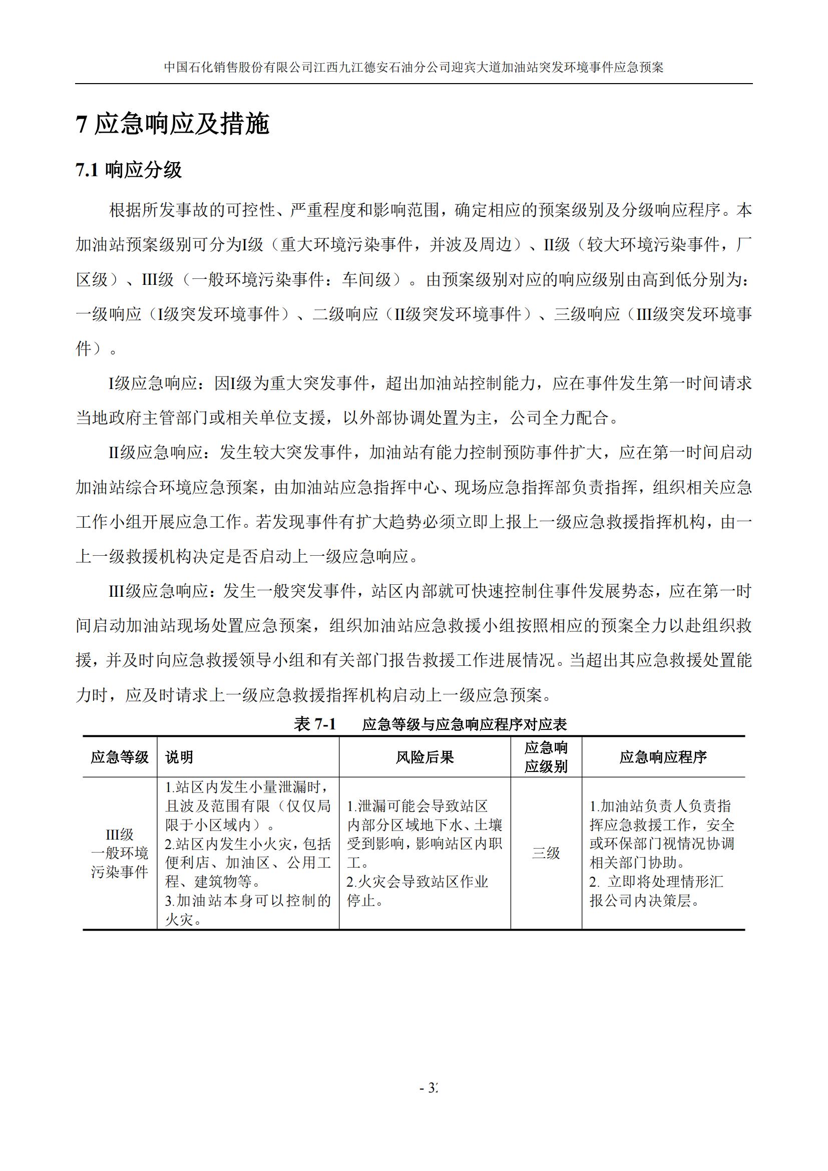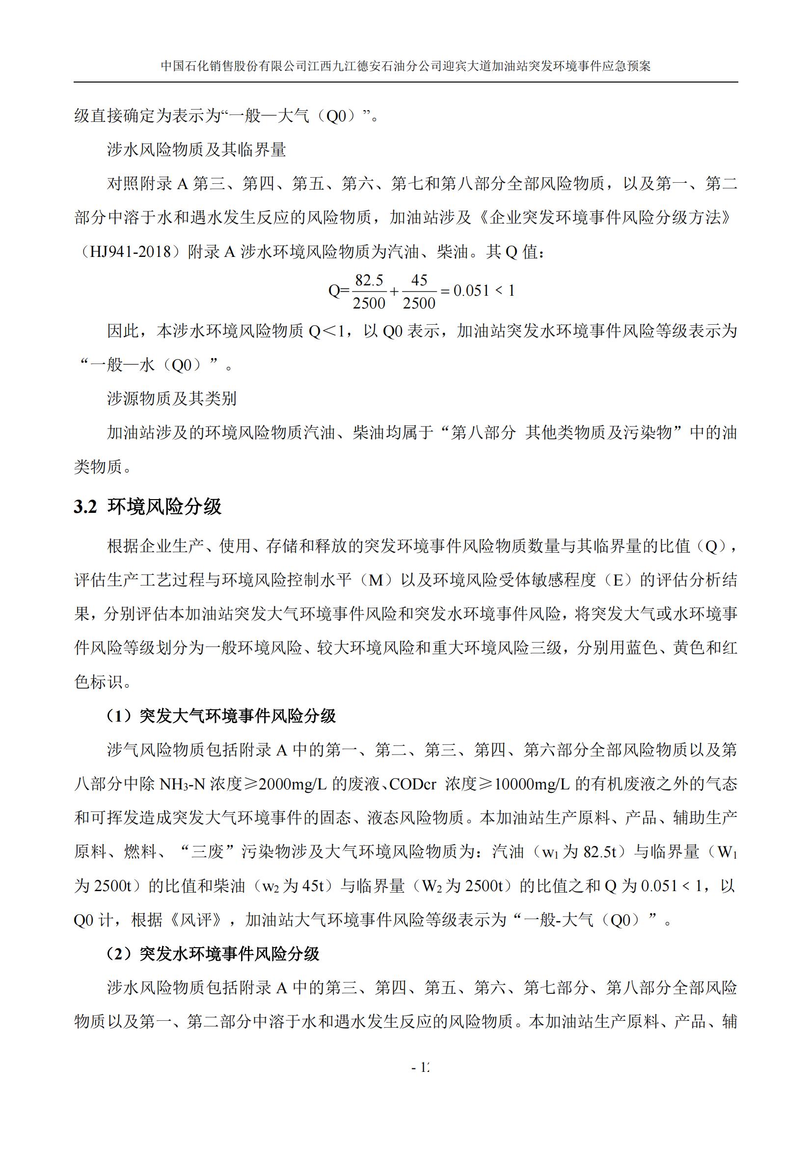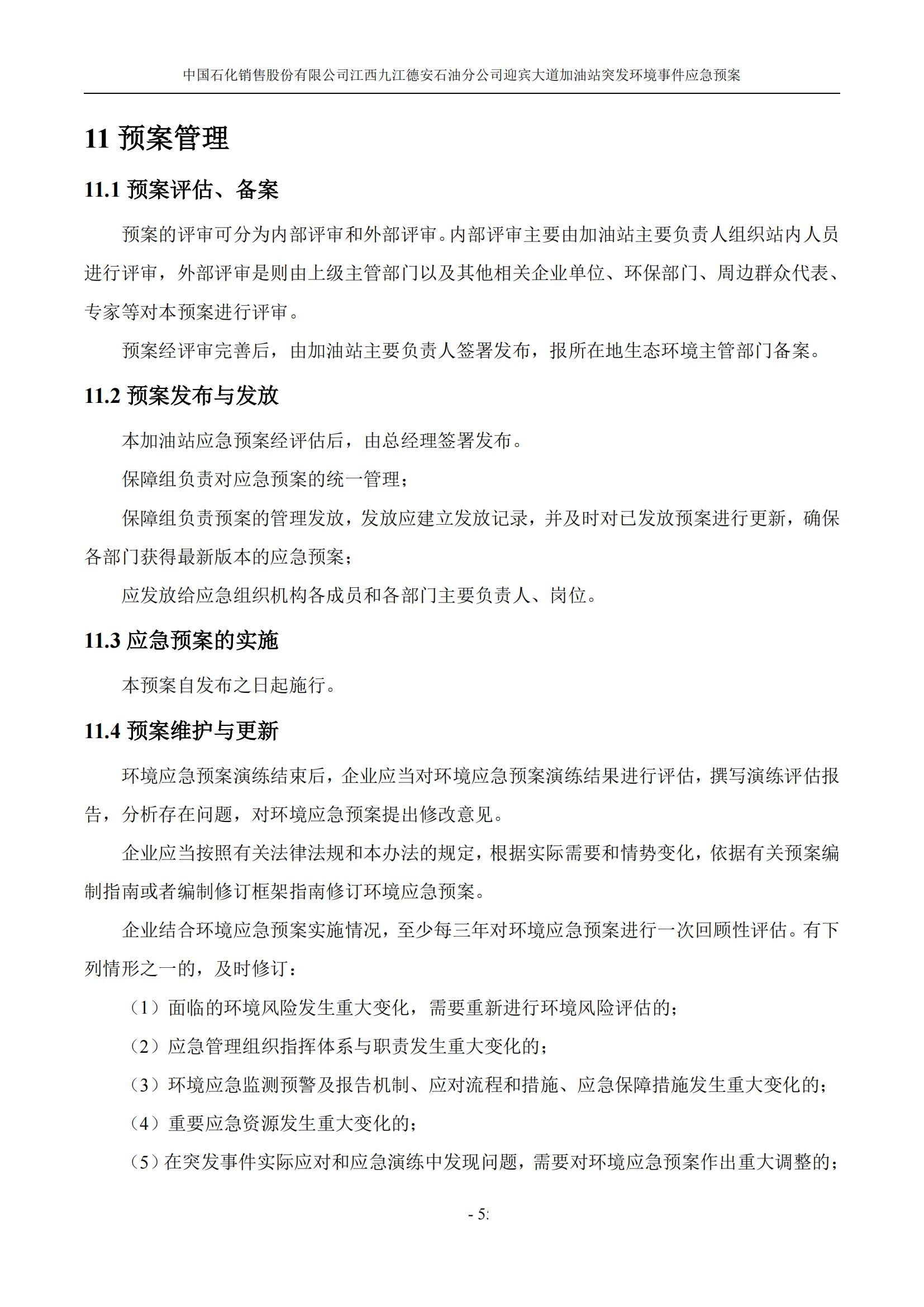 中国石化销售股份有限公司江西九江德安石油分公司迎宾大道加油站突发环境事件应急预案