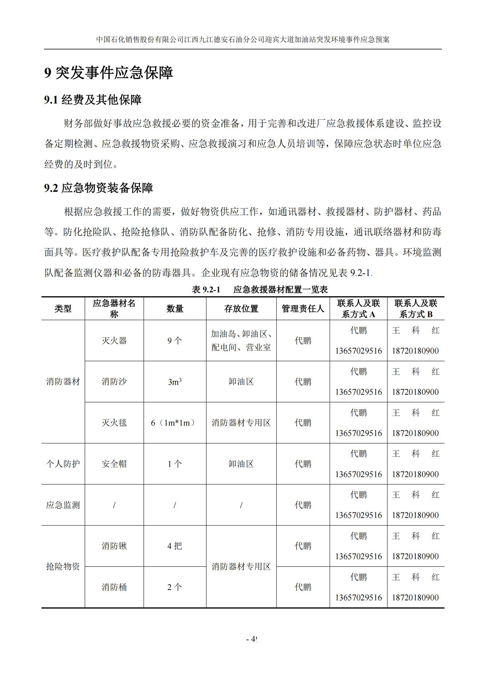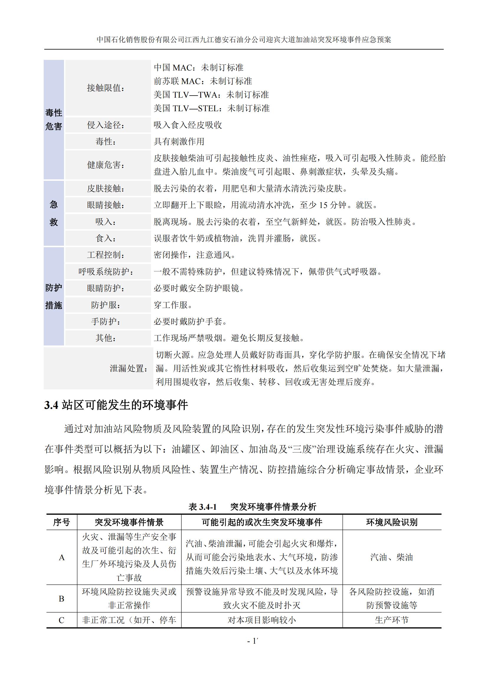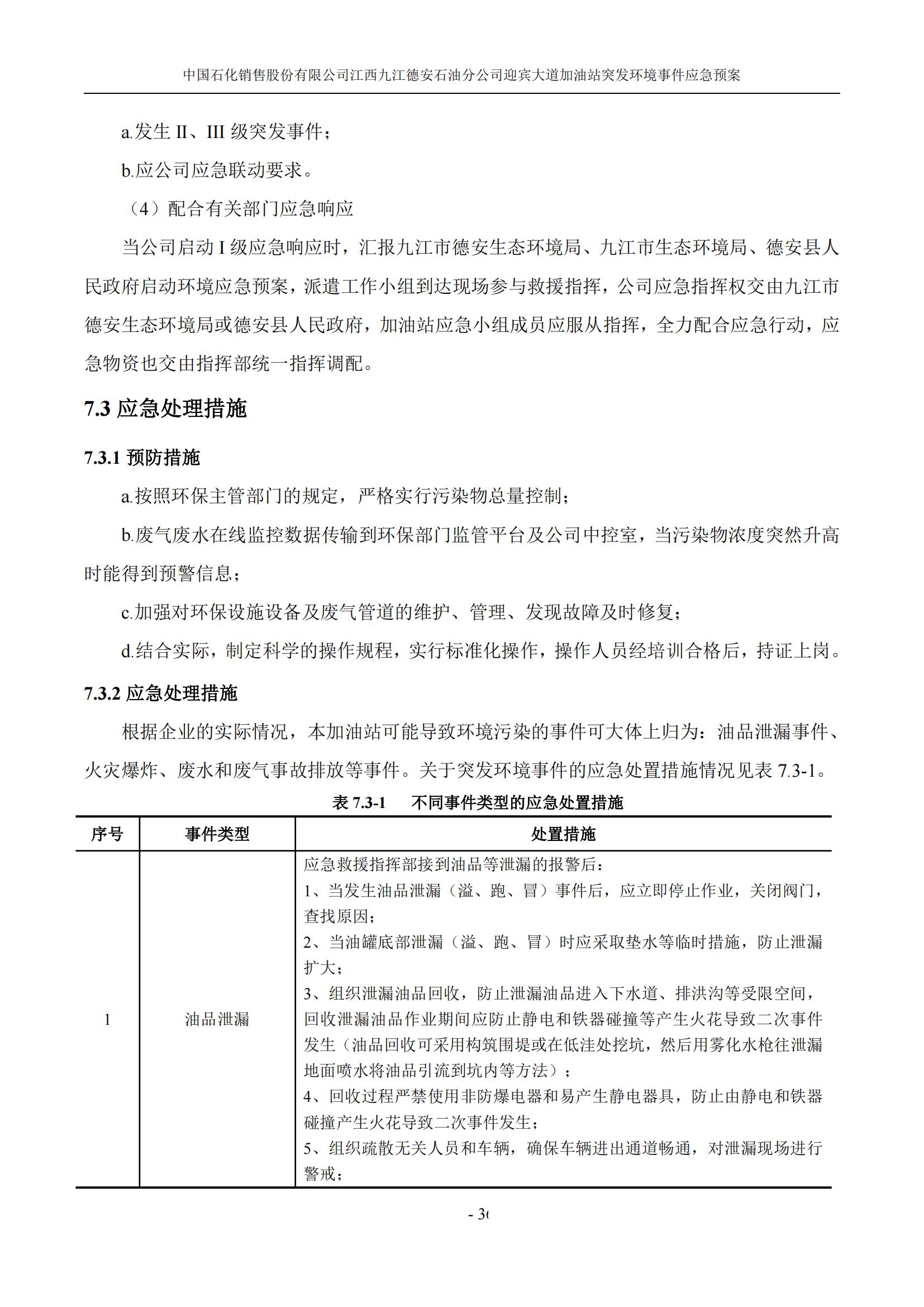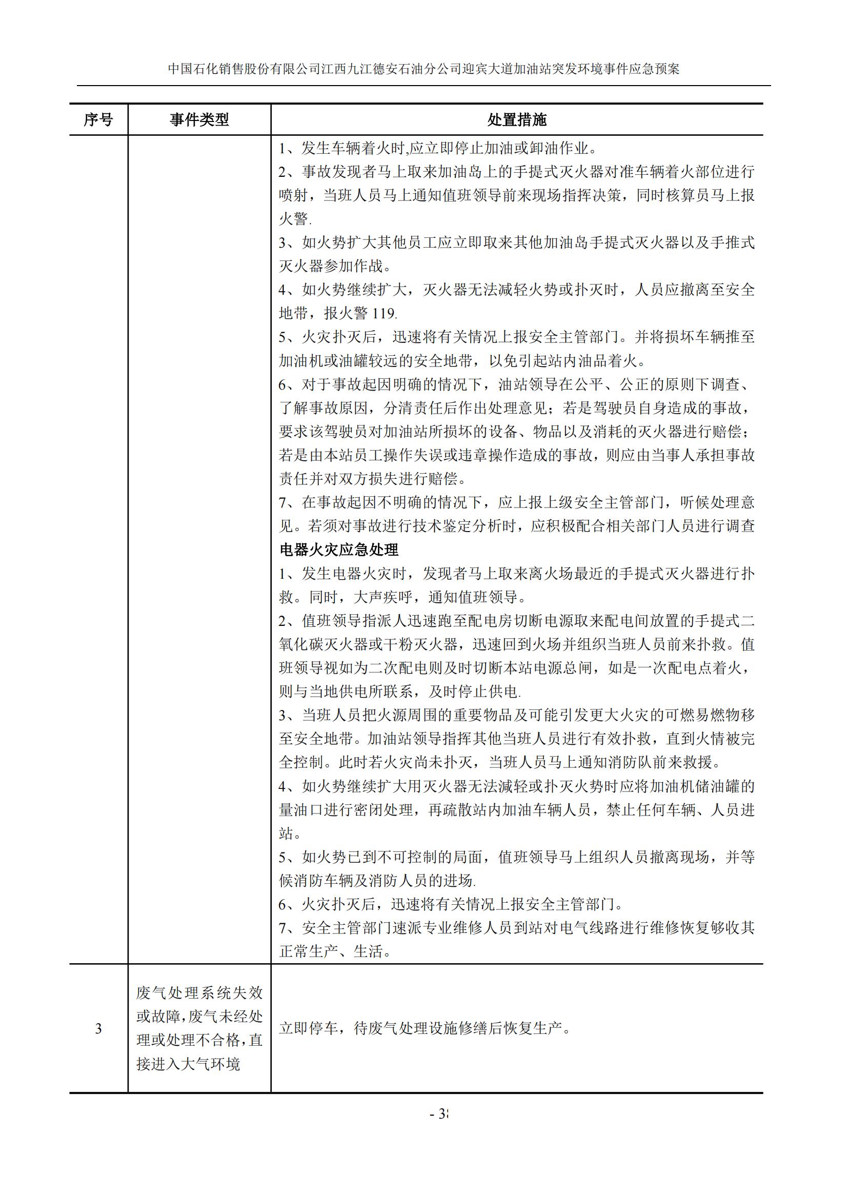 中国石化销售股份有限公司江西九江德安石油分公司迎宾大道加油站突发环境事件应急预案