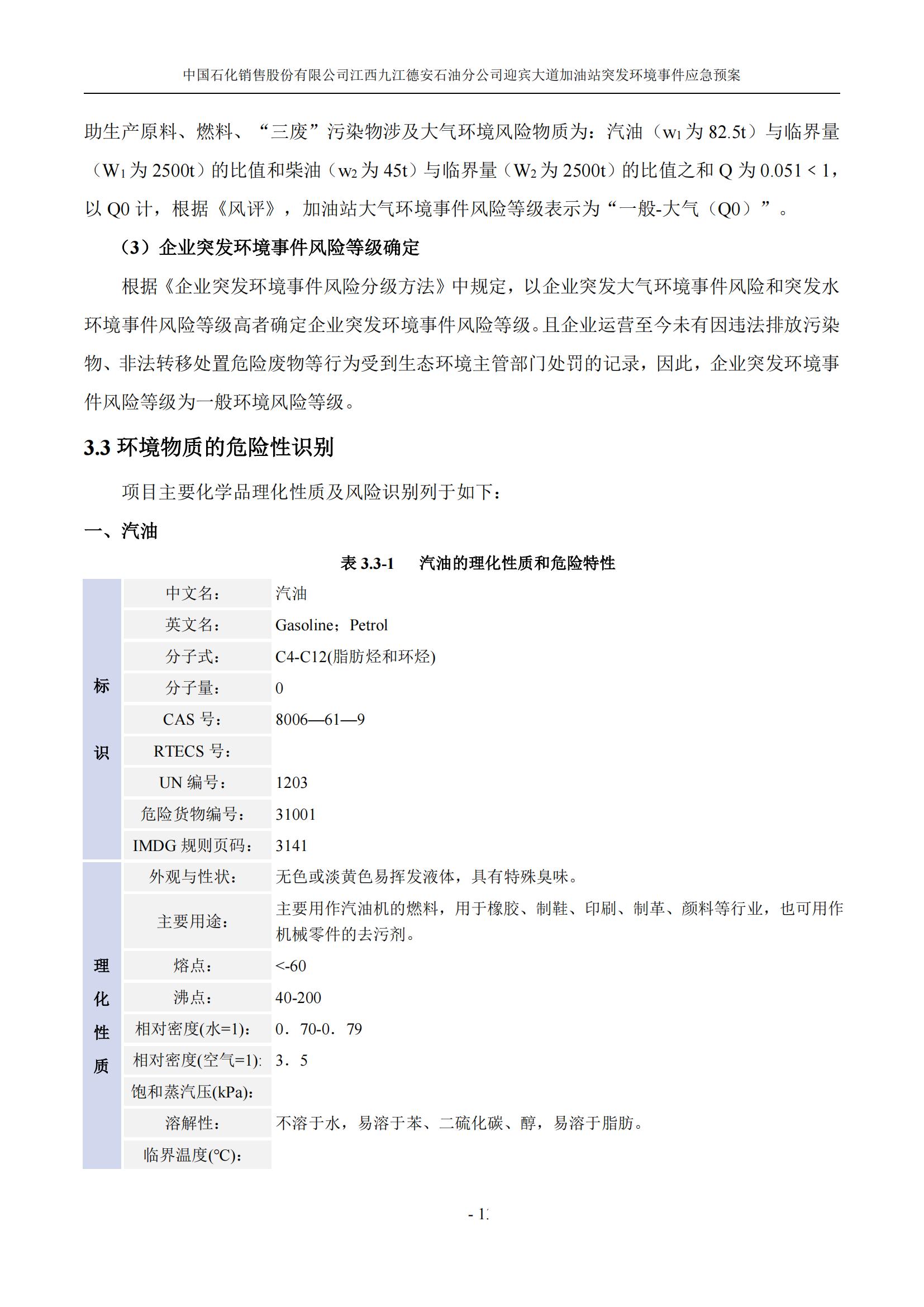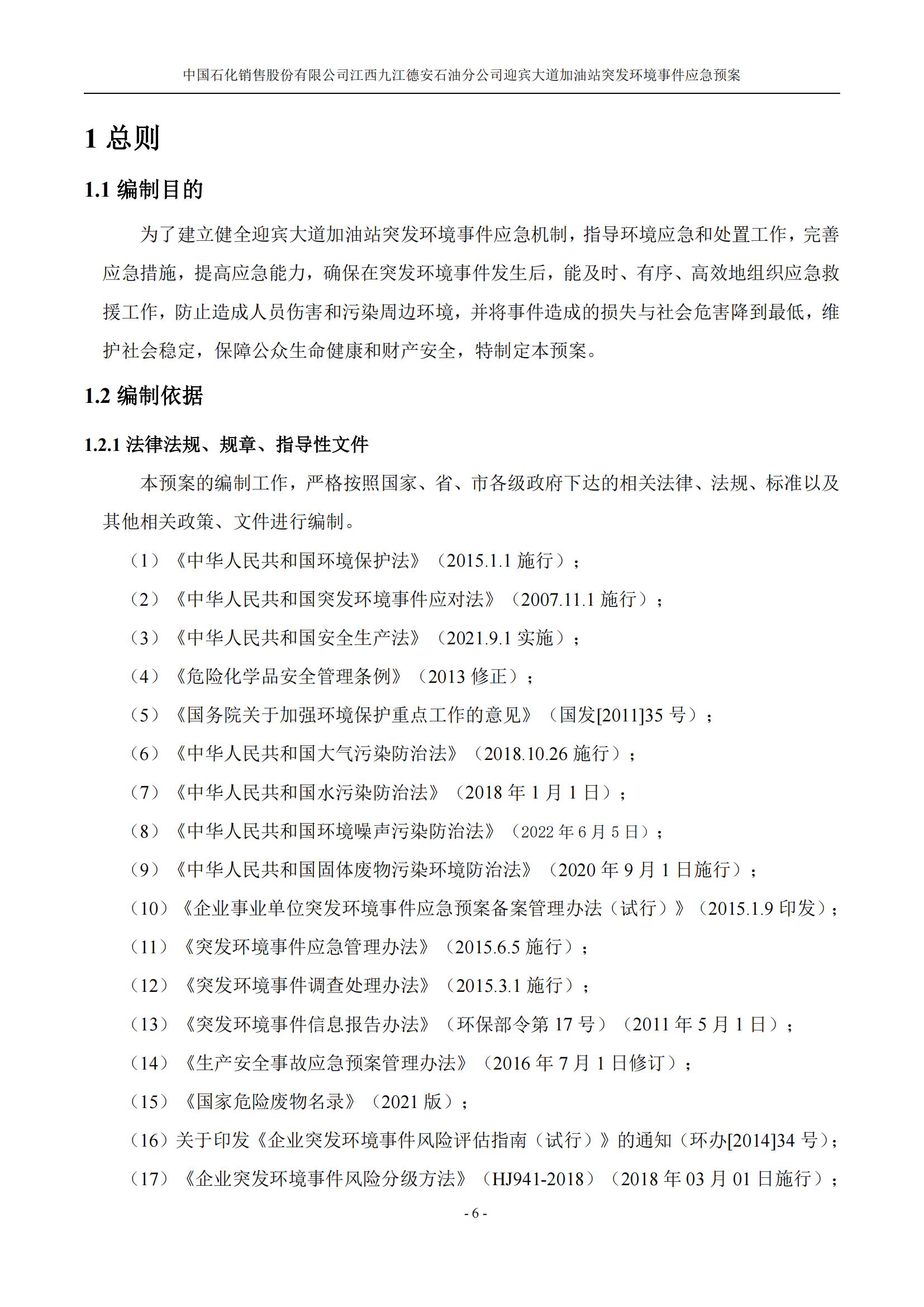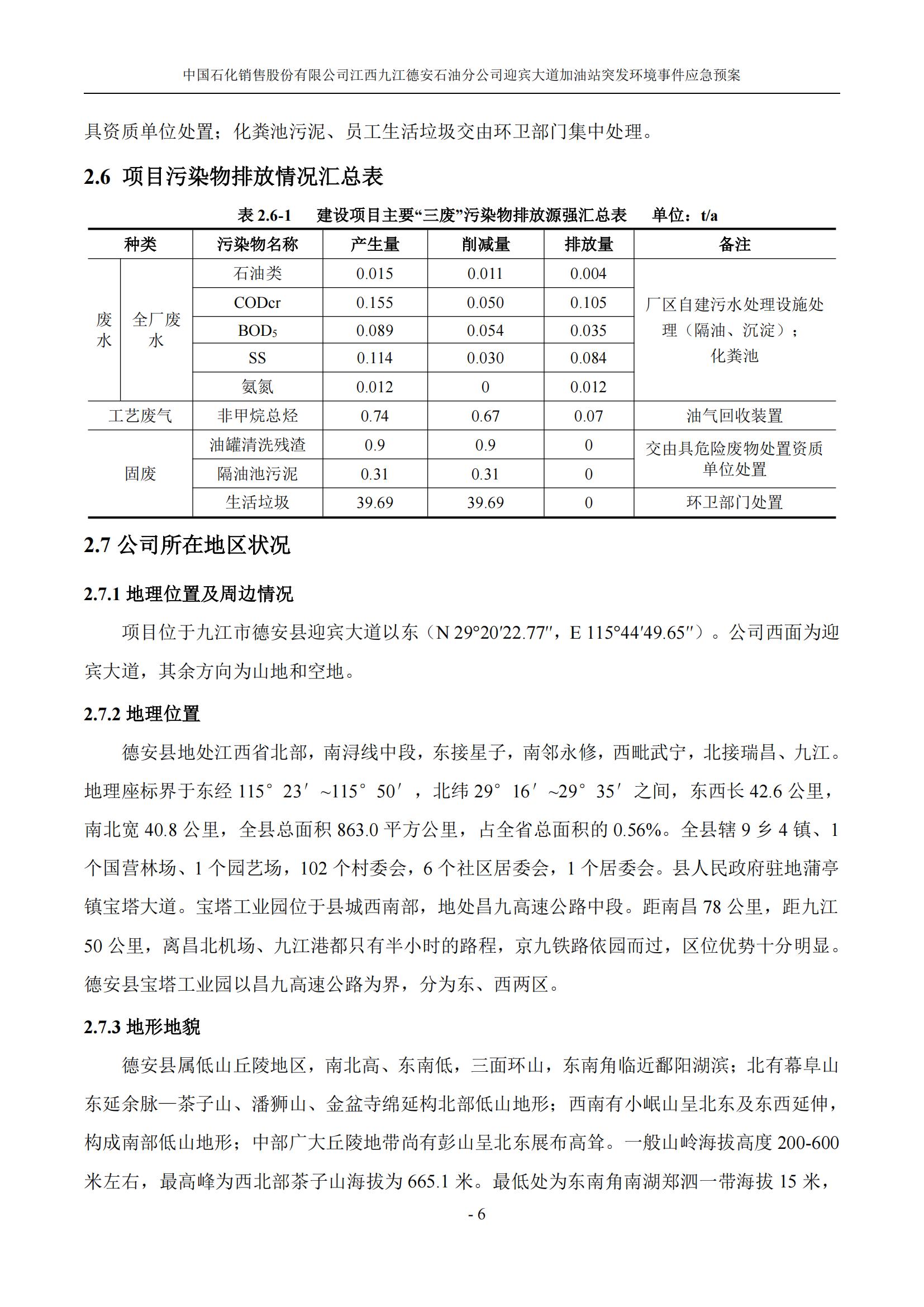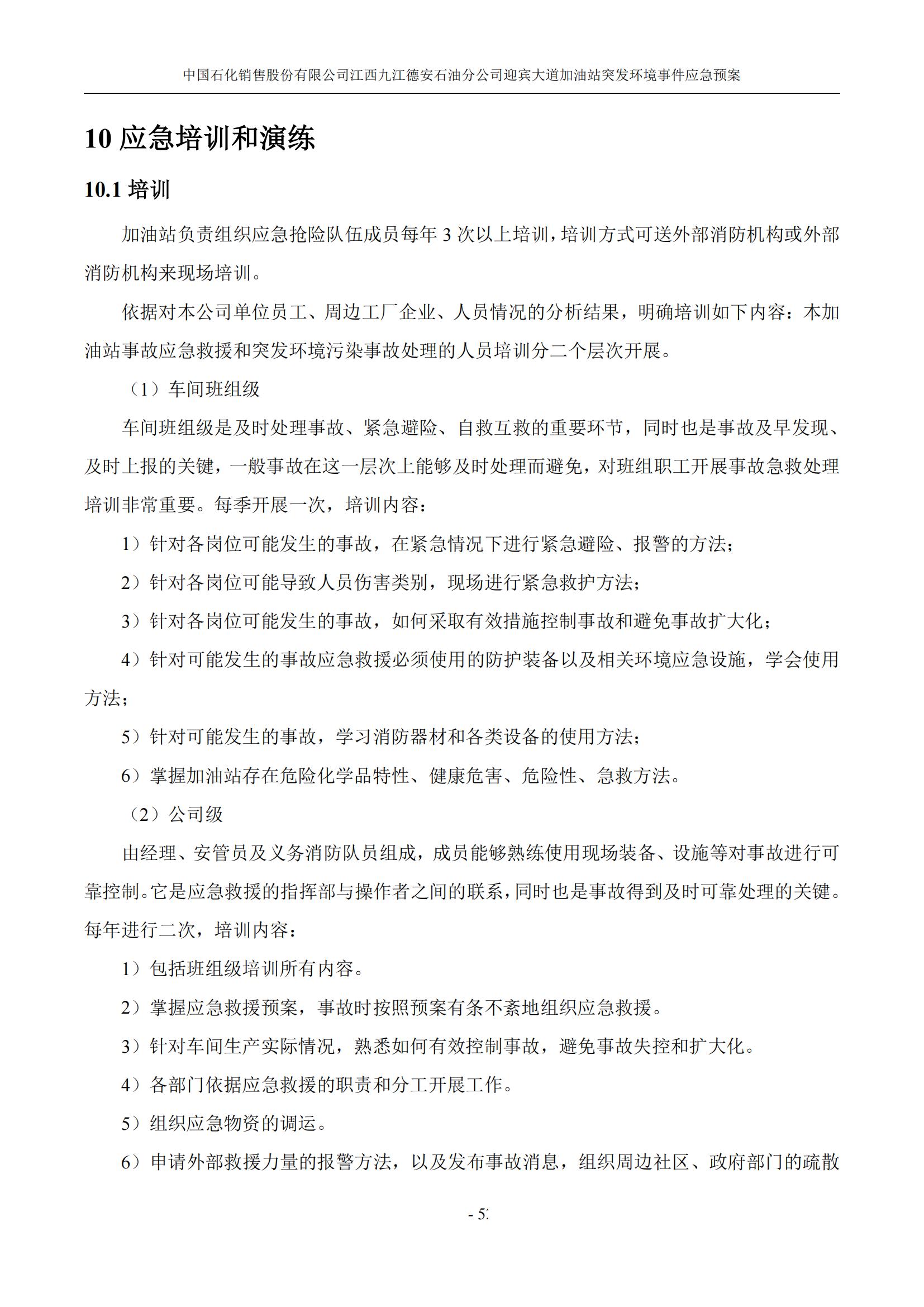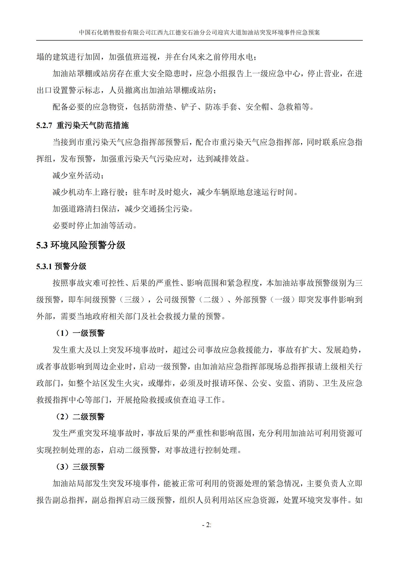中国石化销售股份有限公司江西九江德安石油分公司迎宾大道加油站突发环境事件应急预案
