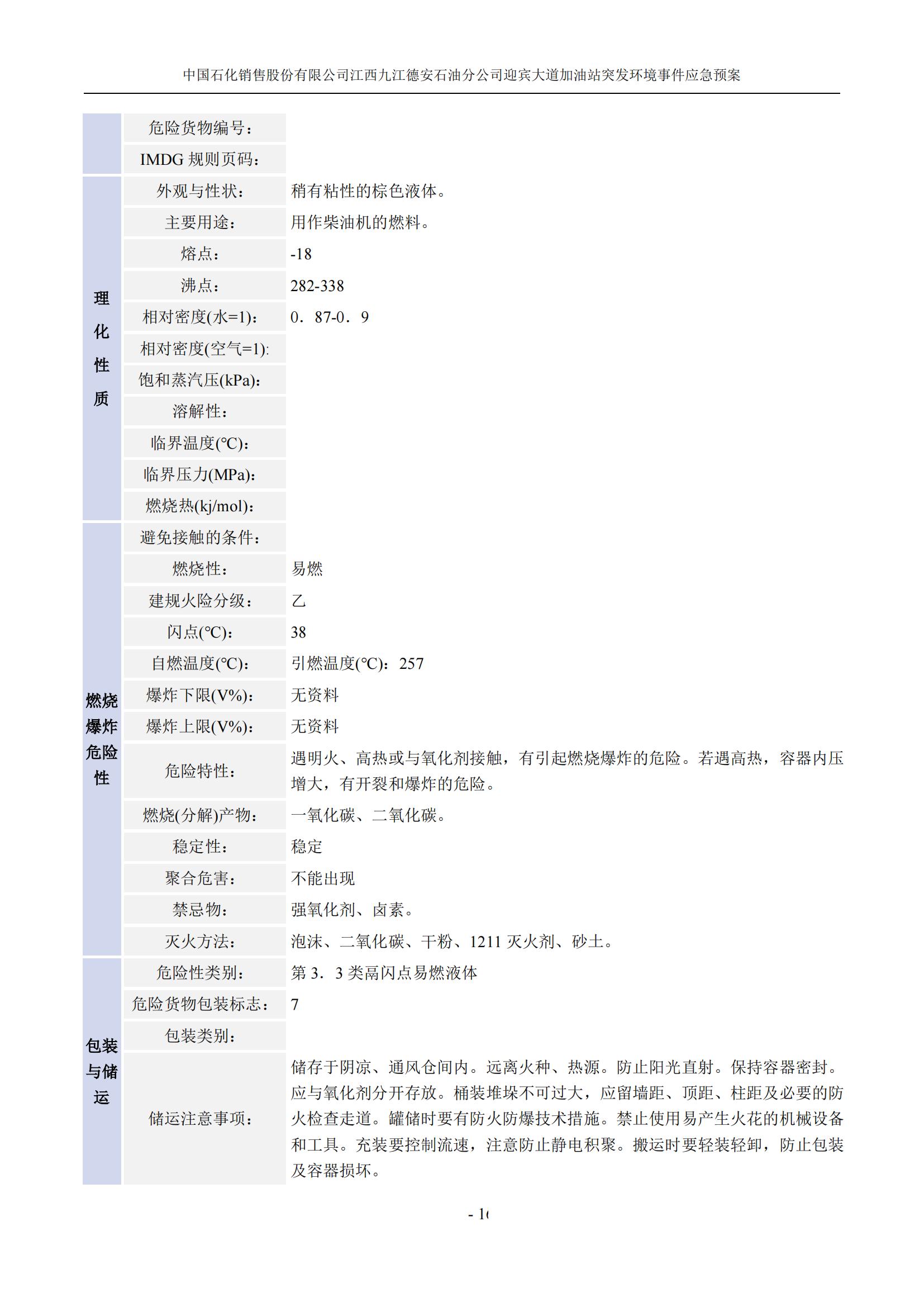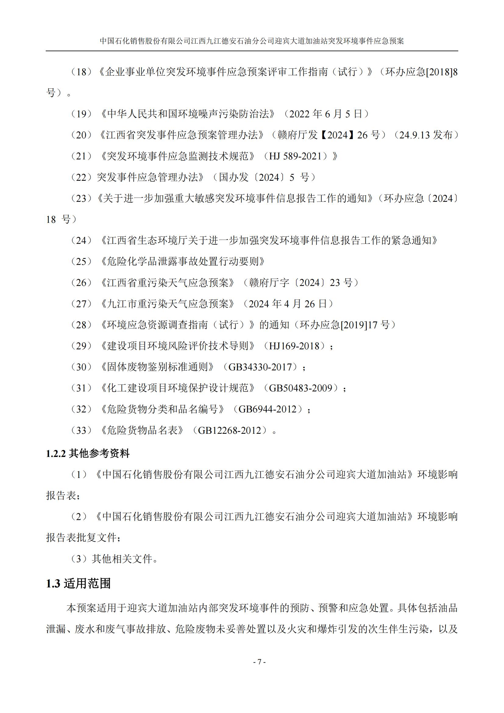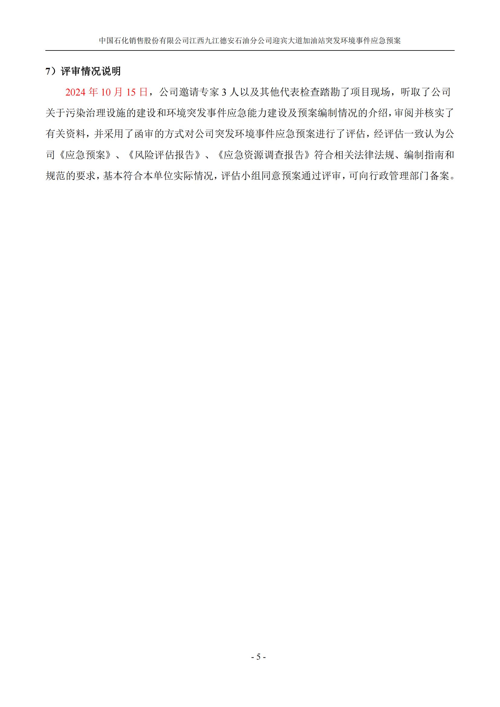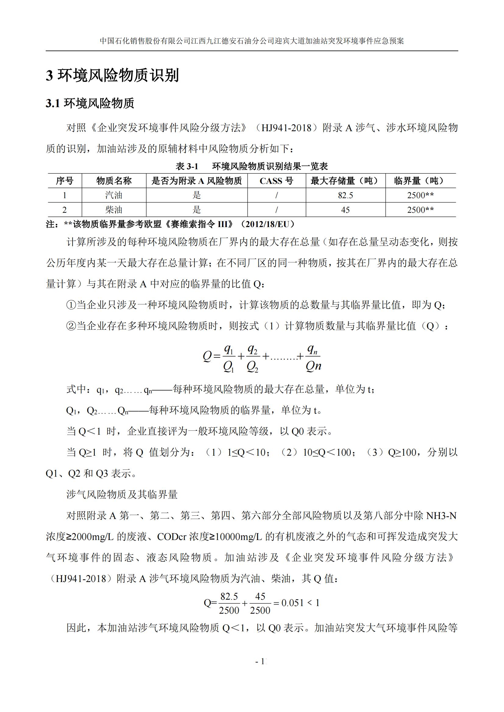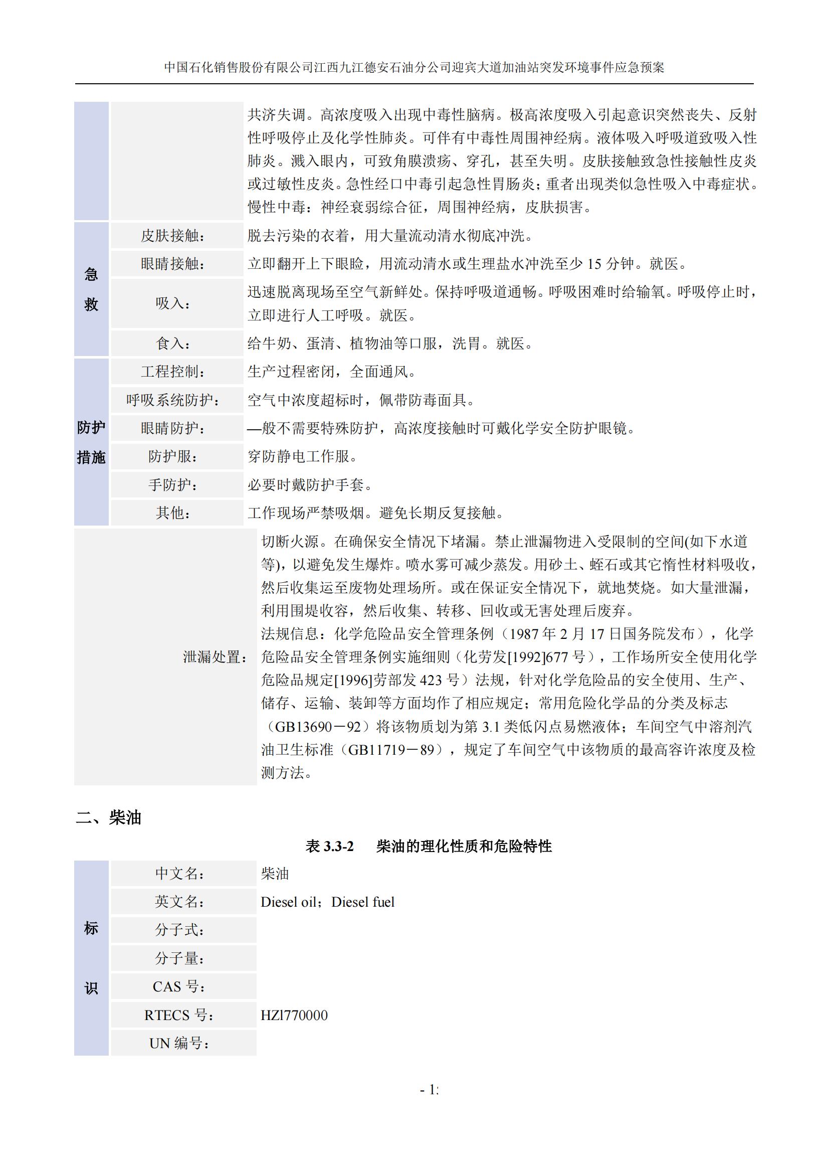 中国石化销售股份有限公司江西九江德安石油分公司迎宾大道加油站突发环境事件应急预案