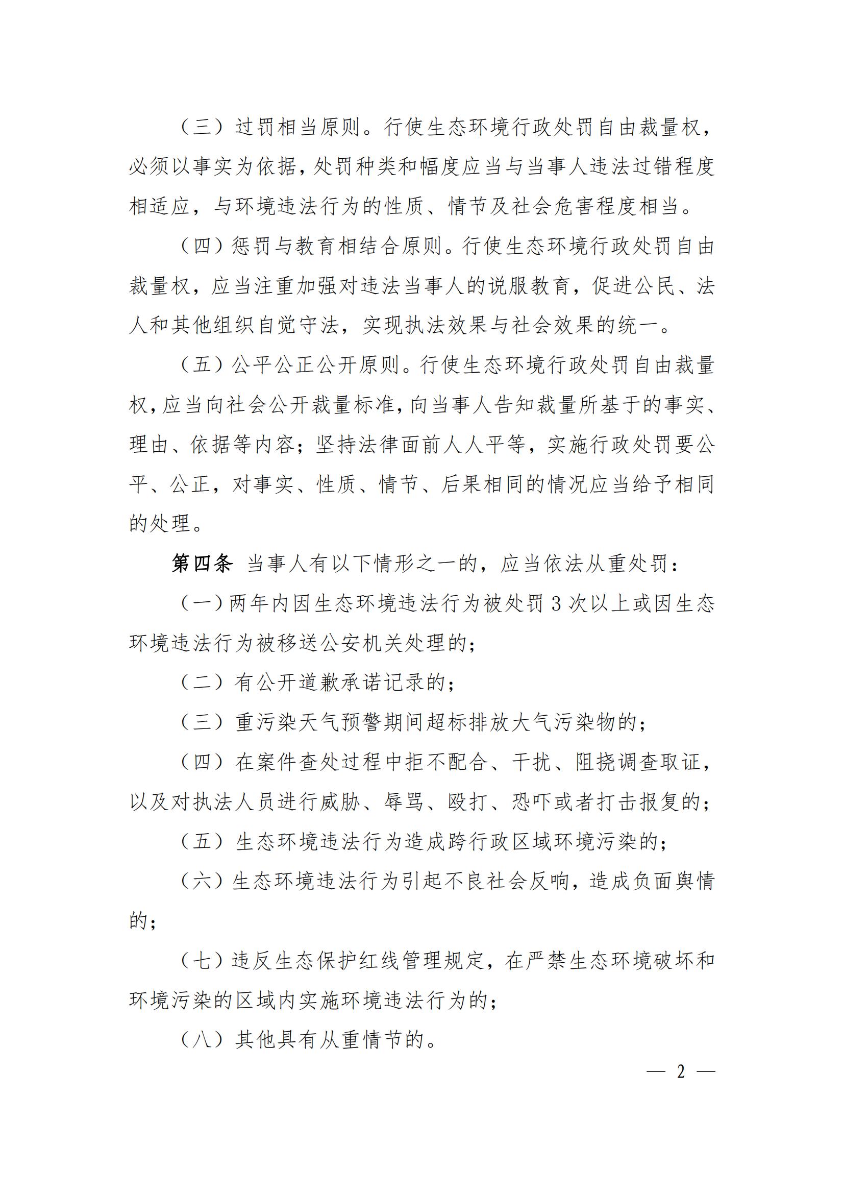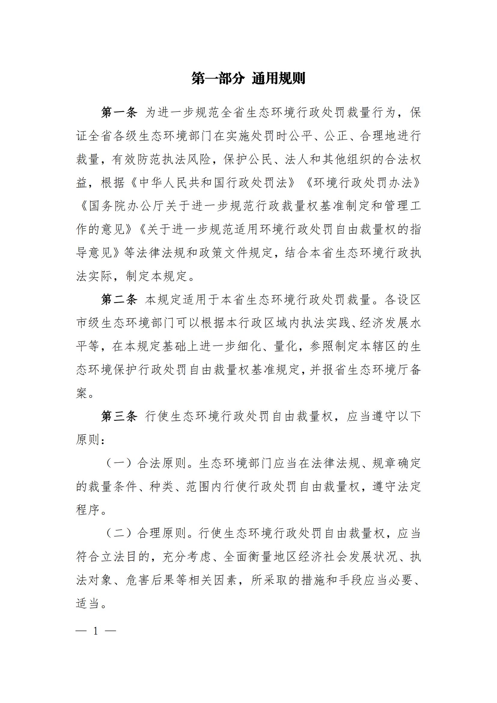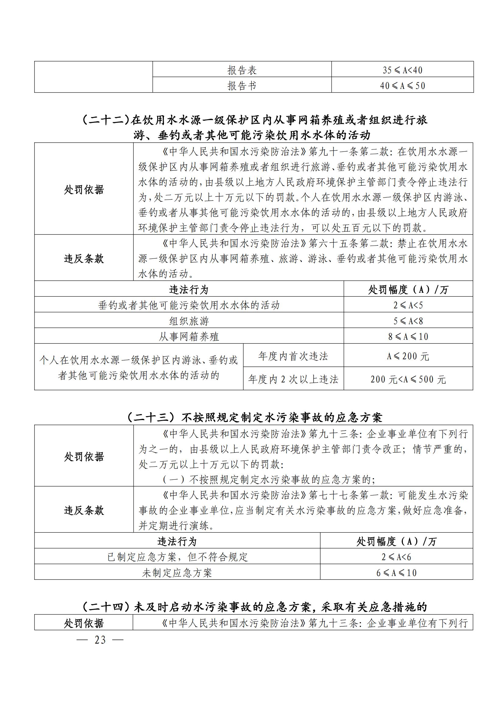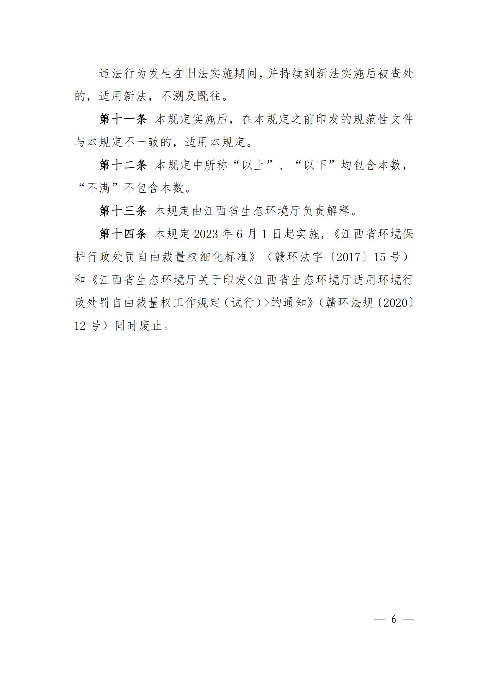 江西省生态环境行政处罚自由裁量权基准规定(2023)