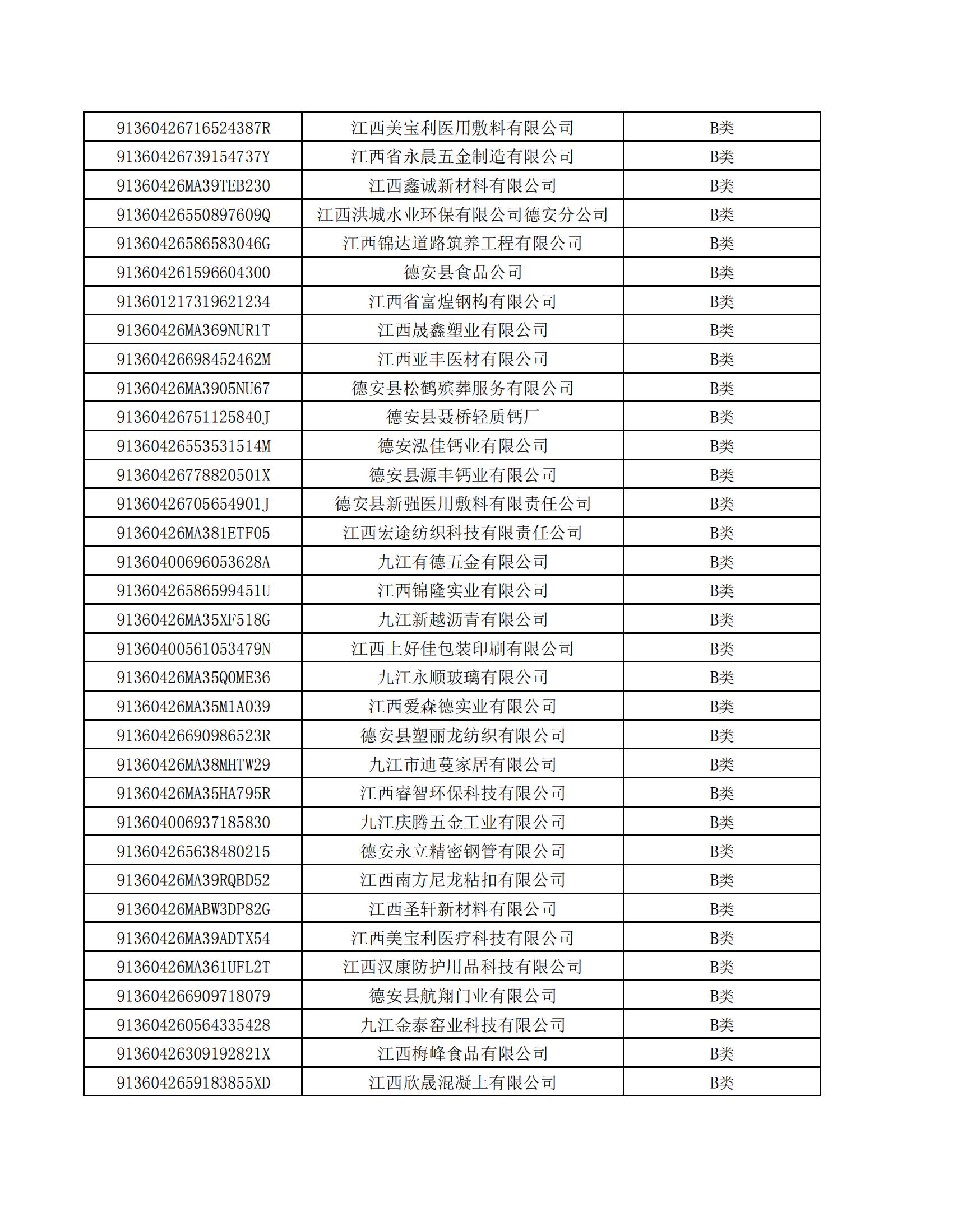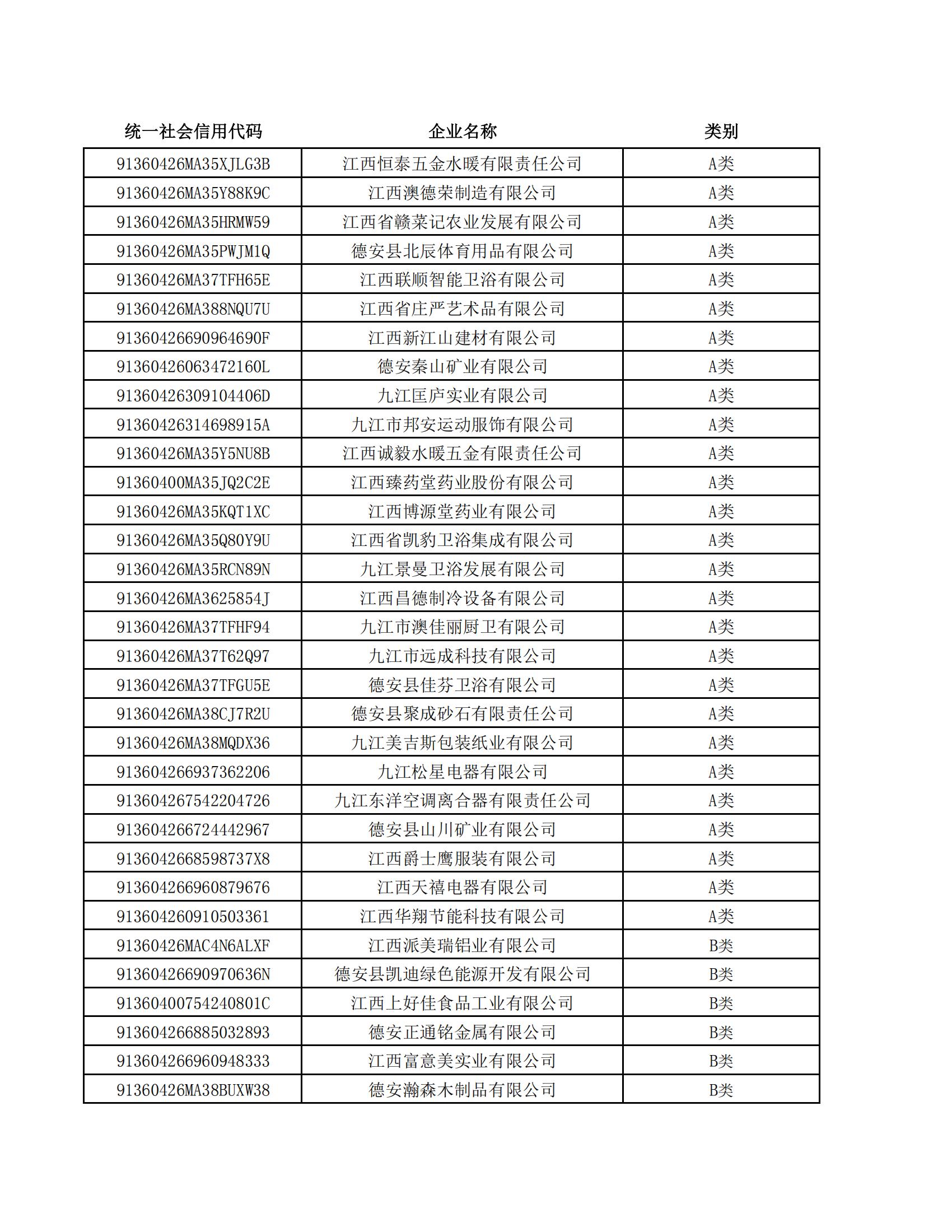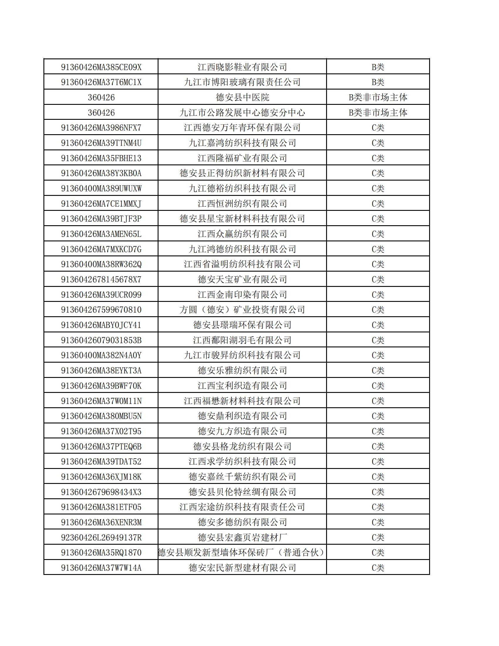 九江市德安生态环境局2025年生态环境保护分类监管企业名录