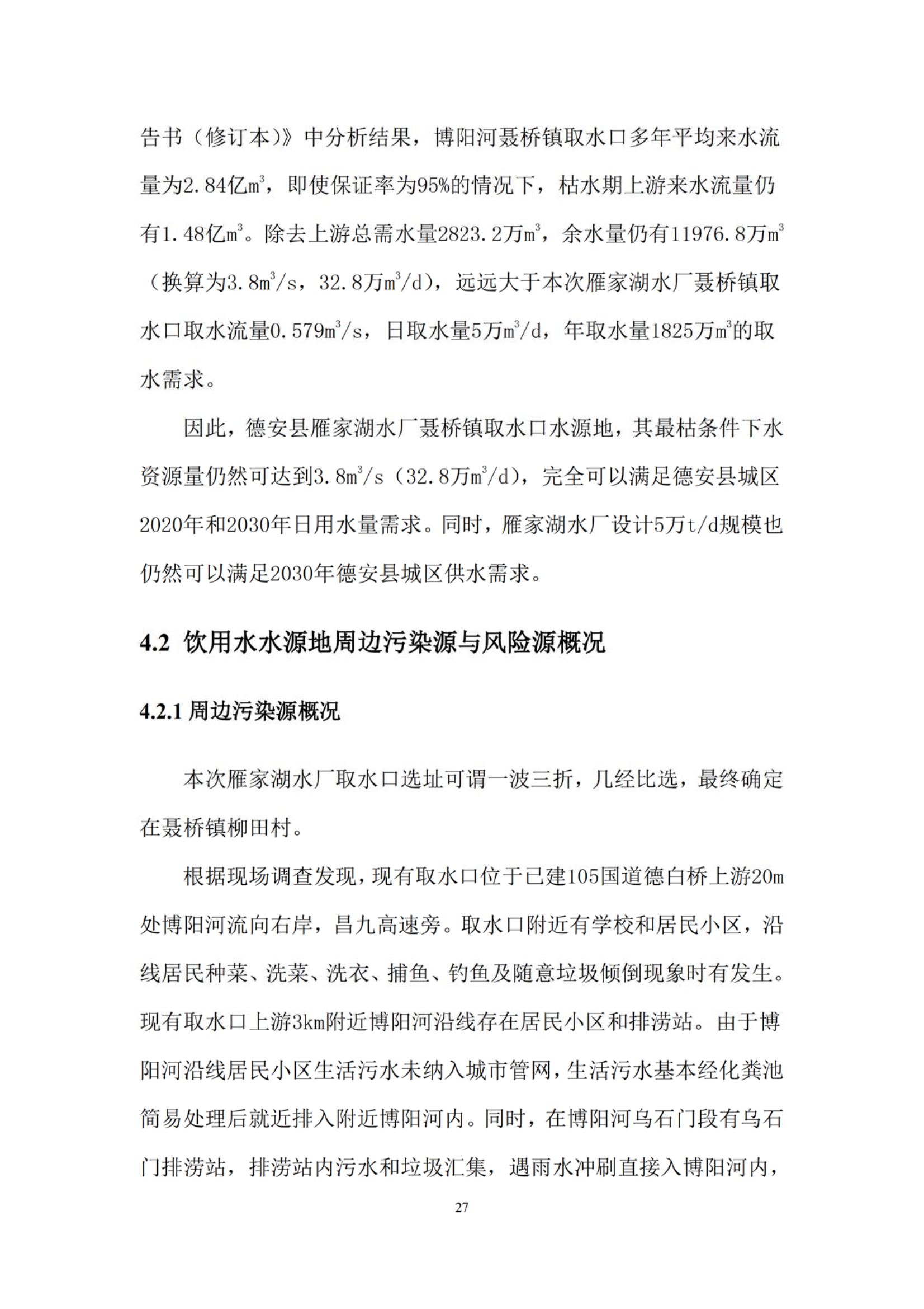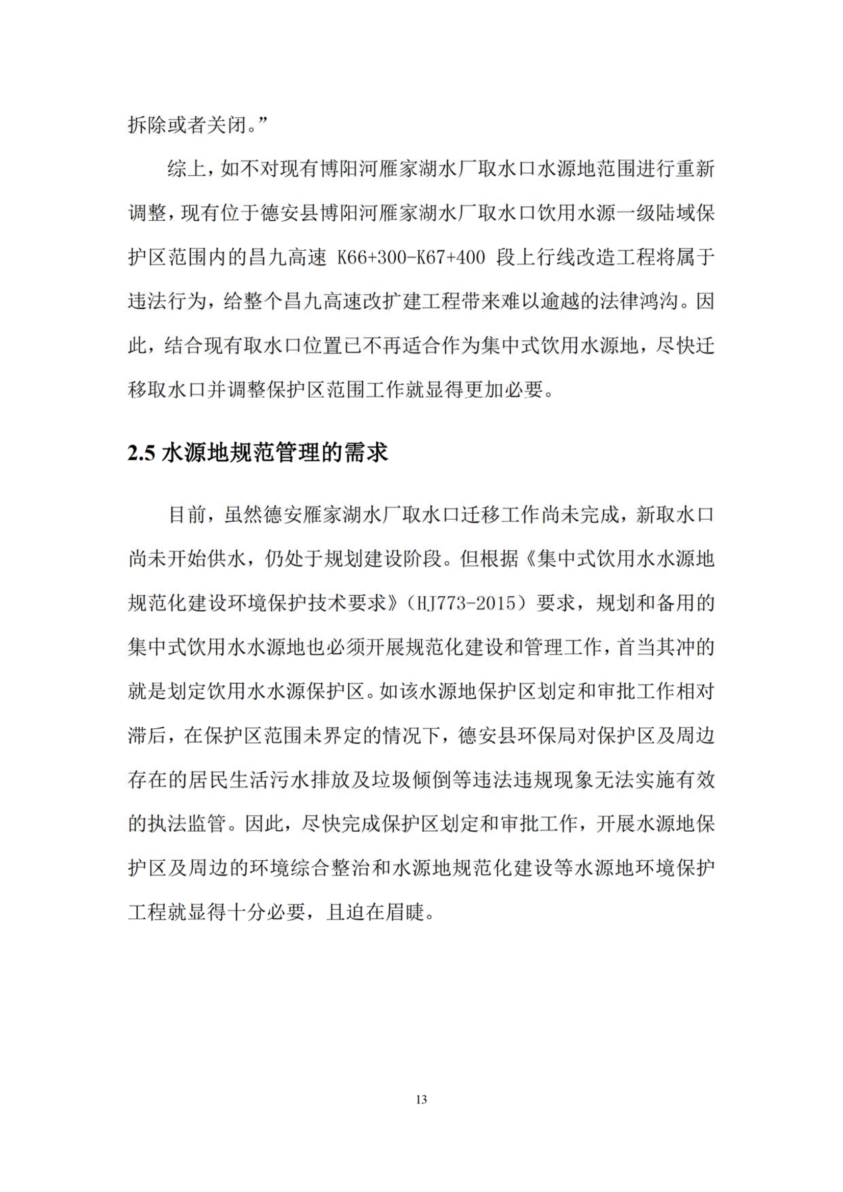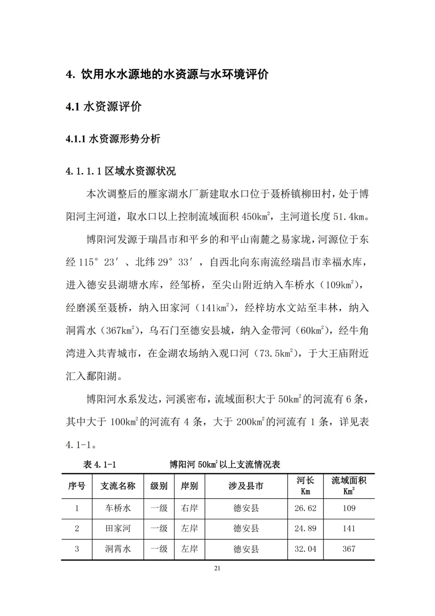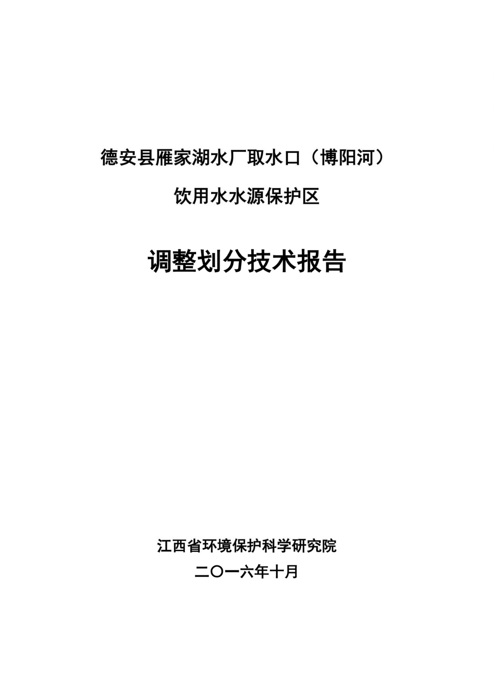 德安县雁家湖取水口(博阳河)饮用水水源保护区调整划分技术报告