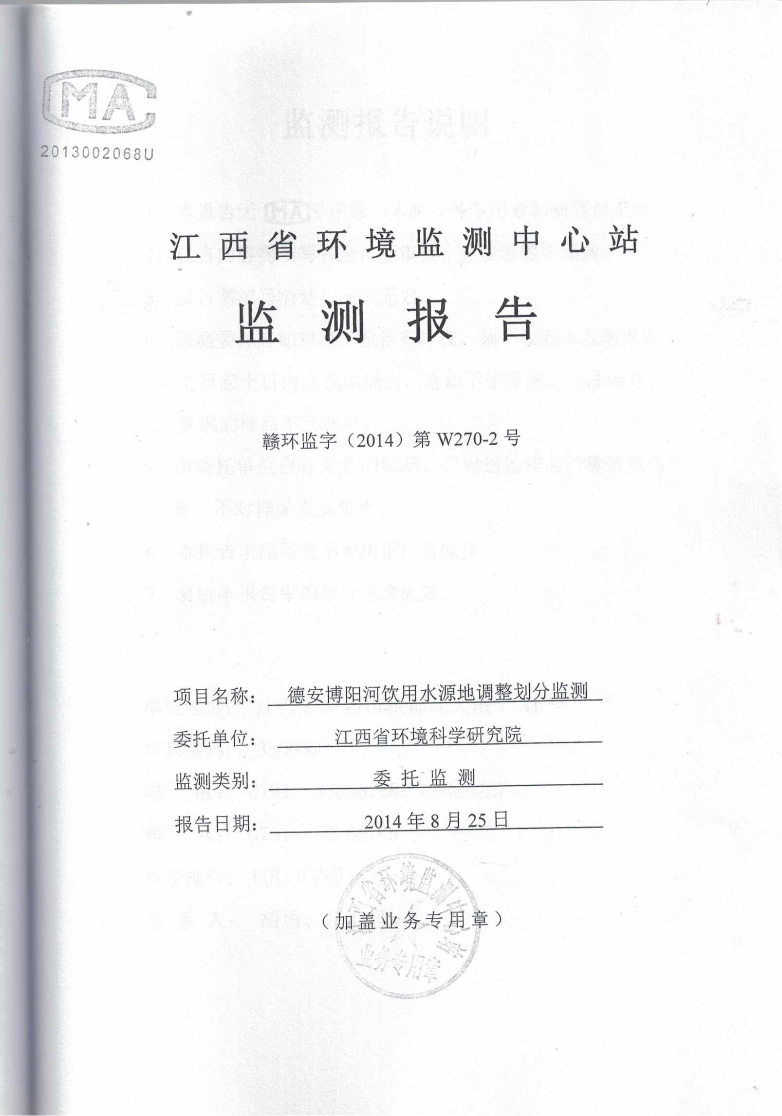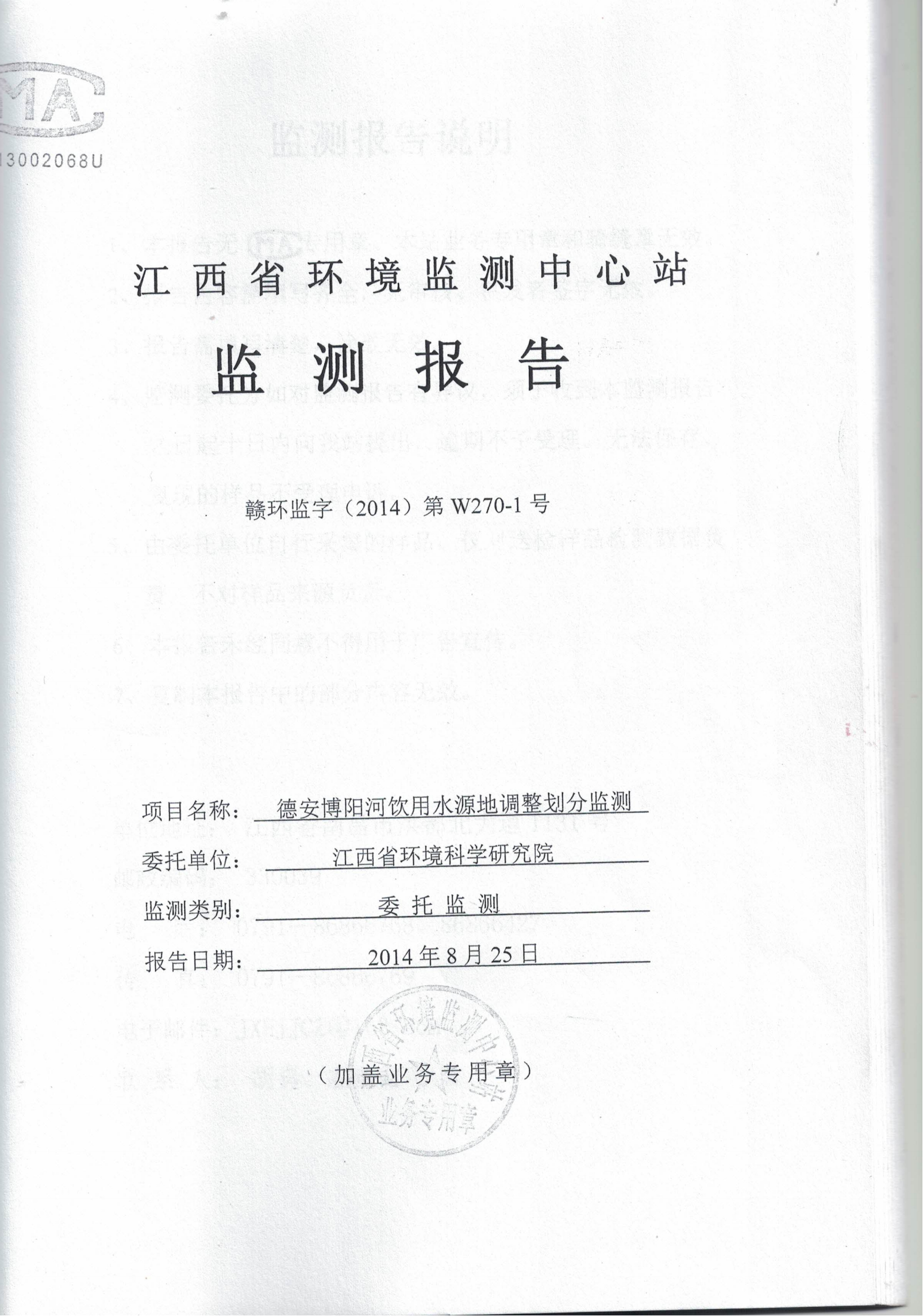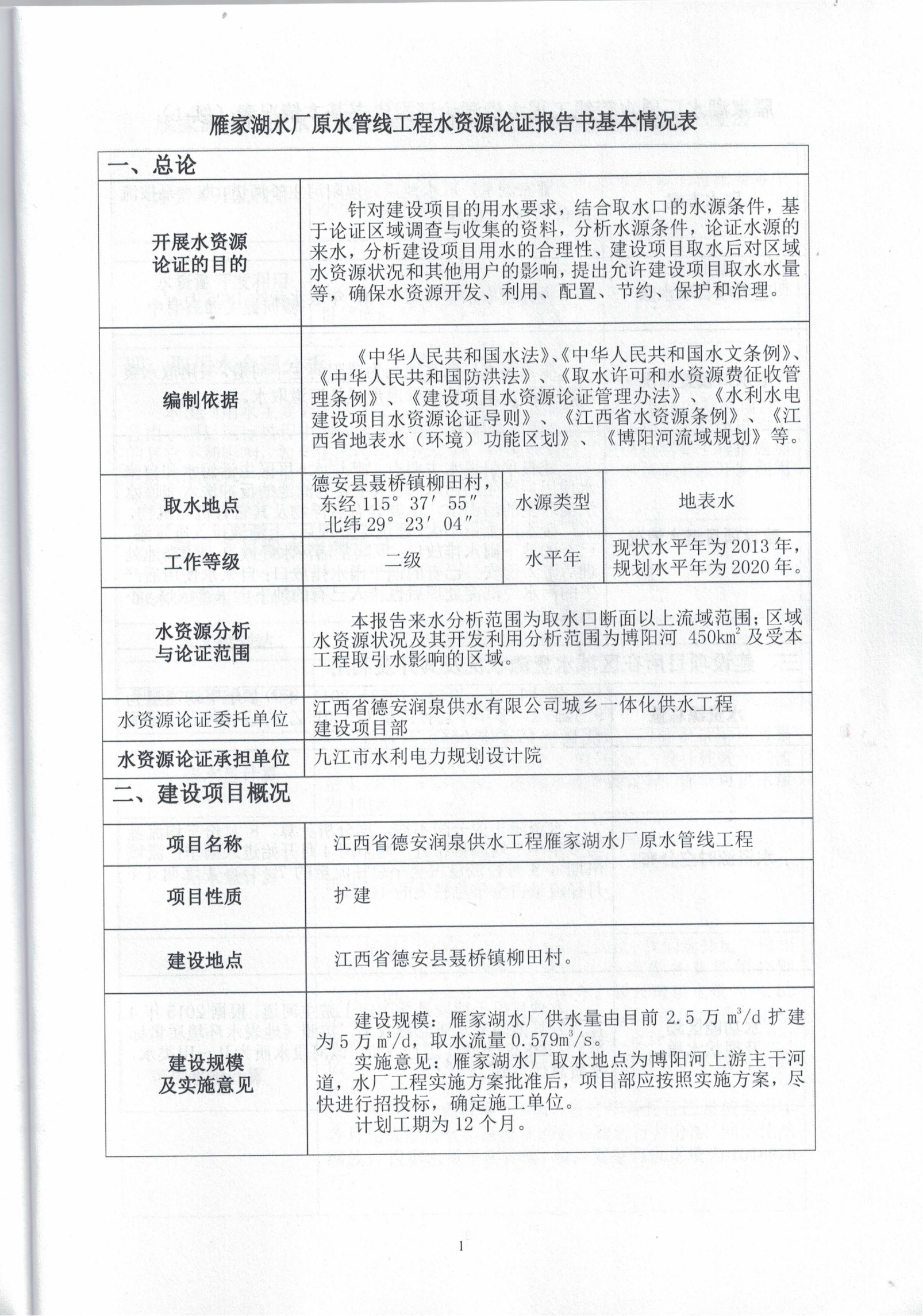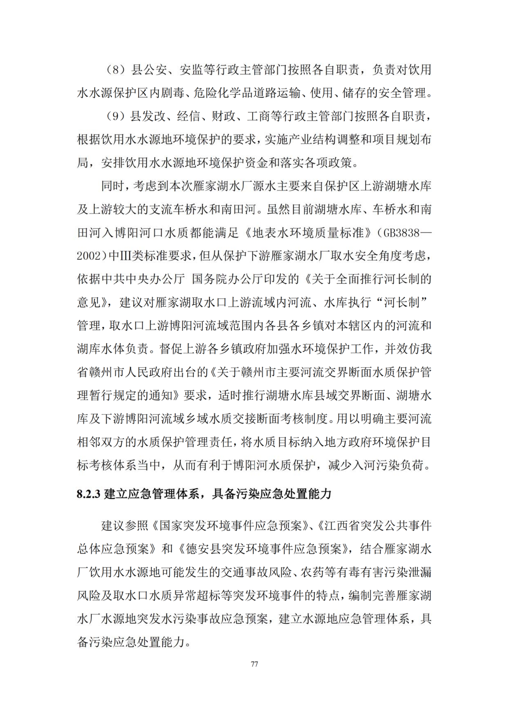 德安县雁家湖取水口(博阳河)饮用水水源保护区调整划分技术报告