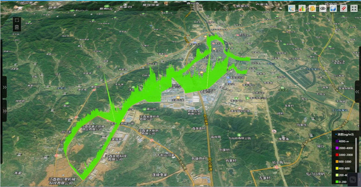10月10日,晴转多云,偏东北风2-3级,走航区域主要为德安县区,具体走航路线如下图所示。