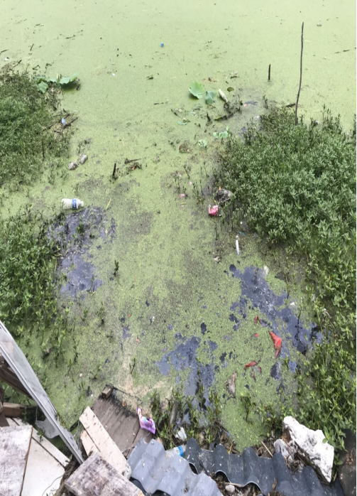 2、对池塘内漂浮物进行打捞,清理周边垃圾;