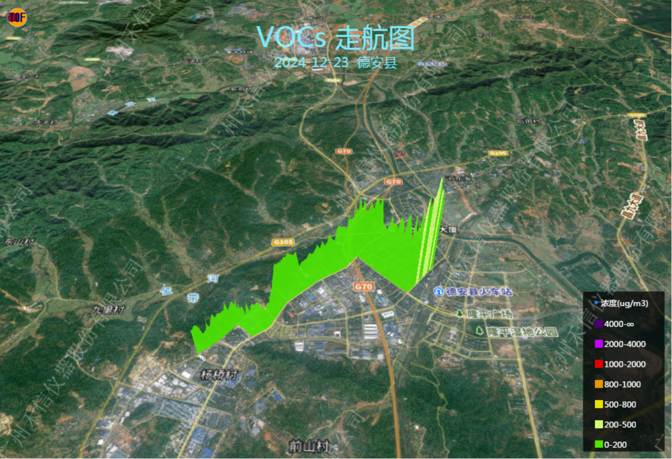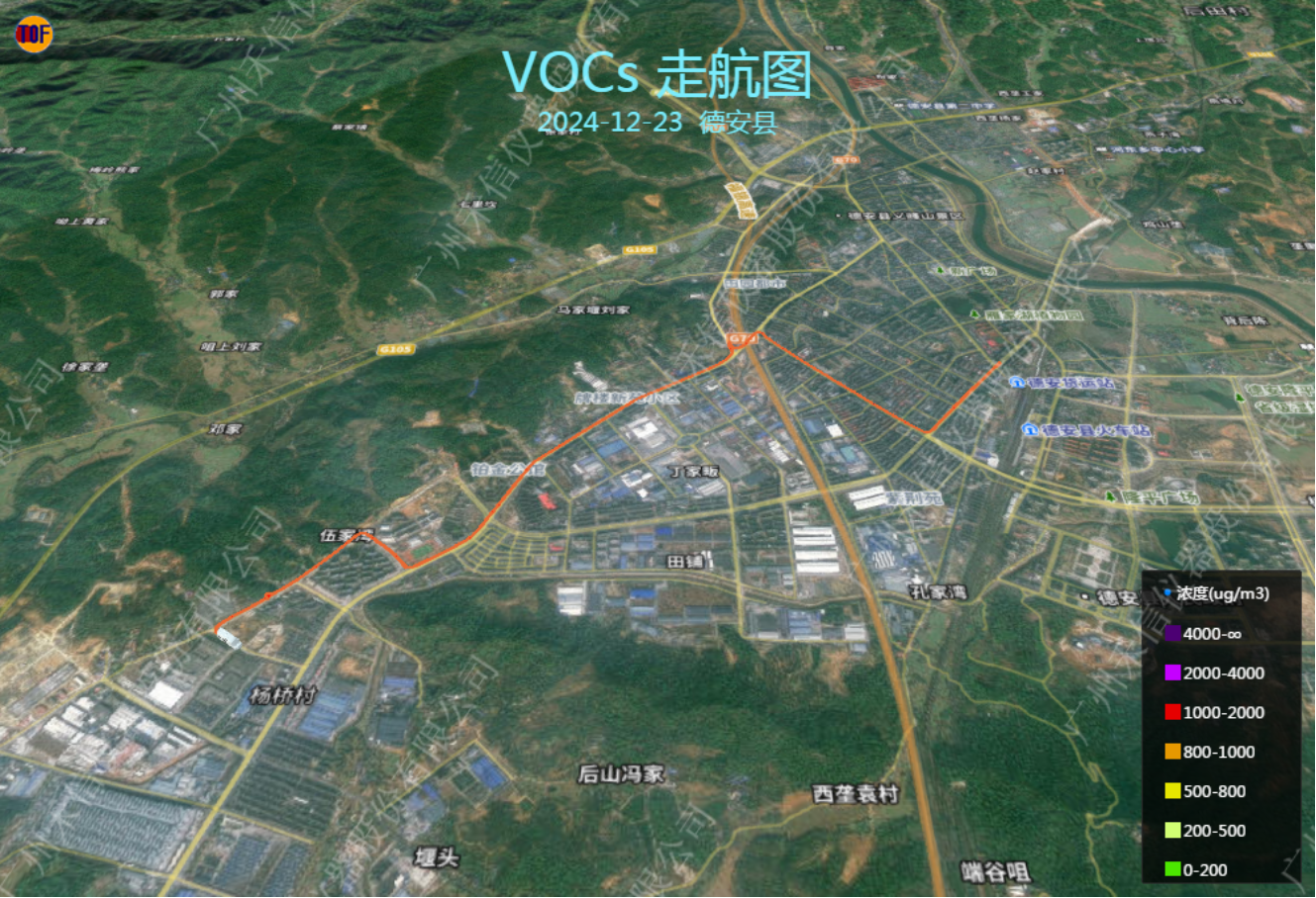 12月23日上午,偏北风2级,本次走航区域主要为德安县第二幼儿园附近及其临近的部分企业,具体走航路线如下图所示。