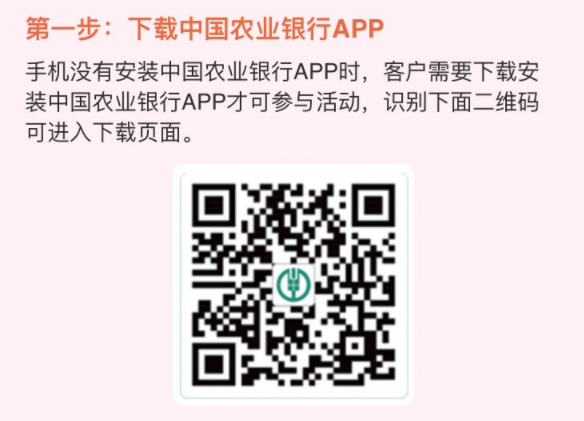 活动采用报名中签形式,消费者通过农行掌银APP报名,报名成功后,由系统随机抽取中签名单。每个消费者每个面值消费券可中签1次。中签面值消费券有20元消费券、50元消费券、100元消费券三种。