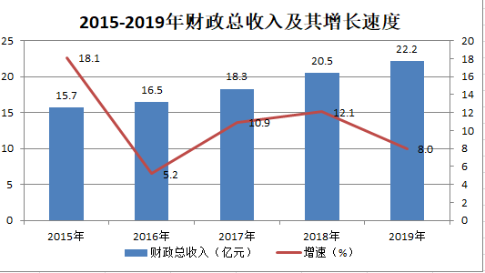 全年实现财政总收入22.2亿元,比上年增长8.0%,其中:完成地方财政收入13.7亿元,比上年增长5.8%;人均财政总收入12592元;财政收入占GDP的比重15.5%,比上年下降0.6个百分点;税收收入19.4亿元,占财政收入比重87.4%,比上年提高1个百分点。全年财政总支出29.4亿元,比上年增长14.1%。