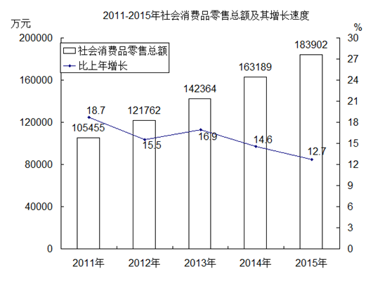 全年全县实现社会消费品零售总额18.39亿元,增长12.7%,其中限额以上企业(单位)实现消费品零售额6.41亿元。分城乡看,城镇实现零售额12.01亿元,增长12.3%;乡村实现零售额6.38亿元,增长13.5%。