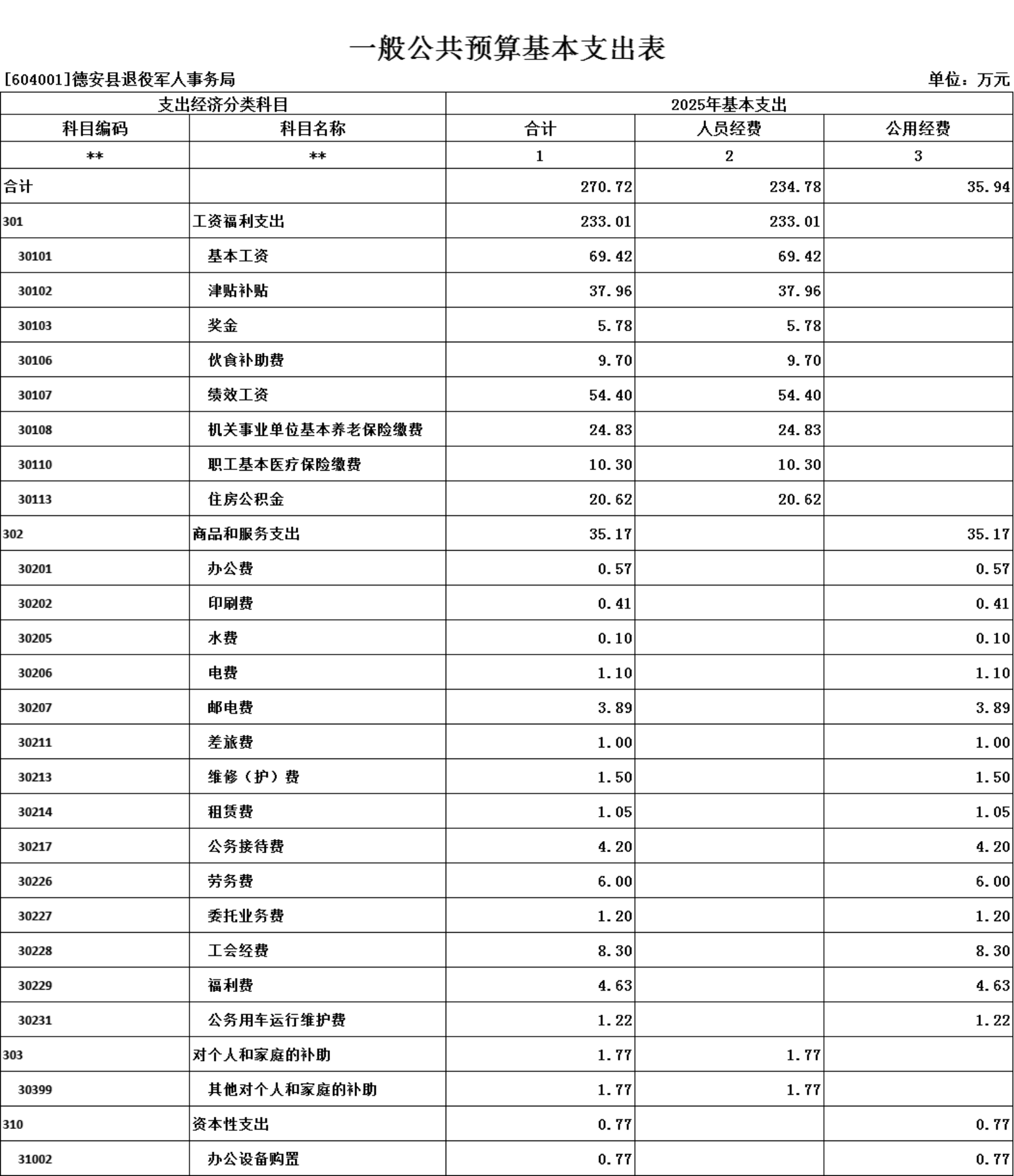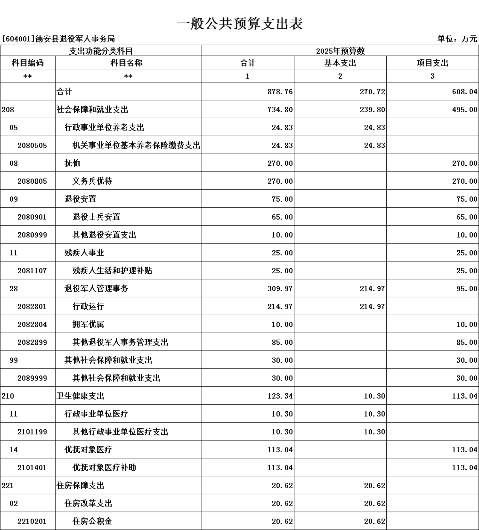 第三部分德安县退役军人事务局2025年部门预算情况说明