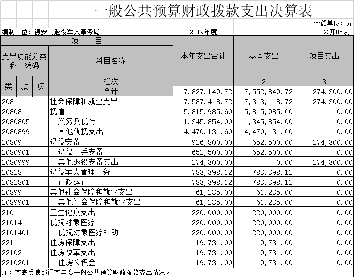 (三)住房保障支出1.97万元,由于德安县退役军人事务局2019年1月成立,无法与上年做对比。