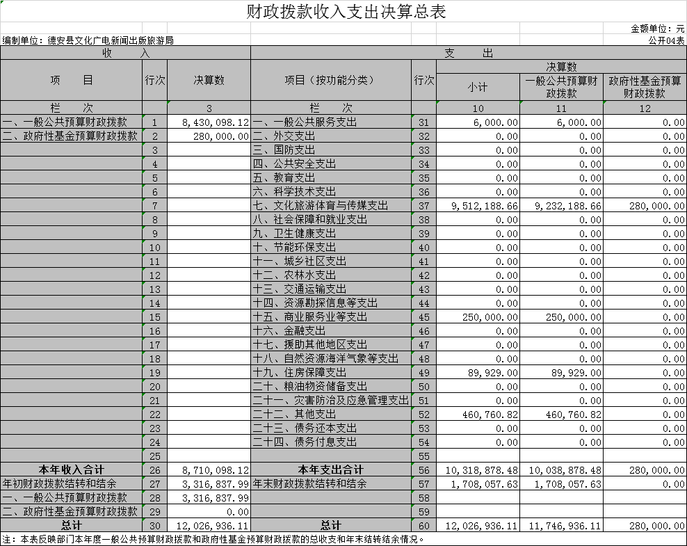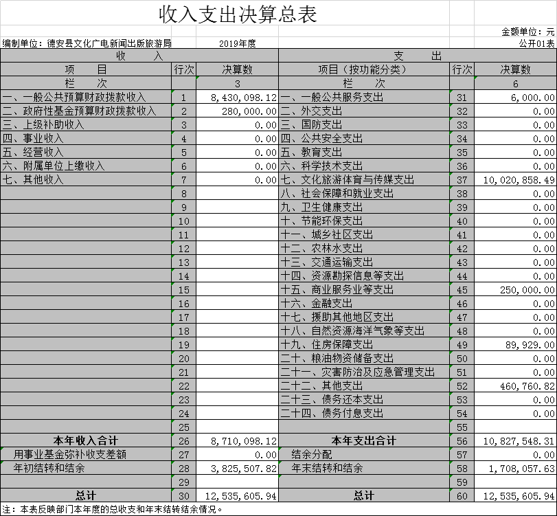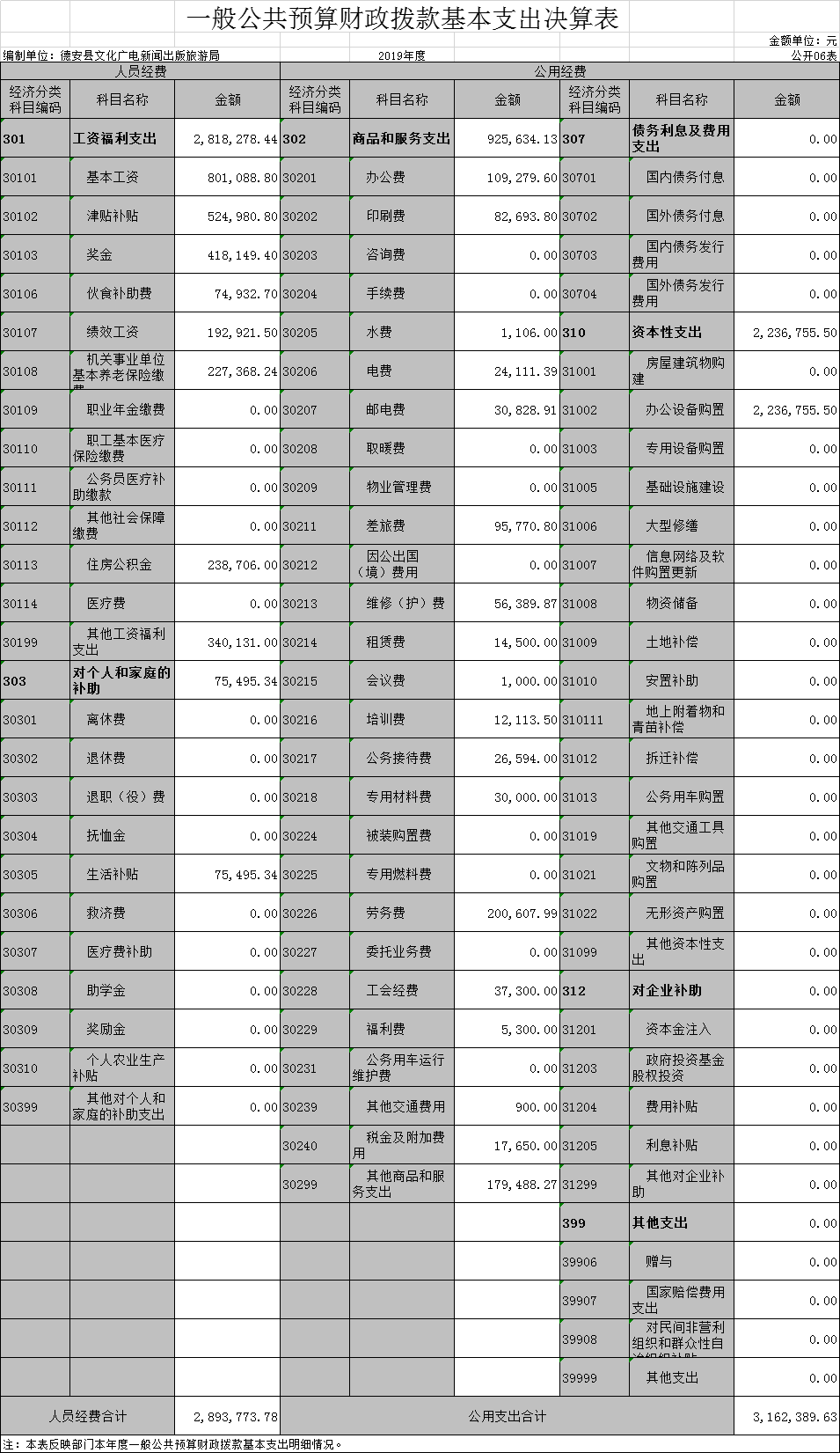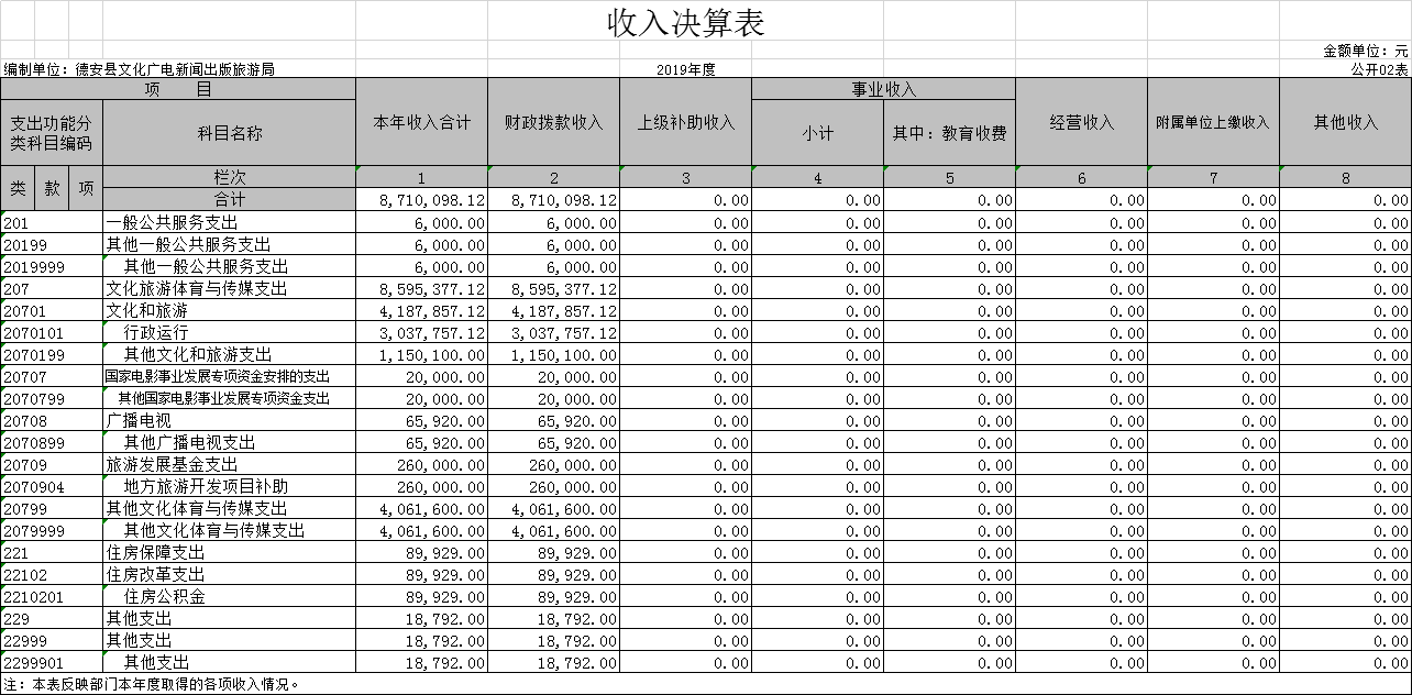 德安县文化广电新闻出版旅游局2019年度部门决算