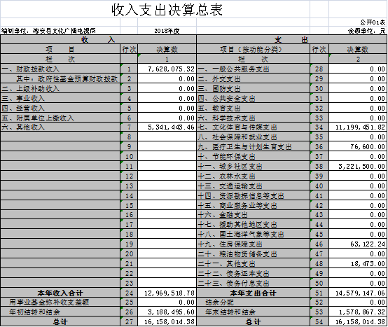 本部门2018年度收入总计1615.8万元,其中年初结转和结余 318.85 万元,较2017年增加318.85万元,本年收入合计1296.95万元,较2017年增加335.02万元,增长25.83 %,主要原因是:创建国家第三批公共文化服务体系示范区上级专项资金增加,投入更多城乡社区公共设施支出增加和地方政策性收入增加。