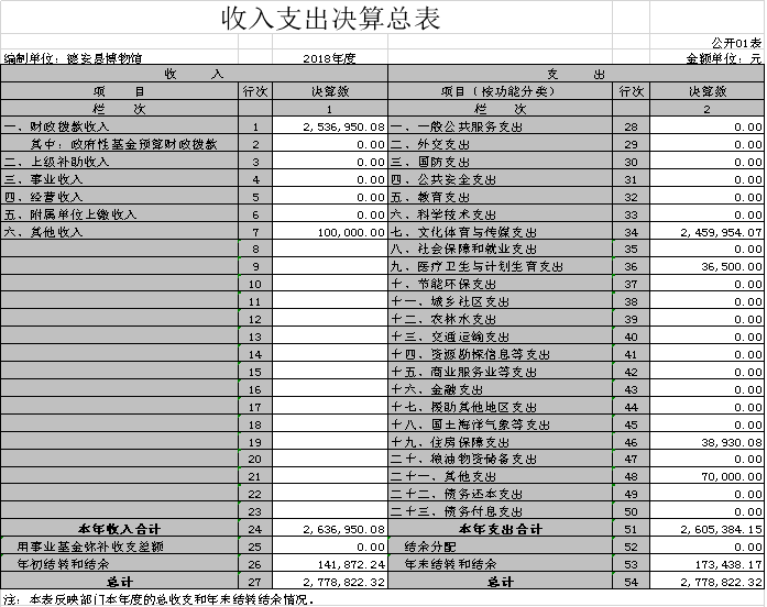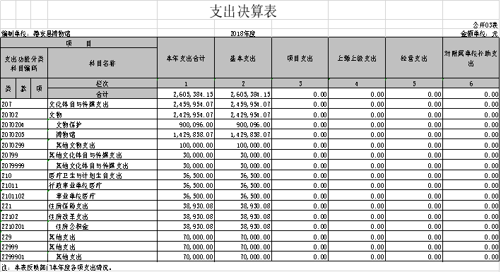 本部门2018年度支出总计260.54万元,其中本年支出合计260.54万元,较2017年增加102.55万元,增长64.9%,主要原因是:文物保护支出增加;年末结转和结余17.34万元,较2017年增加3.15万元,增长22 %,主要原因是:经费结余。