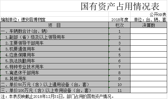 截止2018年12月31日,本部门共有车辆0辆,其中,副部(省)级及以上领导用车0辆、主要领导干部用车0辆、机要通信用车0辆、应急保障用车0辆、执法执勤用车0辆、特种专业技术用车0辆、其他用车0辆,其他用车主要是……;单位价值50万元以上通用设备0台(套);单位价值100万元以上专用设备0台(套)。