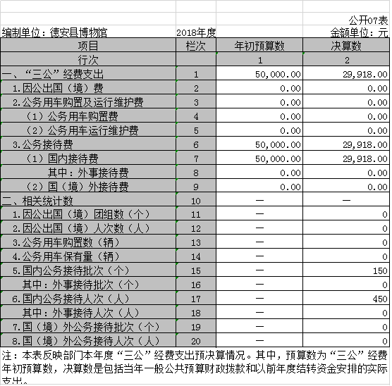 (三)“三公经费”:反映财政拨款安排的因公出国(境)费、公务用车购置及运行费和公务接待费。其中:因公出国(境)费反映单位公务出国(境)的国际旅费、国外城市间交通费、住宿费、伙食费、培训费、公杂费等支出;公务用车购置及运行费反映单位公务用车车辆购置支出(含车辆购置税)及租用费、燃料费、维修费、过路过桥费、保险费、安全奖励费用等支出;公务接待费反映单位按规定开支的各类公务接待(含外宾接待)支出。