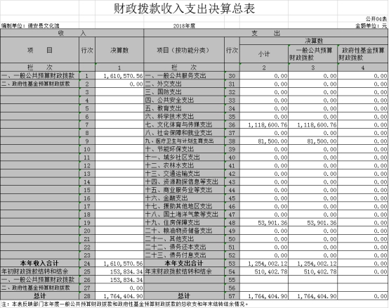 本部门2018年度收入总计161.06万元,其中年初结转和结余 15.38 万元,较2017年增加37.66万元,增加 23.34 %;本年收入合计161.06万元,较2017年增加37.66万元,增加23.34%,主要原因是:文化体育与传媒支出增加。