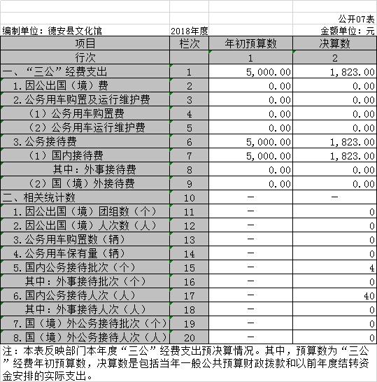本部门2017年度一般公共预算财政拨款“三公”经费支出年初预算数为0.5万元,决算数为 0.18万元,完成预算的20 %,决算数较2017年减少0.32万元,减少64 %,其中: