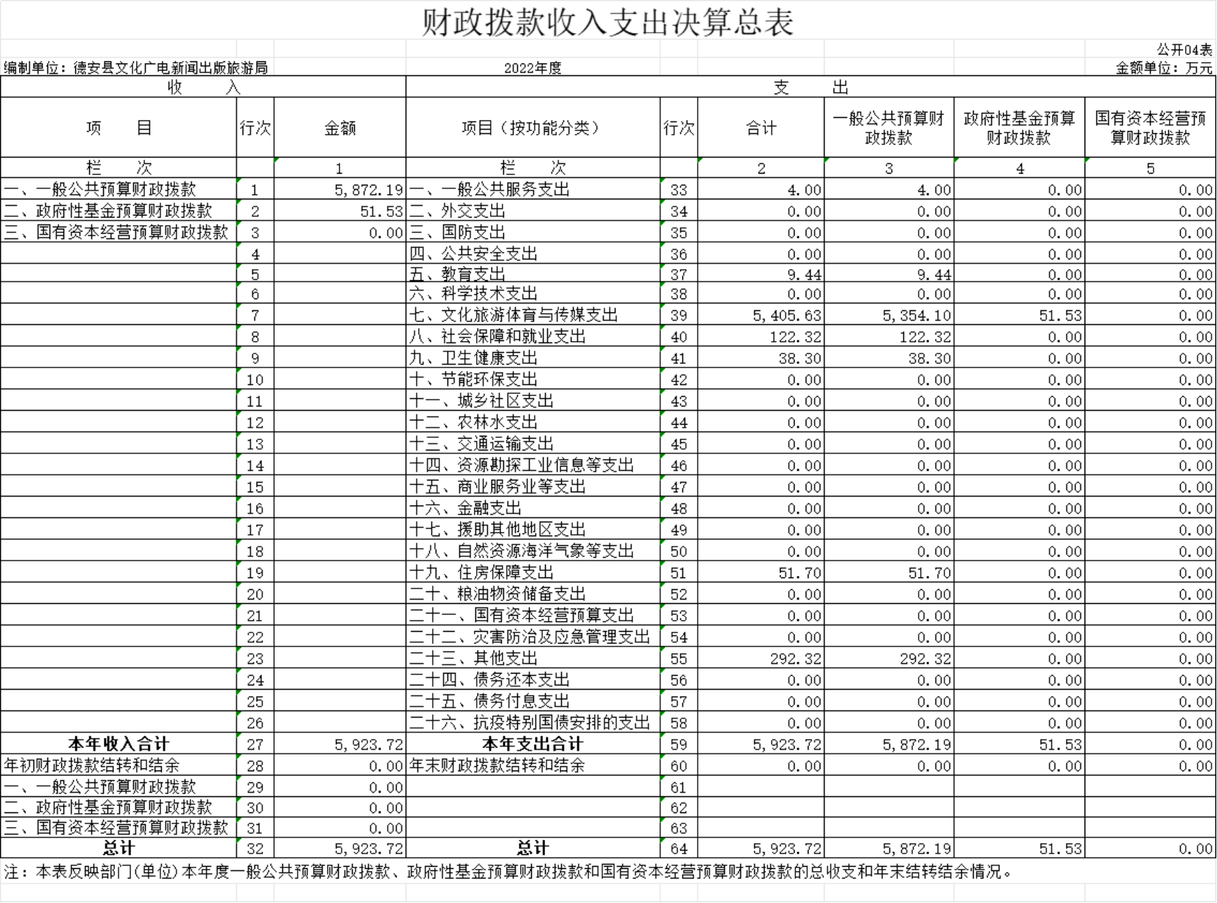 德安县文化广电新闻出版旅游局部门2022年度部门决算