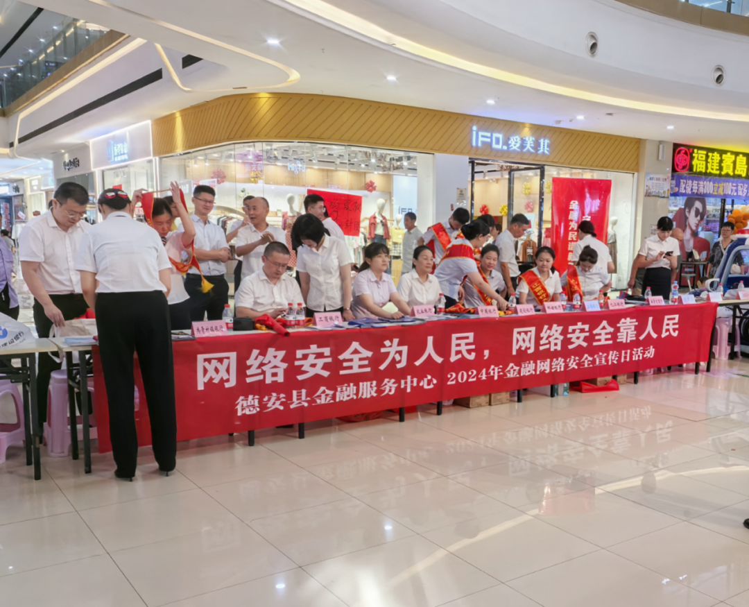 为倡导依法文明上网,维护国家网络安全,进一步强化群众的网络安全意识,预防金融网络诈骗带来的经济损失。9月13日上午,依托“金融教育宣传月”活动契机,县金融服务中心联合国家金融监督管理总局德安监管支局及县内22家金融机构在万象广场一楼集中开展“网络安全为人民,网络安全靠人民”国家网络安全宣传周“金融日”宣传活动。