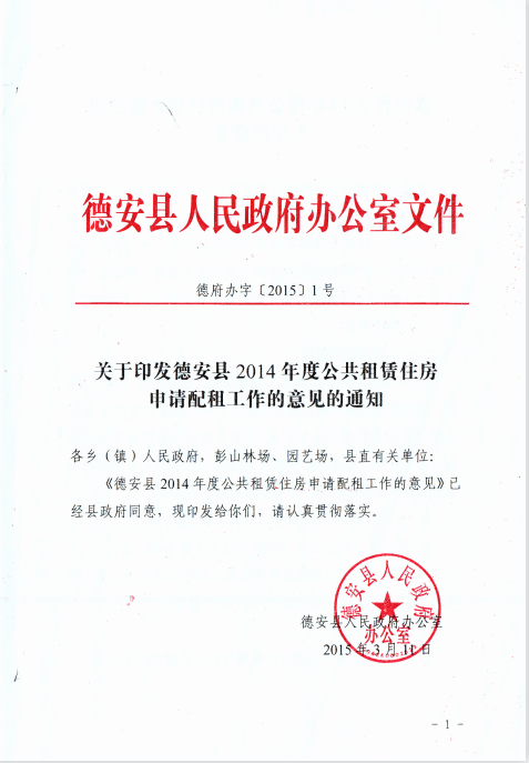 德府办字〔2015〕1号 关于印发德安县2014年度公共租赁住房申请配租工作的意见的通知.pdf