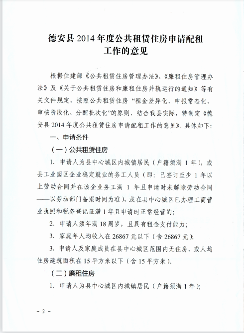 德府办字〔2015〕1号关于印发德安县2014年度公共租赁住房申请配租工作的意见的通知