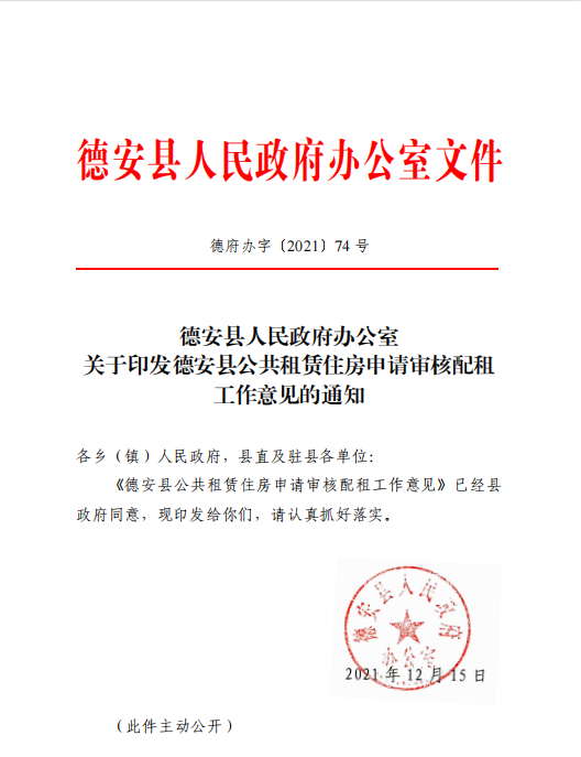 德府办字〔2021〕74号 关于印发德安县公共租赁住房申请审核配租工作意见的通知