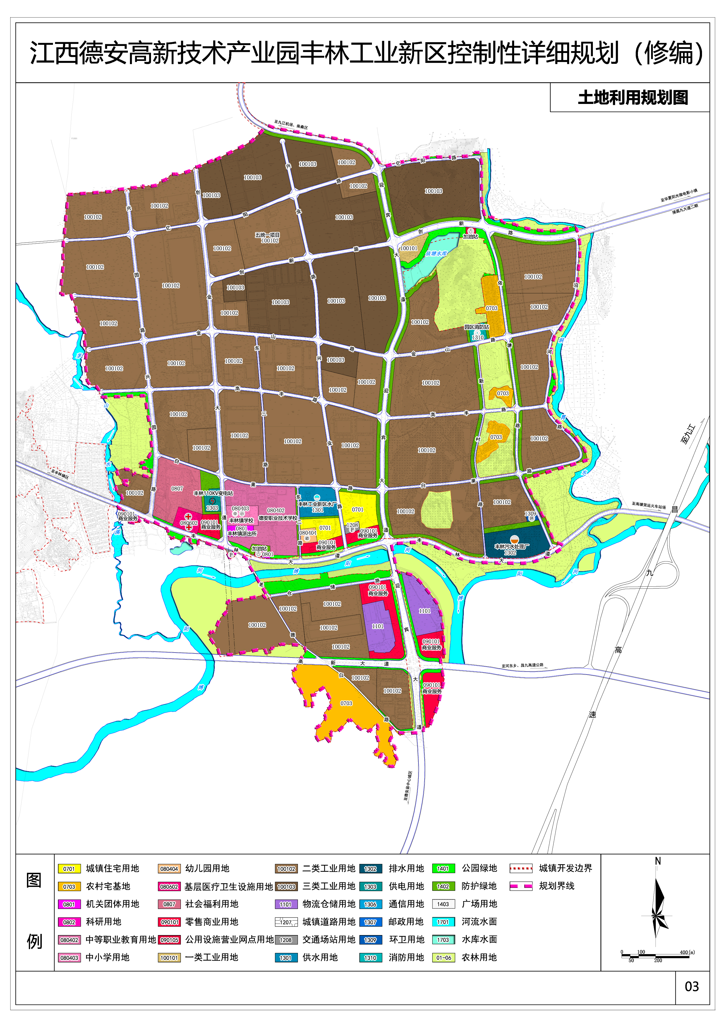 规划主要内容:《规划》按照德安县产业规划确定的“1+3+X”产业集群发展思路进行产业用地布局,形成以纺织服装、装备制造和电子信息产业为主导,完善上下游产业链,培育新动能产业。充分衔接《德安县国土空间总体规划(2021—2035年)》中心城区国土空间规划分区,将北部的白果路以南、丰林大道以北、创业大道以东和迎宾大道以西区域规划主要为综合服务区或居住生活区,新村路以东、依塘路以西、白果路以南区域规划主要为居住生活区,其他区域均规划为工业发展区,按规划分区要求进行相应区域功能和用地的布局,在国土空间规划确定的居住生活区内,主要布局城镇住宅和社区服务功能;兼容中小学、幼儿园、生活型商业服务、绿地与广场功能;限制商务办公、专业市场,都市型产业功能;禁止其他工业、物流仓储功能。在国土空间规划确定的综合服务区内,主要布局了以教育为代表的公共管理与公共服务职能、兼容了社区服务、中小学、幼儿园等功能,布局了少量居住功能。