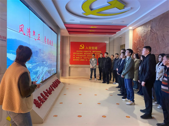 在基地讲解员的引导下,干部们有序走进展厅认真观看视频《风清气正,厚德安康》,详细听取展厅讲解,深入了解了全面从严治党提出的背景,对党要管党、全面从严治党有了更深刻的认识,增强了全体党员干部全面从严治党永远在路上的思想自觉、政治自觉和行动自觉,切实筑牢知敬畏、存戒惧、守底线的思想防线。