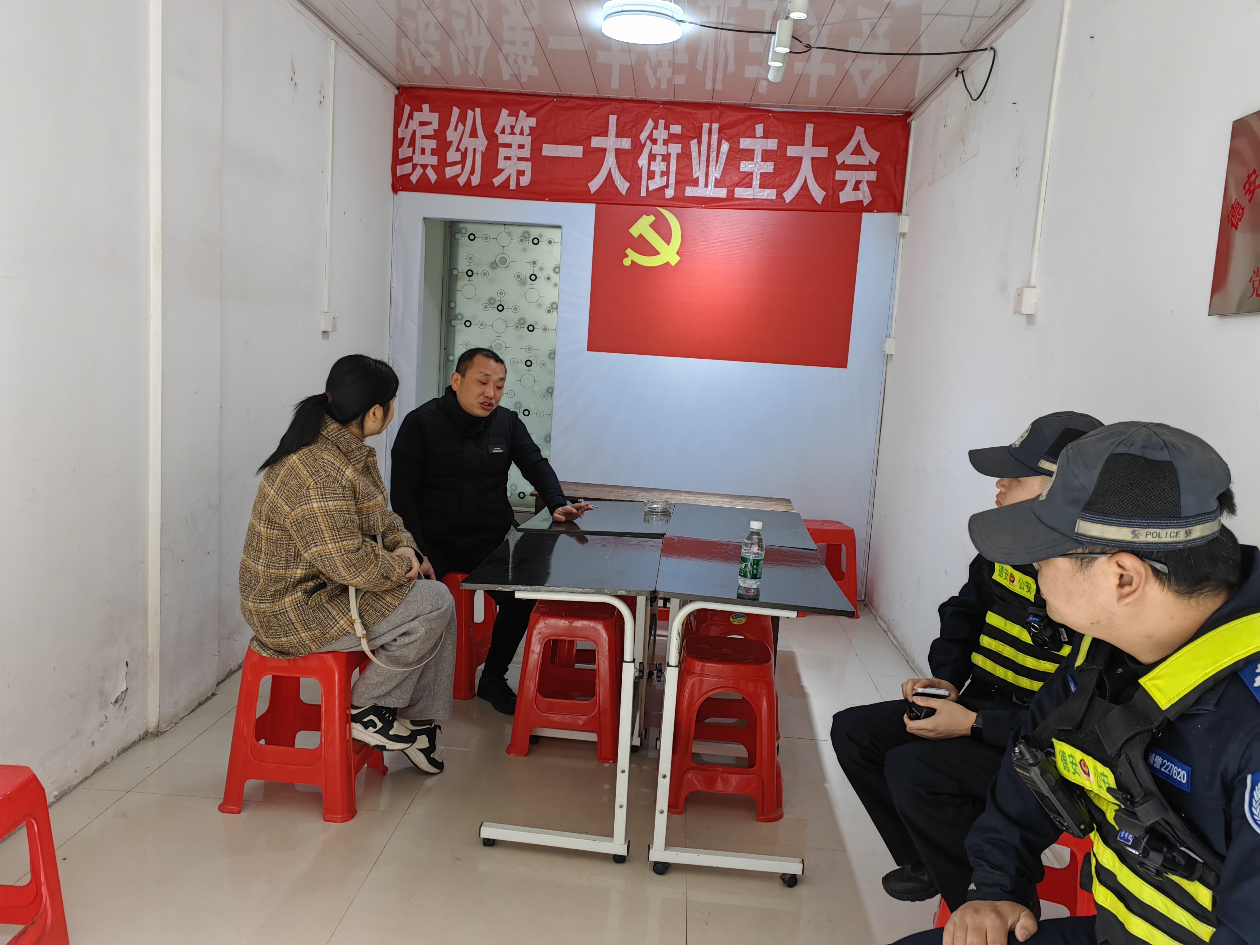 刘铮主任和社区民警到缤纷了解业委会改选事宜