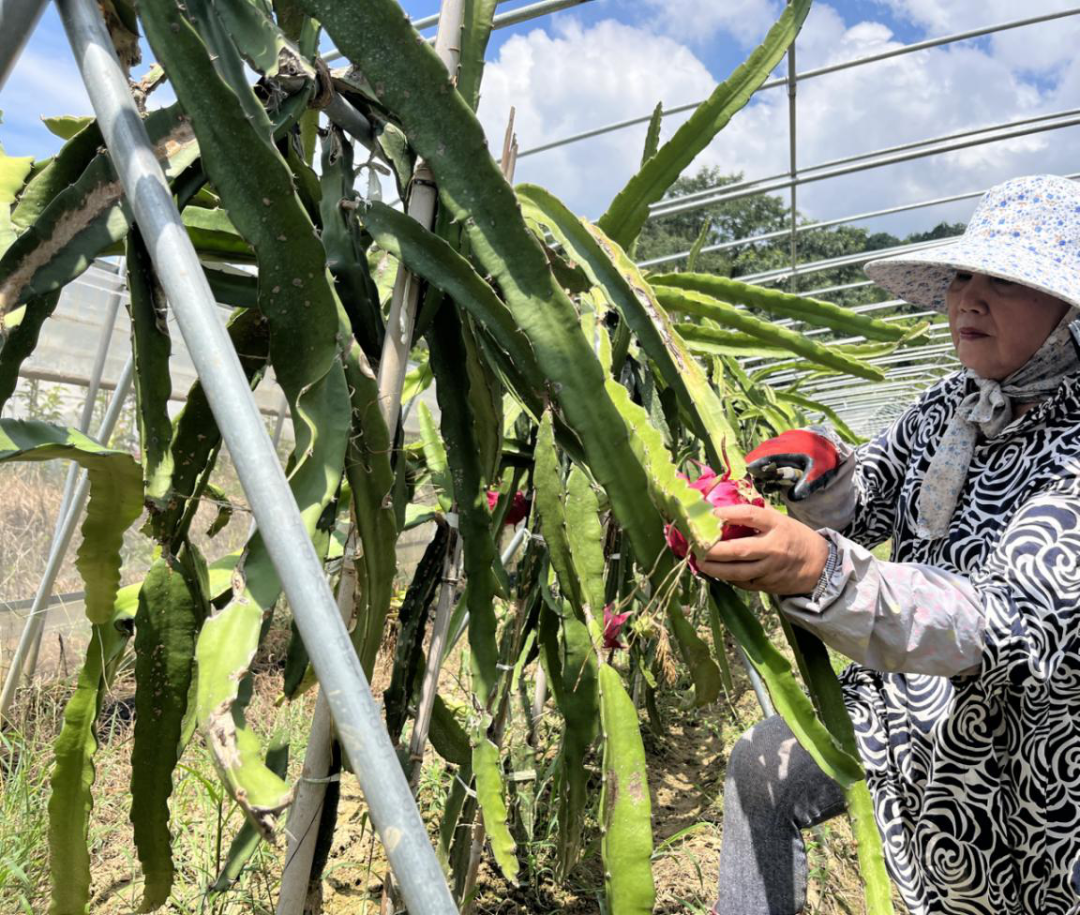 近日,邹桥乡源口村火龙果种植基地迎来丰收季,红彤彤的火龙果挂满枝头,正式进入上市期,为乡村振兴增添“甜蜜”动能。