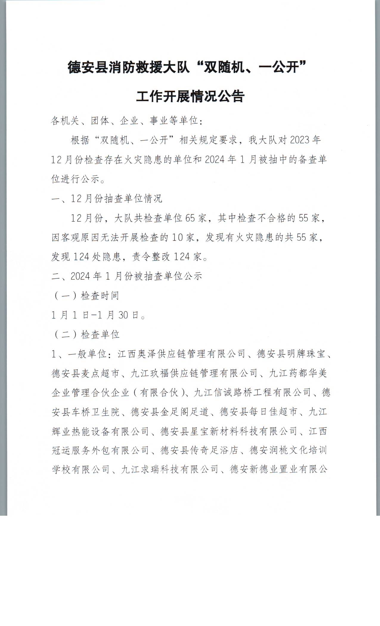 德安县消防救援大队“双随机、一公开”工作开展情况公告