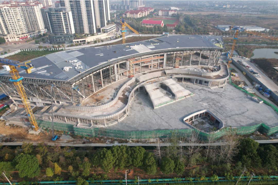 目前建筑主体混凝土主体结构已完成;屋面钢结构管桁架吊装完成100%;室内二次结构完成总量的90%,砌筑及抹灰完成70%;管道安装完成总量的95%;室内装饰设计图纸已完成图审、室外景观图纸设计中。