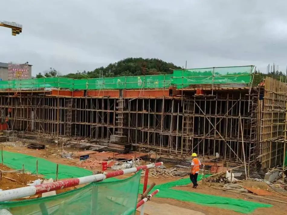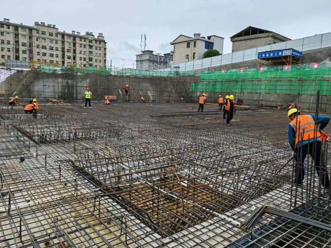 目前一区完成-1层模板安装完成90%,梁板钢筋绑扎完成20%;二区完成-1层支模架搭设70%;三区完成基础钢筋绑扎80%;四区完成基础垫层浇筑60%,基础防水完成50%。