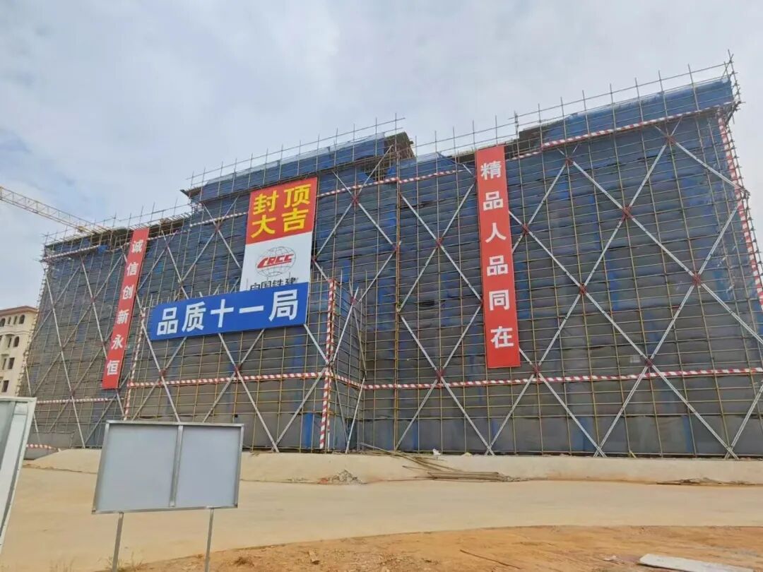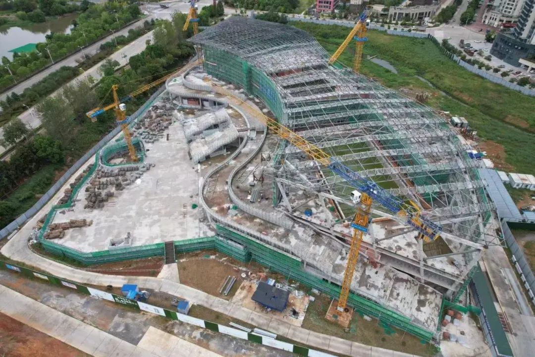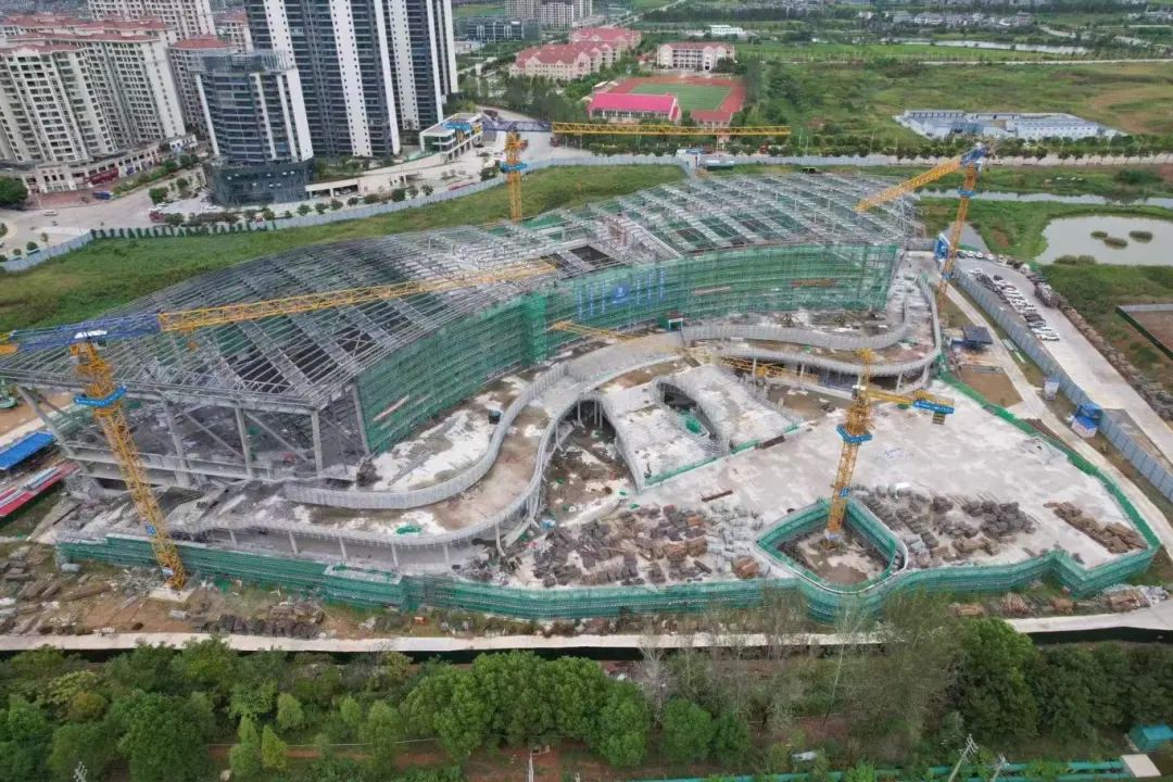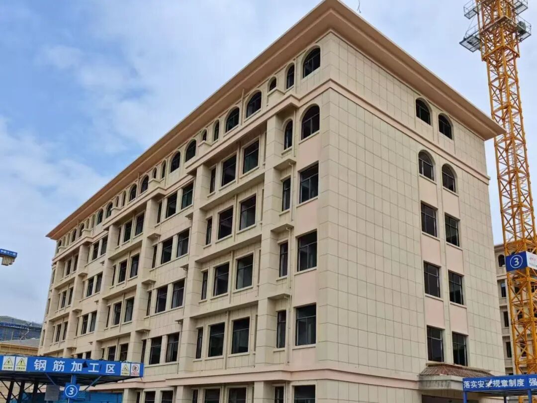 目前建筑主体混凝土结构全部完成,屋顶管桁架吊装完成,主体结构已验收合格;二次结构完成70%,机电管道完成50%;石材幕墙龙骨安装完成95%;室外景观设计方案已确定、智能化设计方案正在确定中。