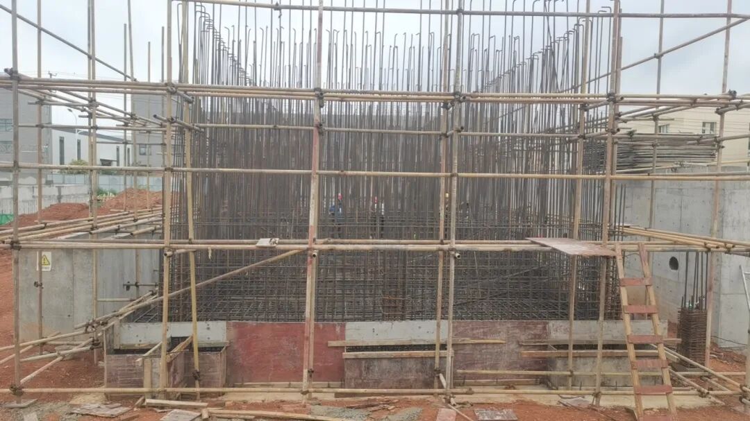 目前网格絮凝平流沉淀池顶板混凝土浇筑完成;池壁模板已拆除;普通快滤池底板钢筋正在绑扎;清水池顶板模板已拆除;2.5千米管网已施工完成1000米;综合加药间基坑开挖已完成,并浇筑完成基础垫层;机修仓库基础垫层混凝土浇筑已完成。