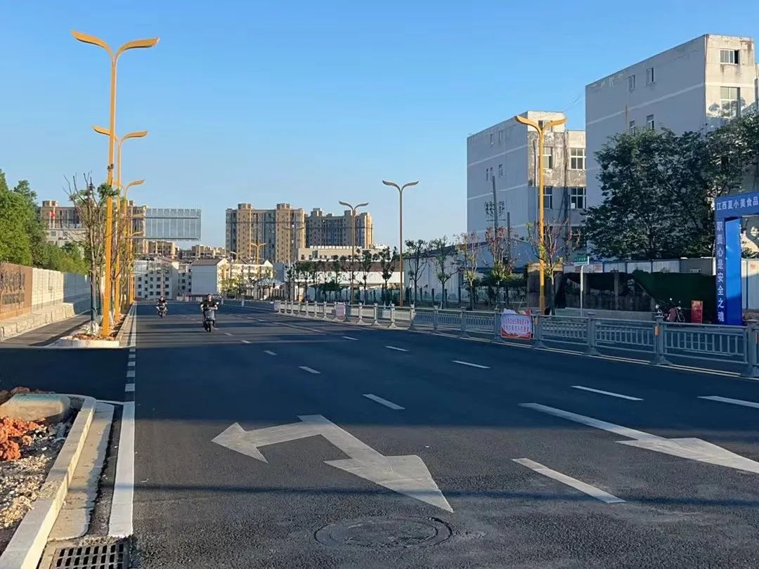 项目简介:自状元府至渊明大桥道路全长约0.93千米,包含道路工程、交通工程给排水工程、强弱电工程、强弱电改造工程、燃气工程、照明工程等内容。道路通车后,可正式贯通全县外循环交通系统,大大缓解一中、二中放学时的交通压力,方便周边学生和群众出行。