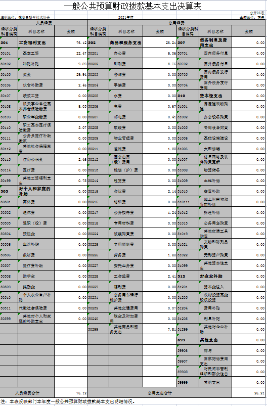 2、支出情况。2021年度支出总计114.20万元,其中:基本支出92.71万元,项目支出21.5万元。