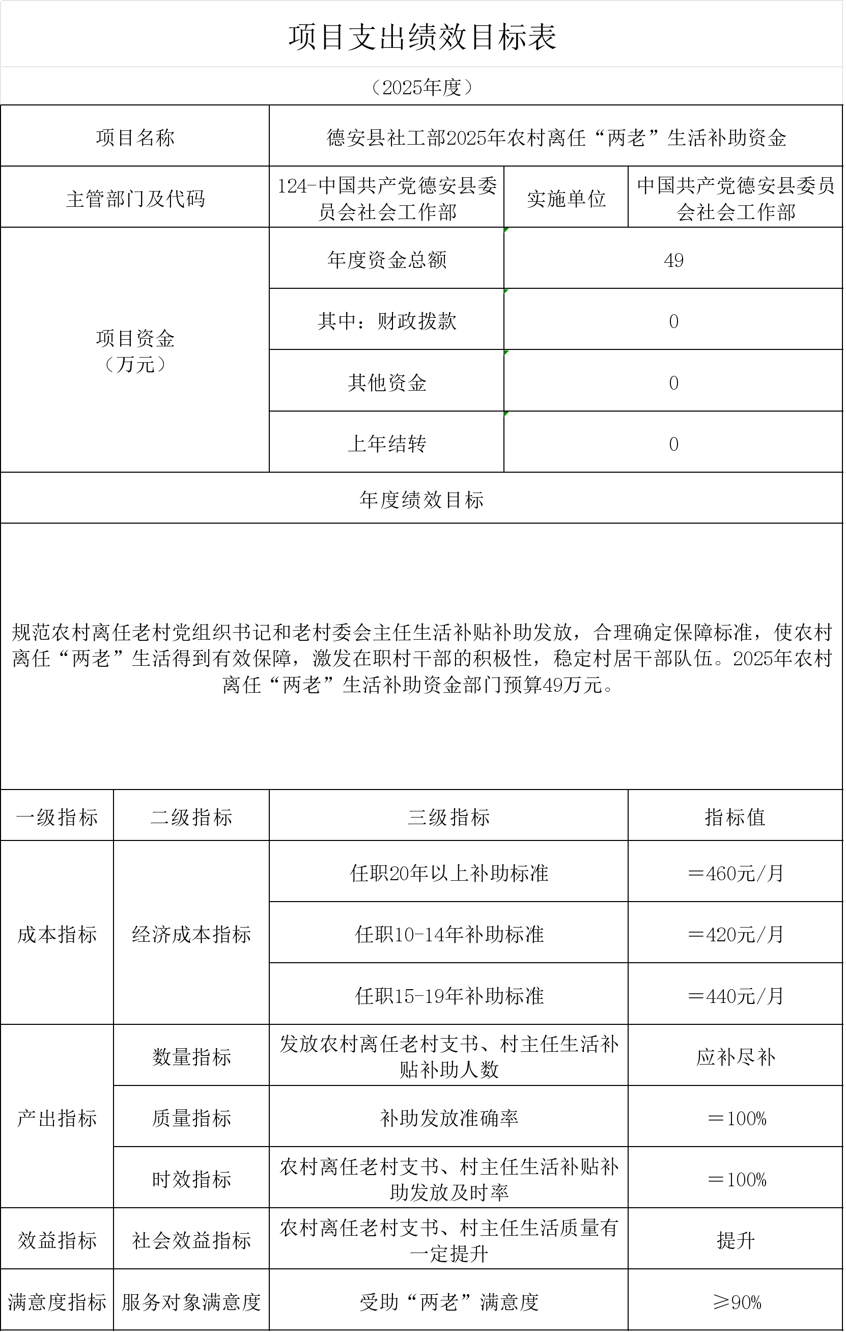 1、 二级项目:德安县社工部2025年农村离任“两老”生活补助资金